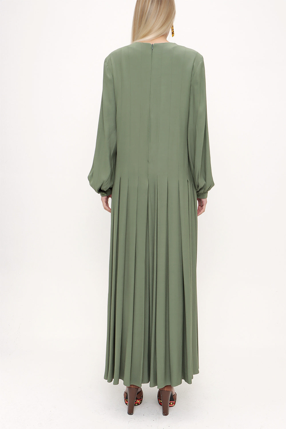 Green Wide cut oval neck dress 93430