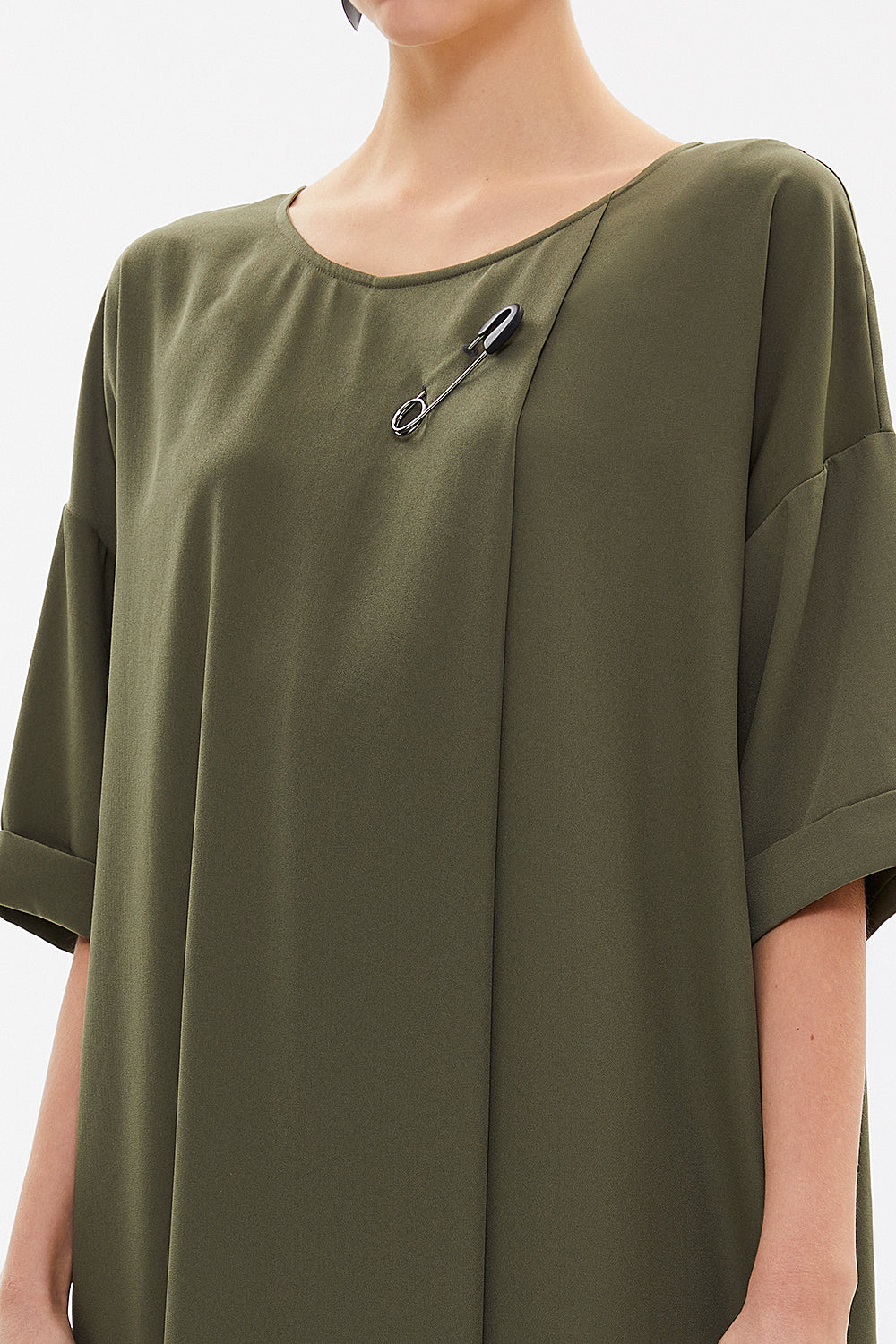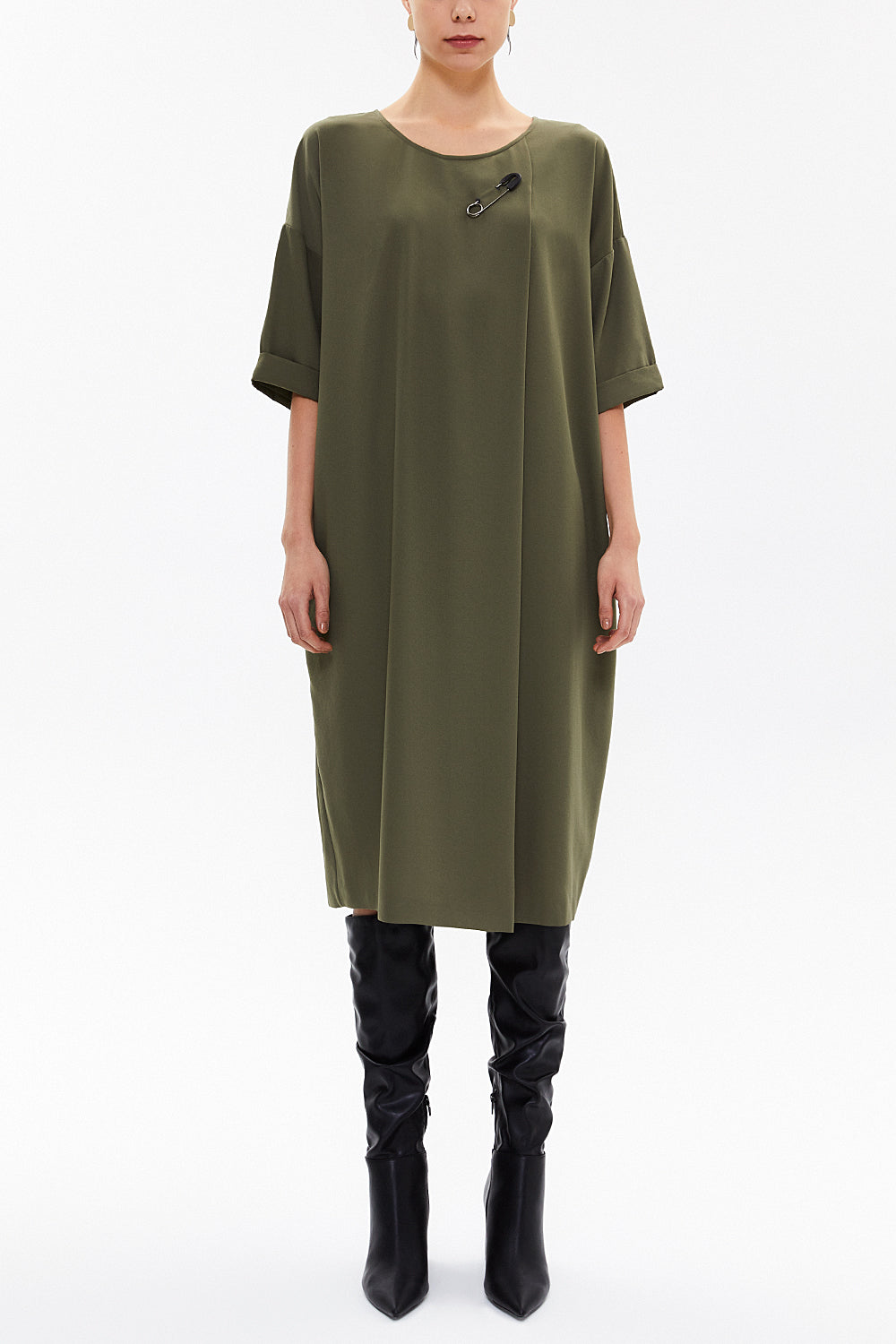 Khaki Accessory detail wide cut midi dress 92811