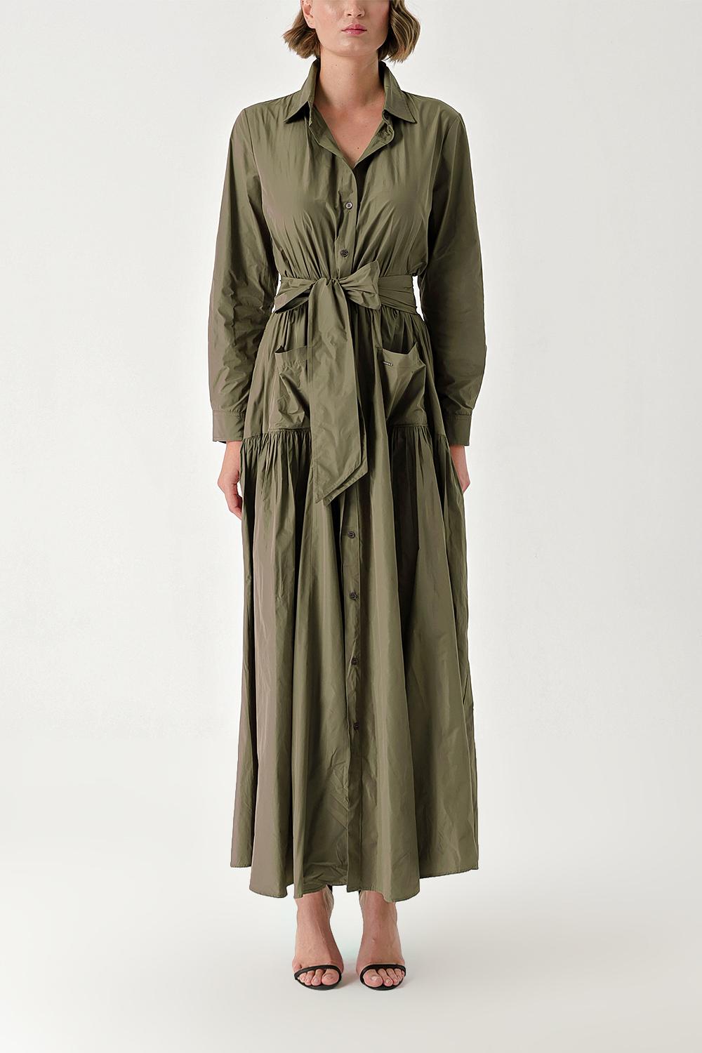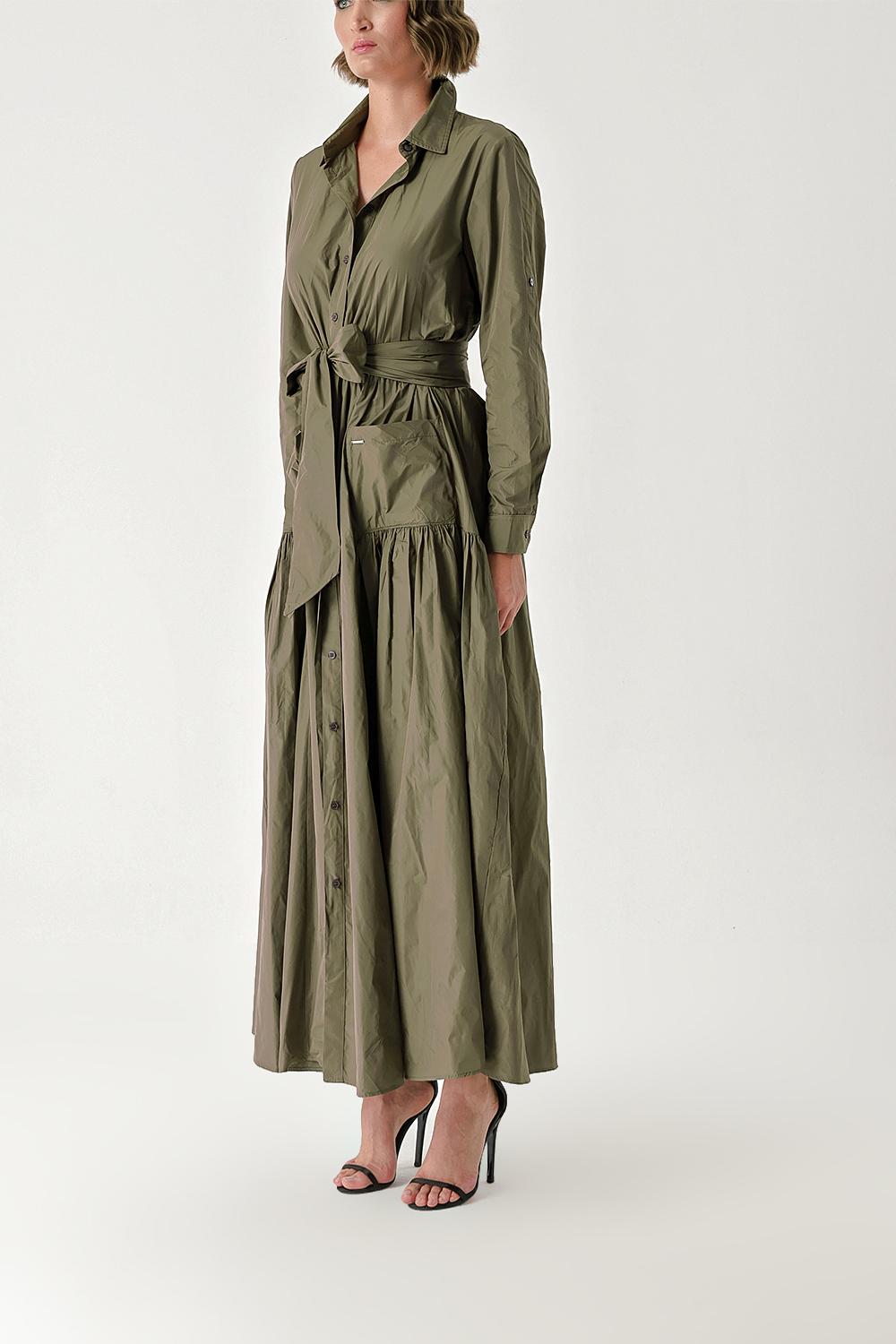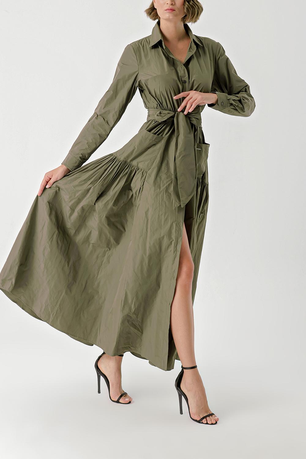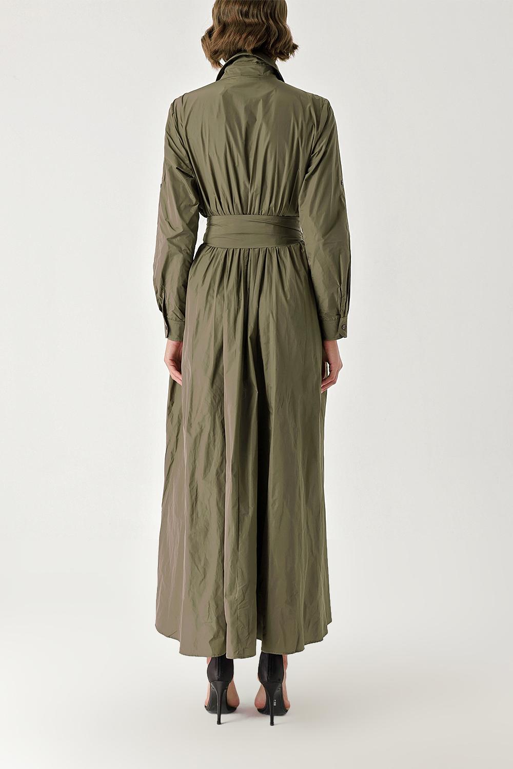 Khaki Pleated maxi taffeta shirt dress 94354