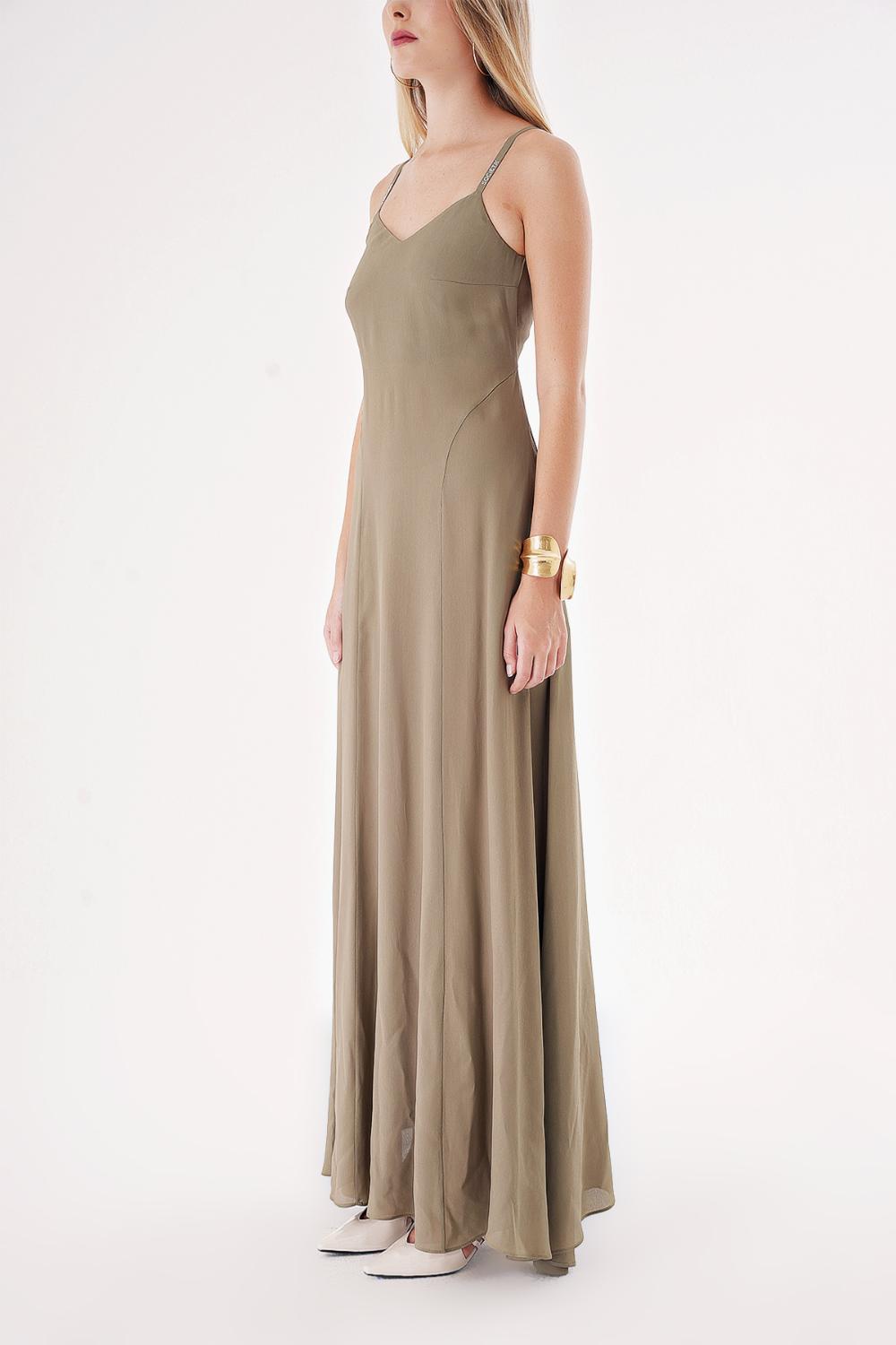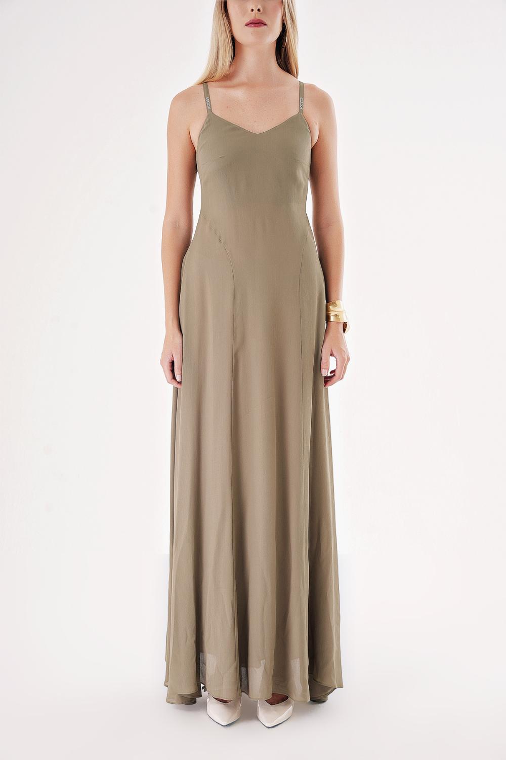 Khaki Strappy stone-detailed comfortable godel dress 94457