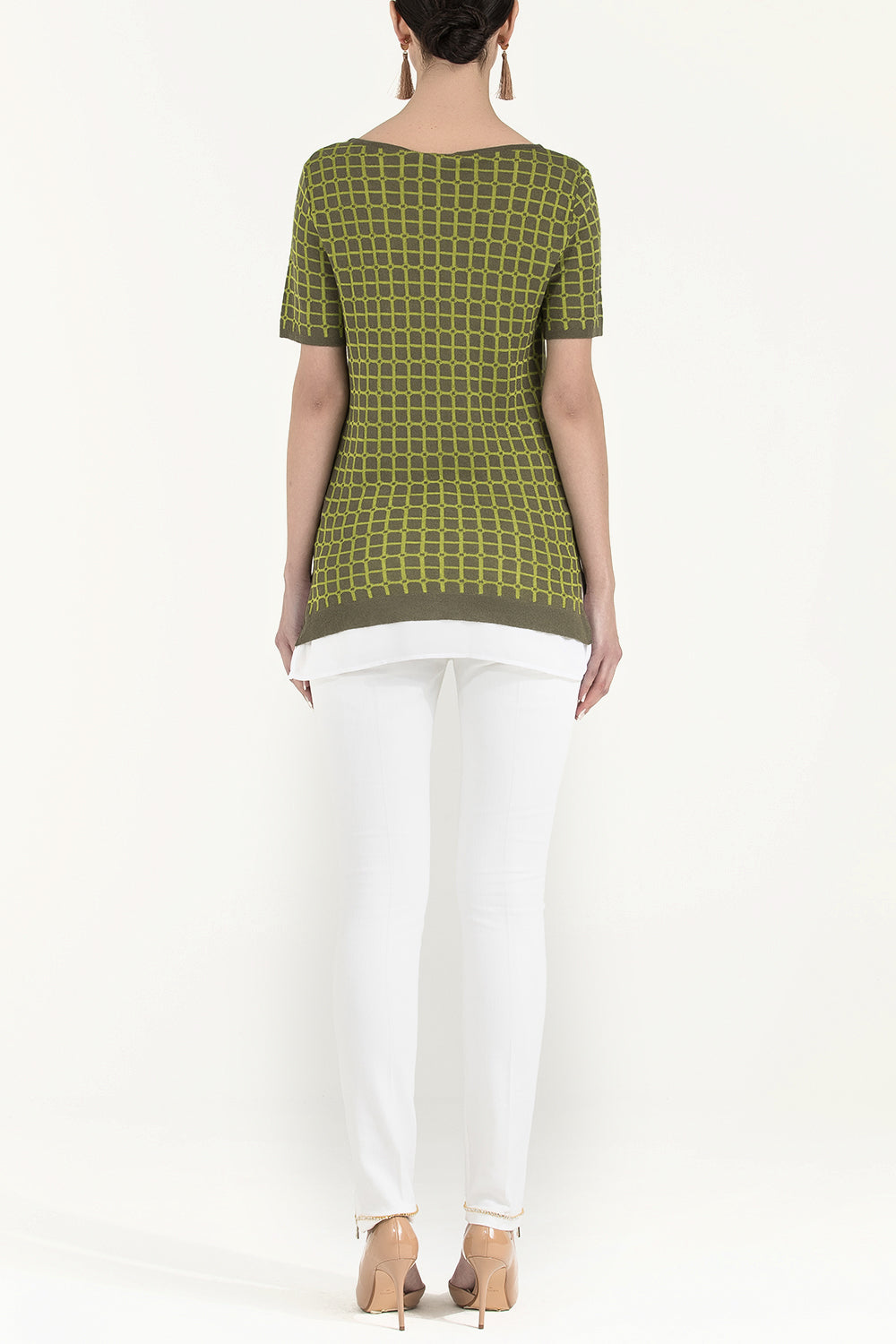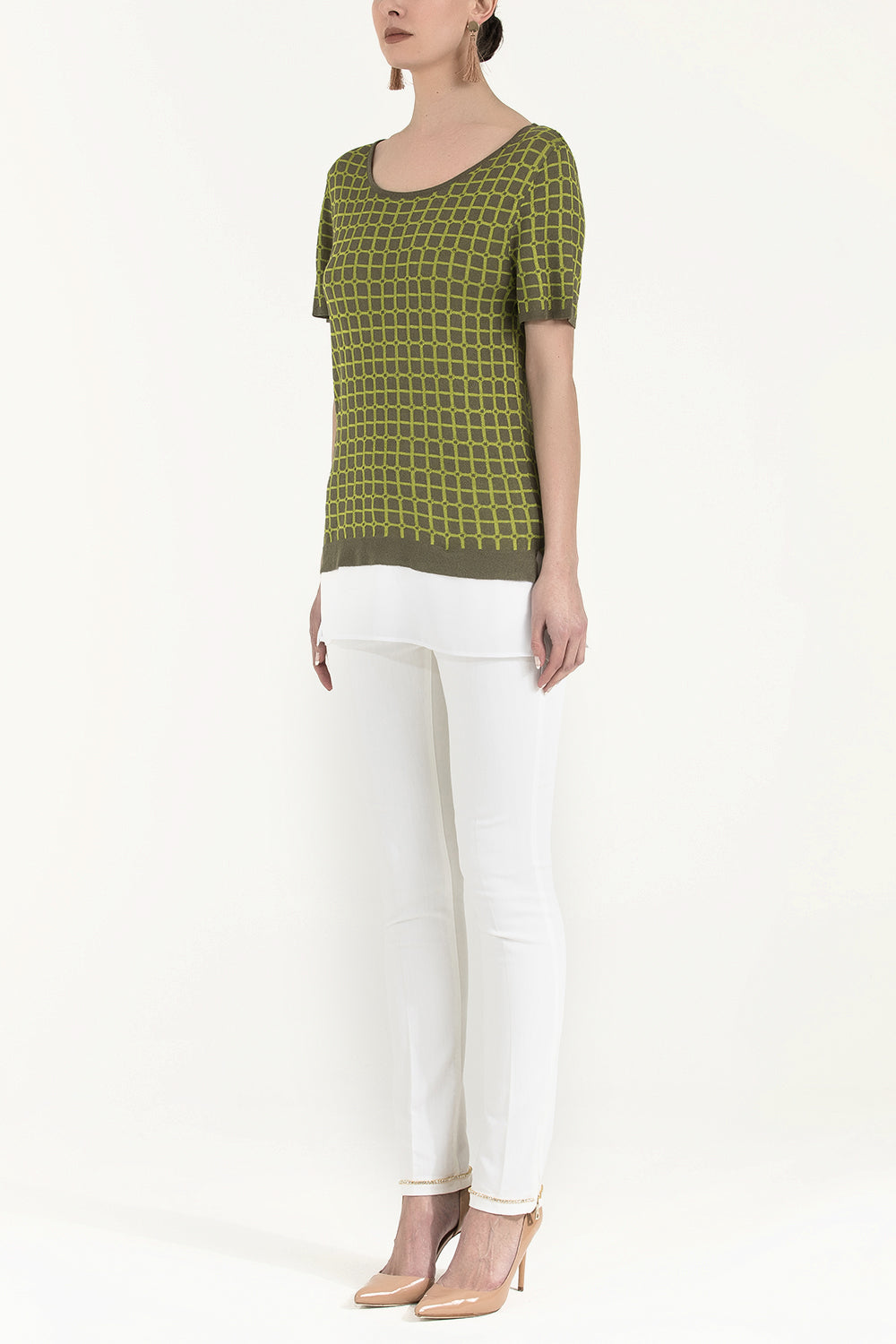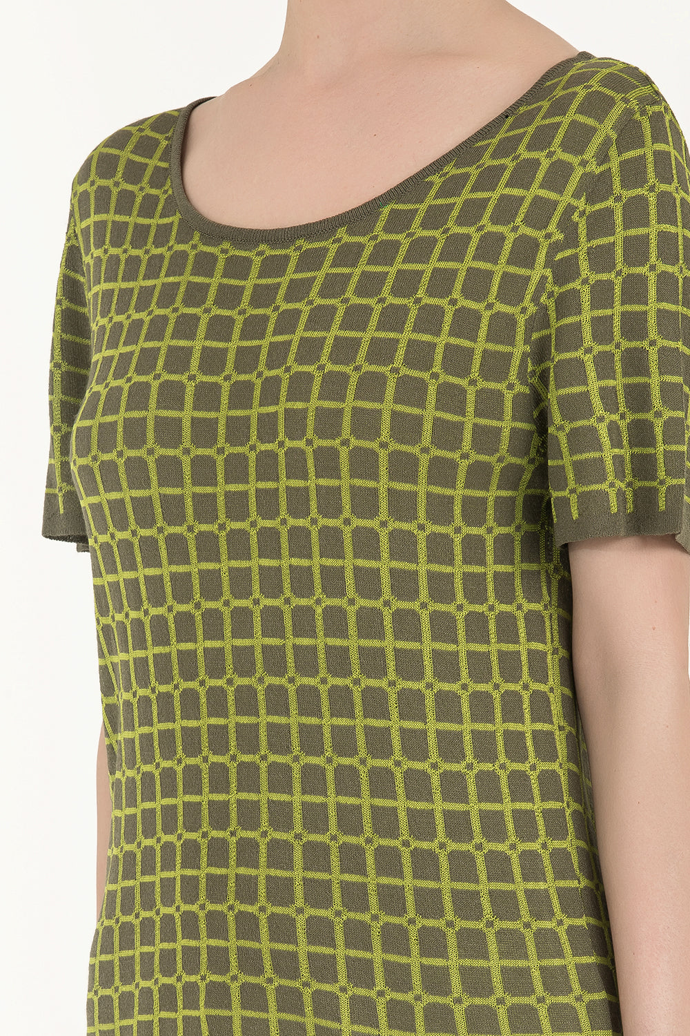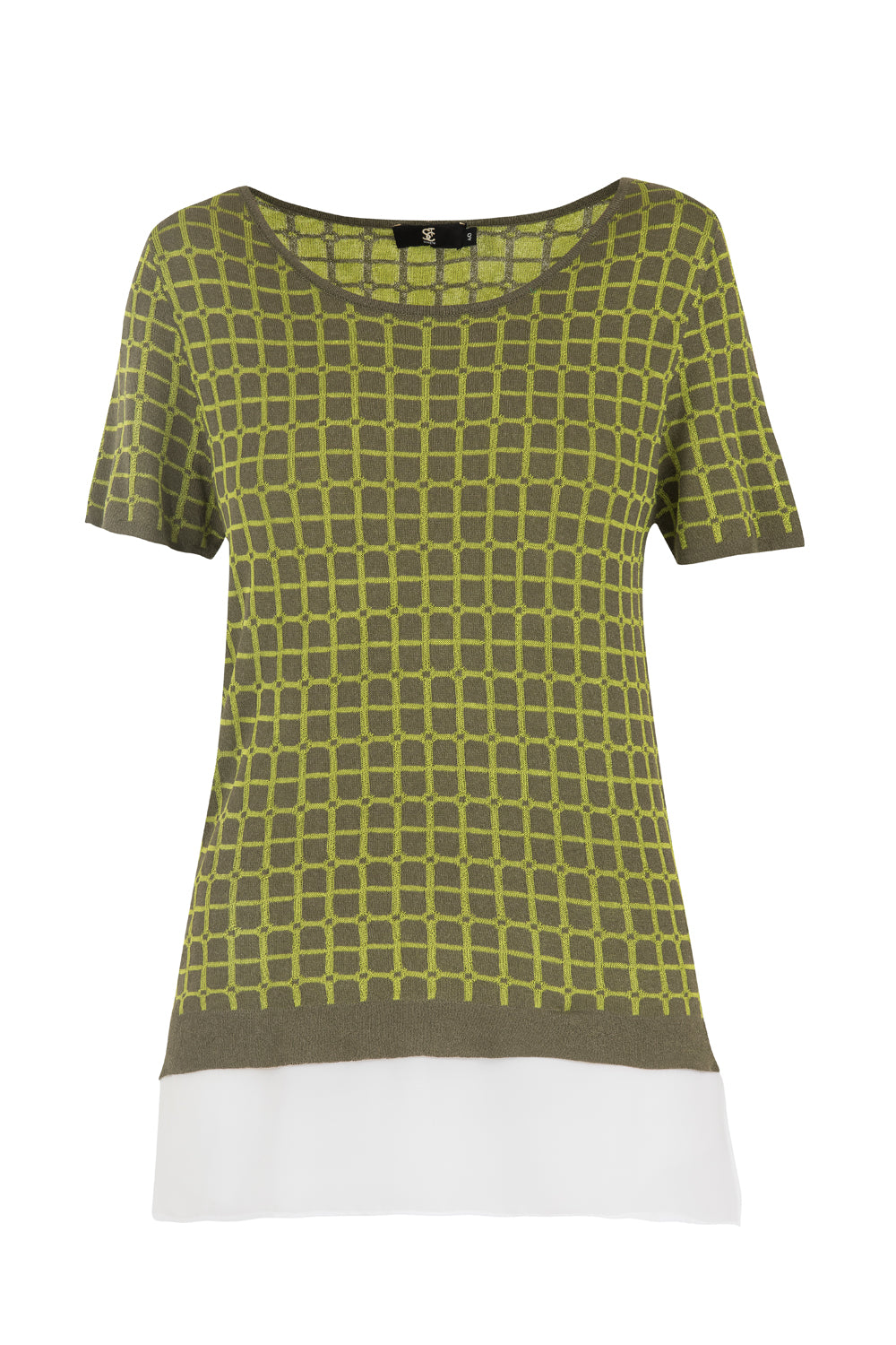 Khaki Wide collar short sleeved tricot blouse 28660