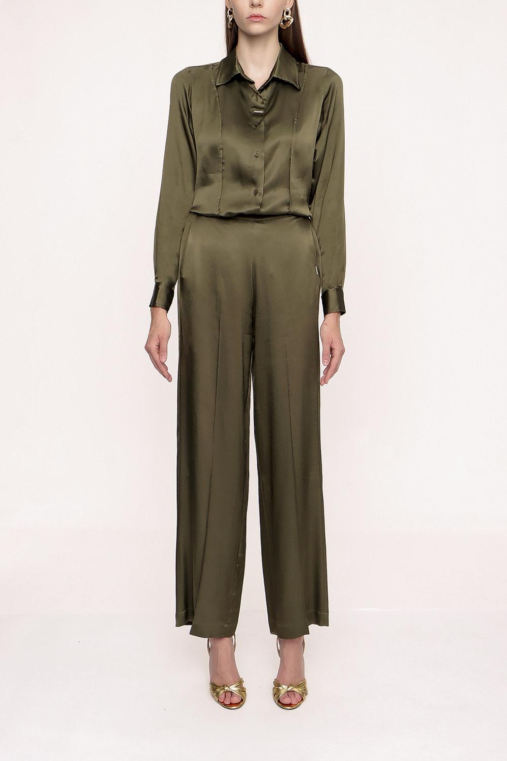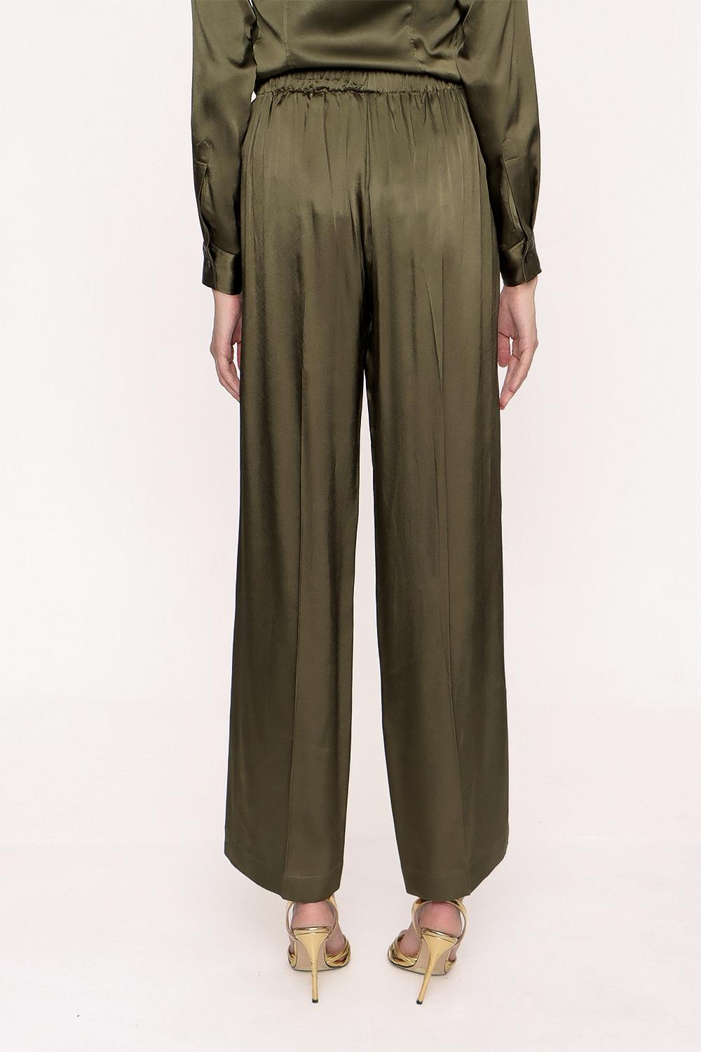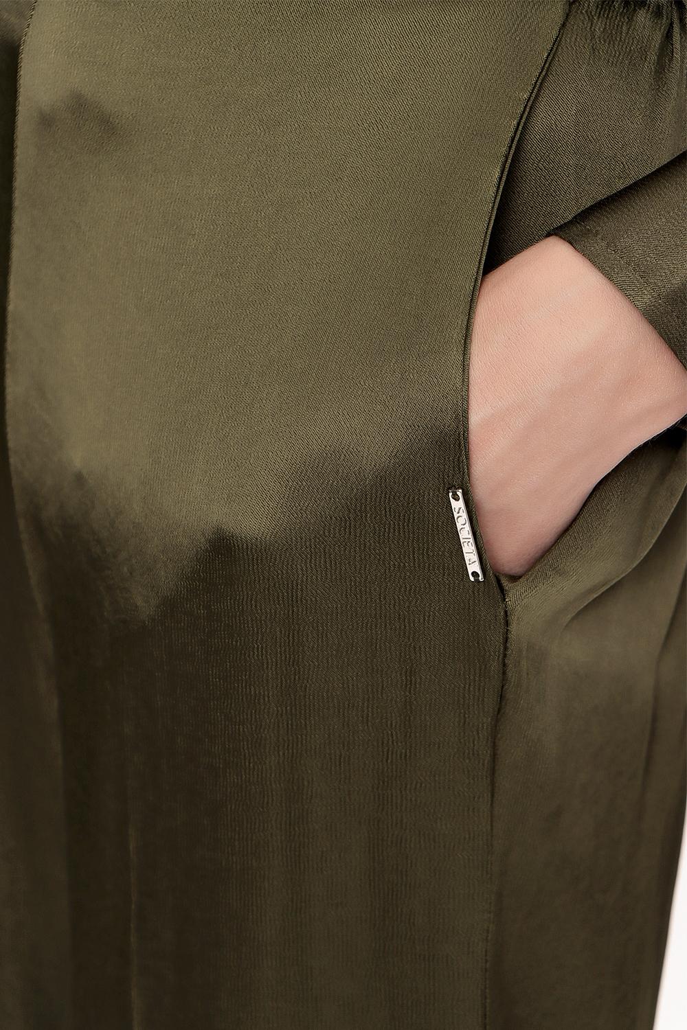 Khaki Wide cut trousers with elastic waist 41621