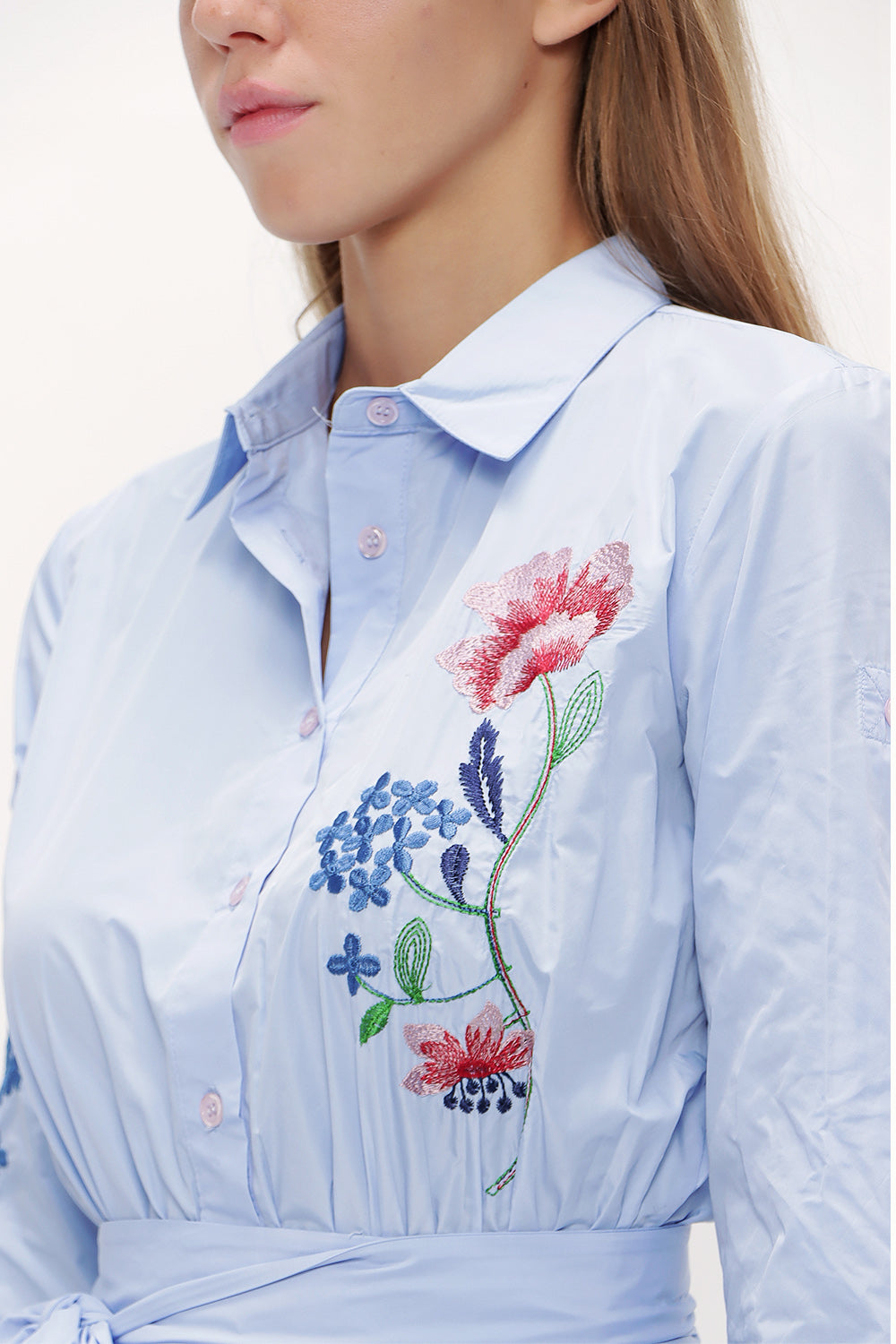 Light Blue Embroidered, lace-up Pleated maxi dress 92917