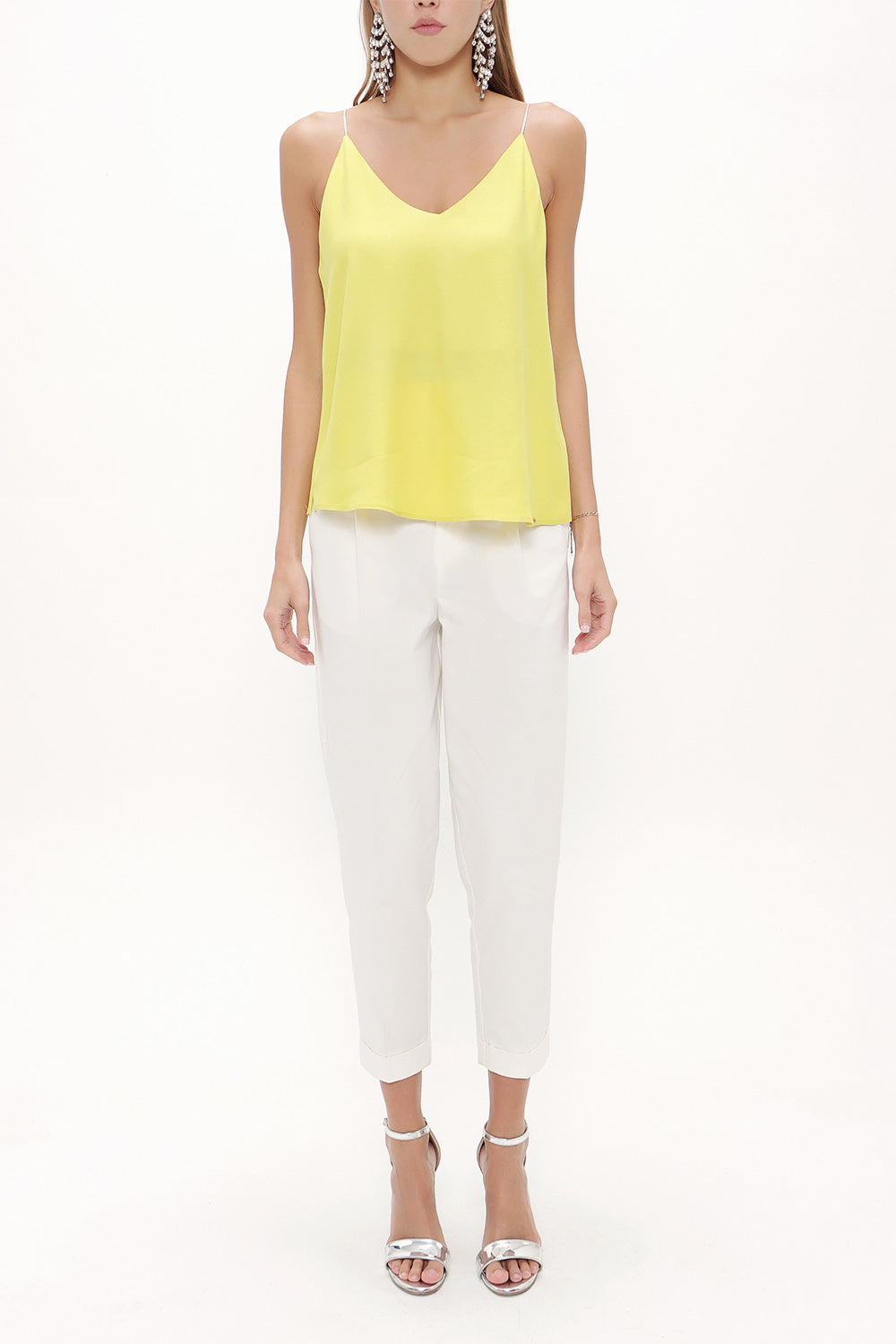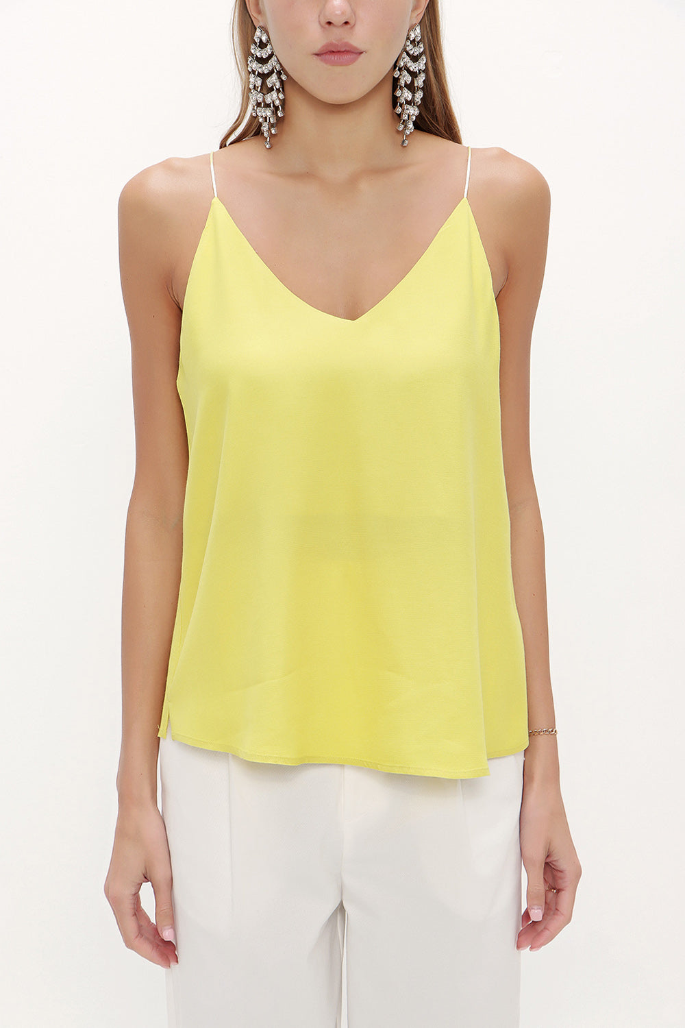 Light Olive Green Strappy V-neck blouse 19792