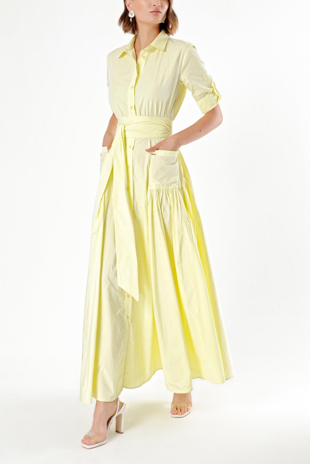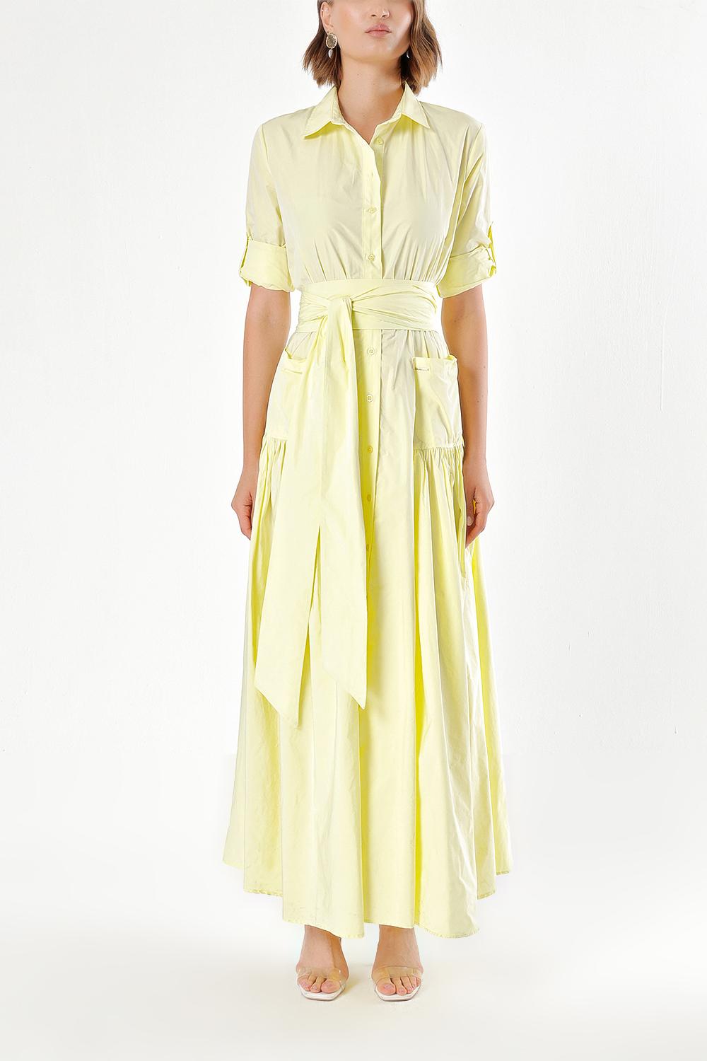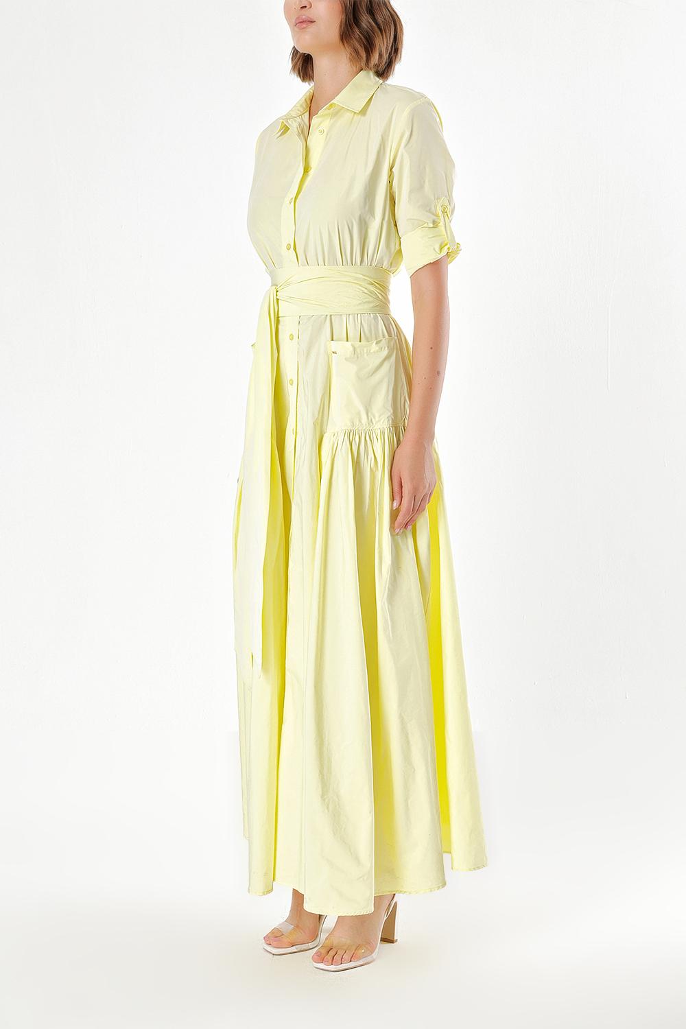 Light Yellow Pleated maxi taffeta shirt dress 94198