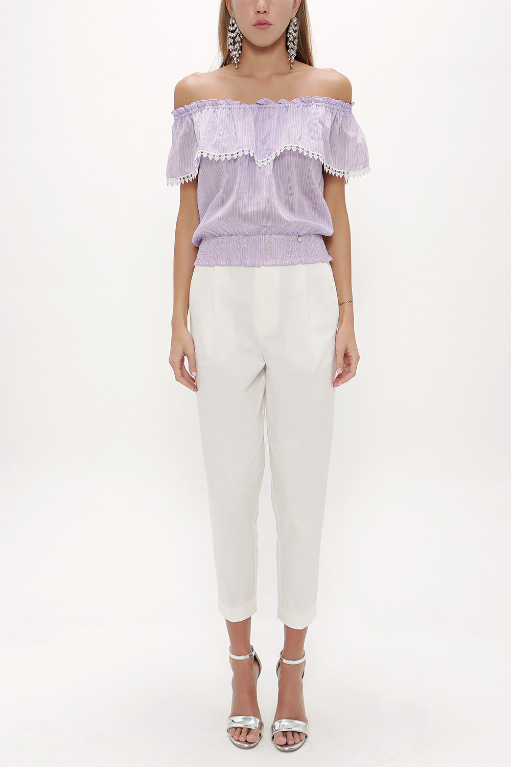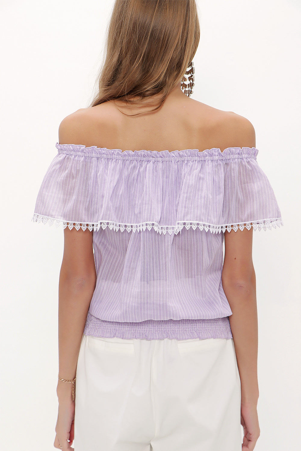 Lilac Lace off shoulder blouse 19473