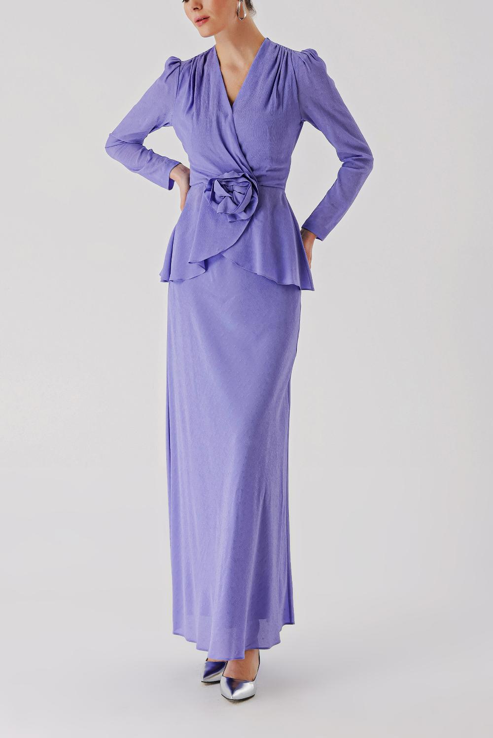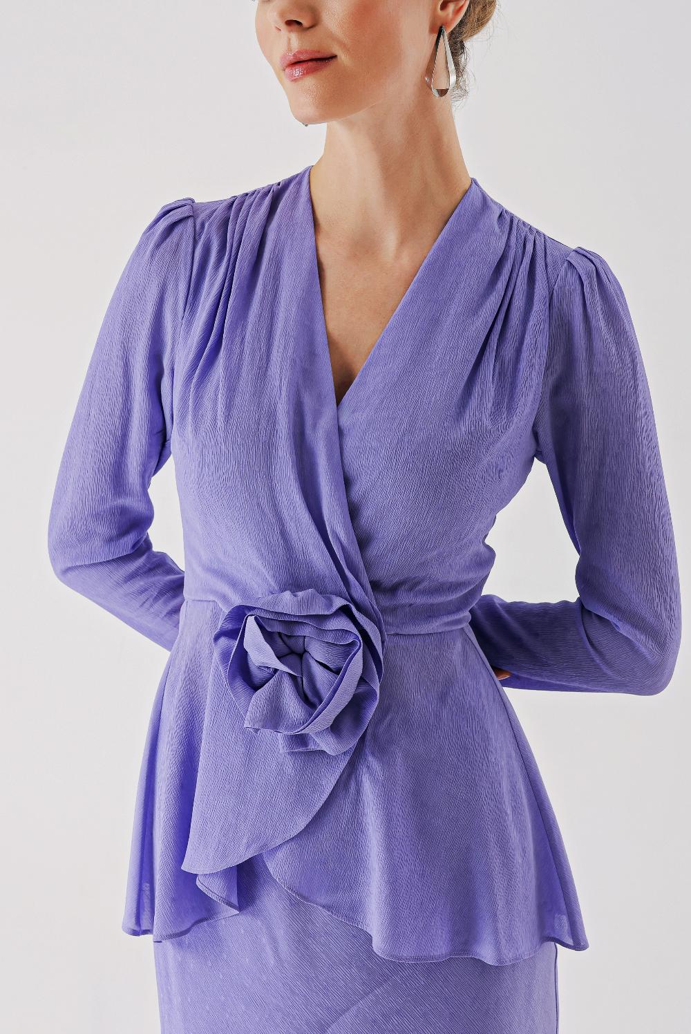 Lilac Rose detailed wrap-up blouse and skirt set 12340