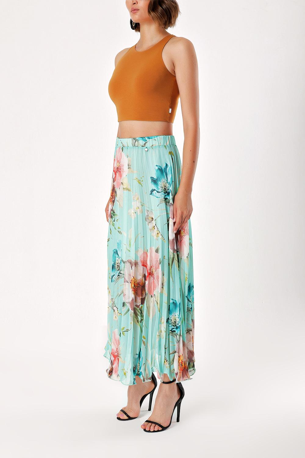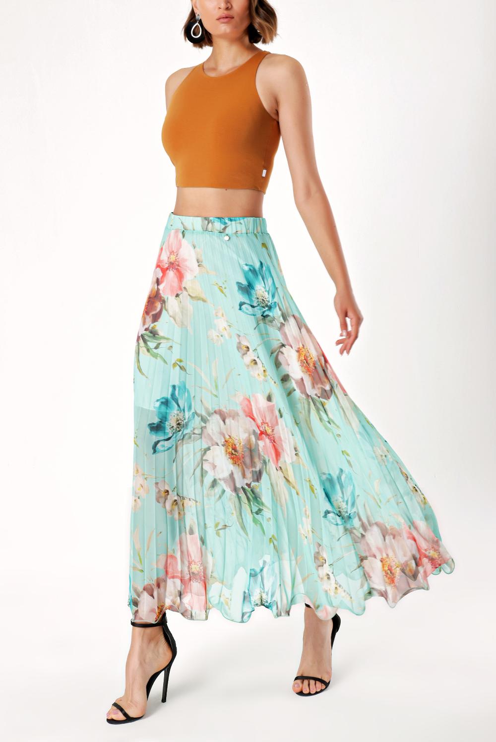 Mint High Waist Pleated Long Skirt 81048