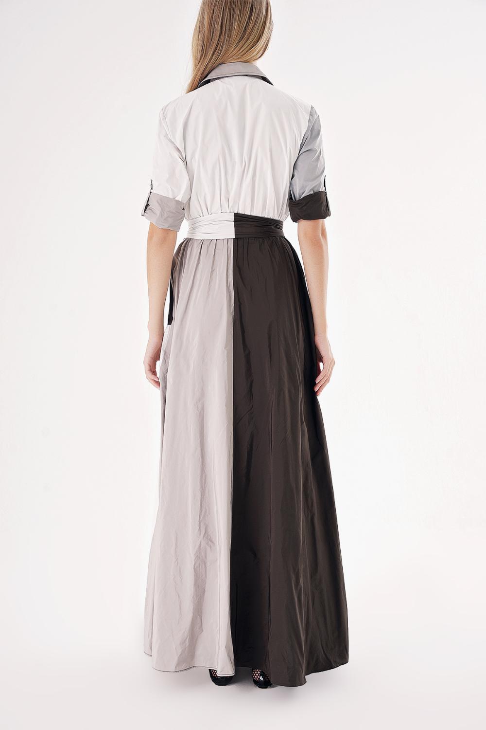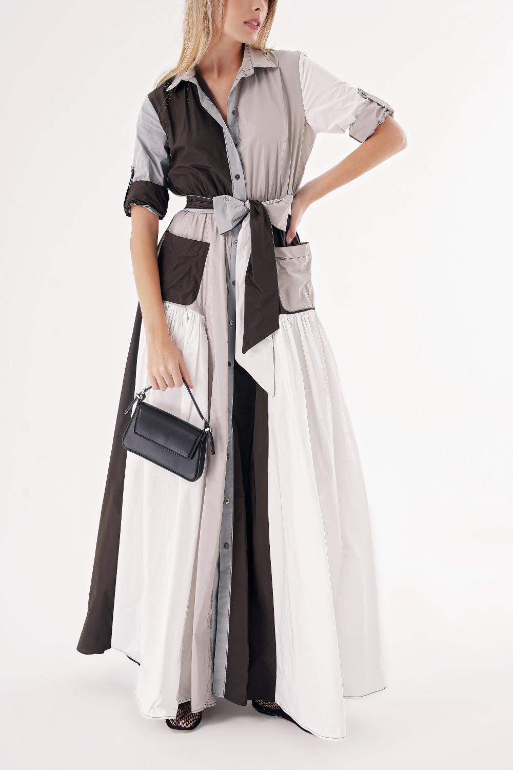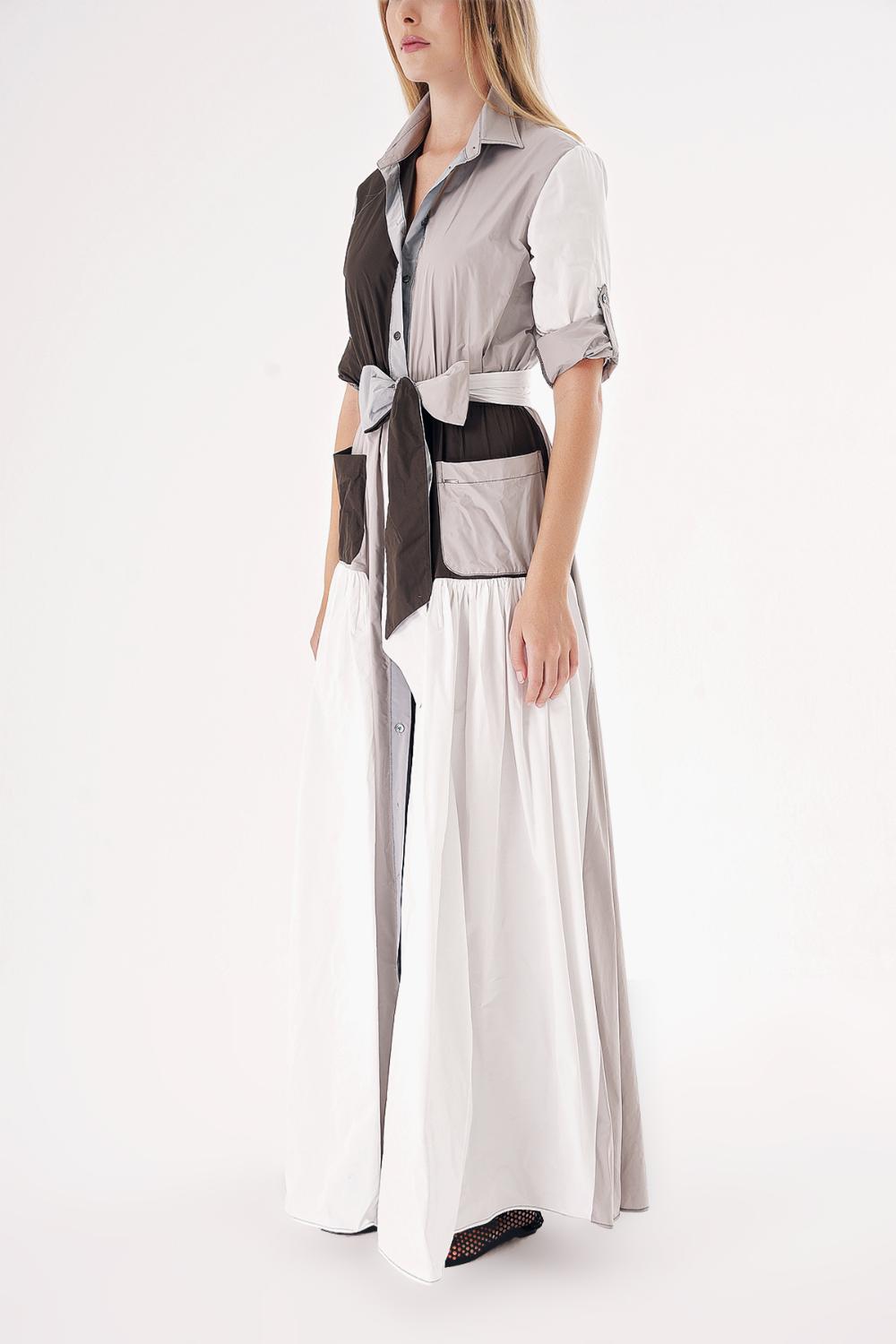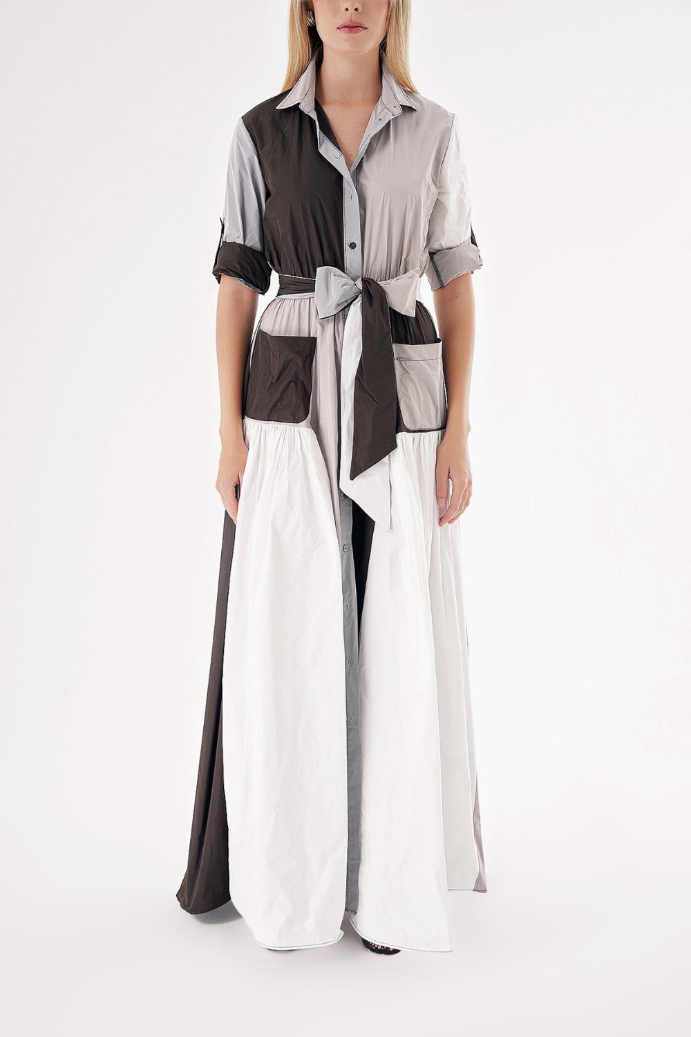 Mixed Colors Contrast fabric combination shirred shirt dress 94494