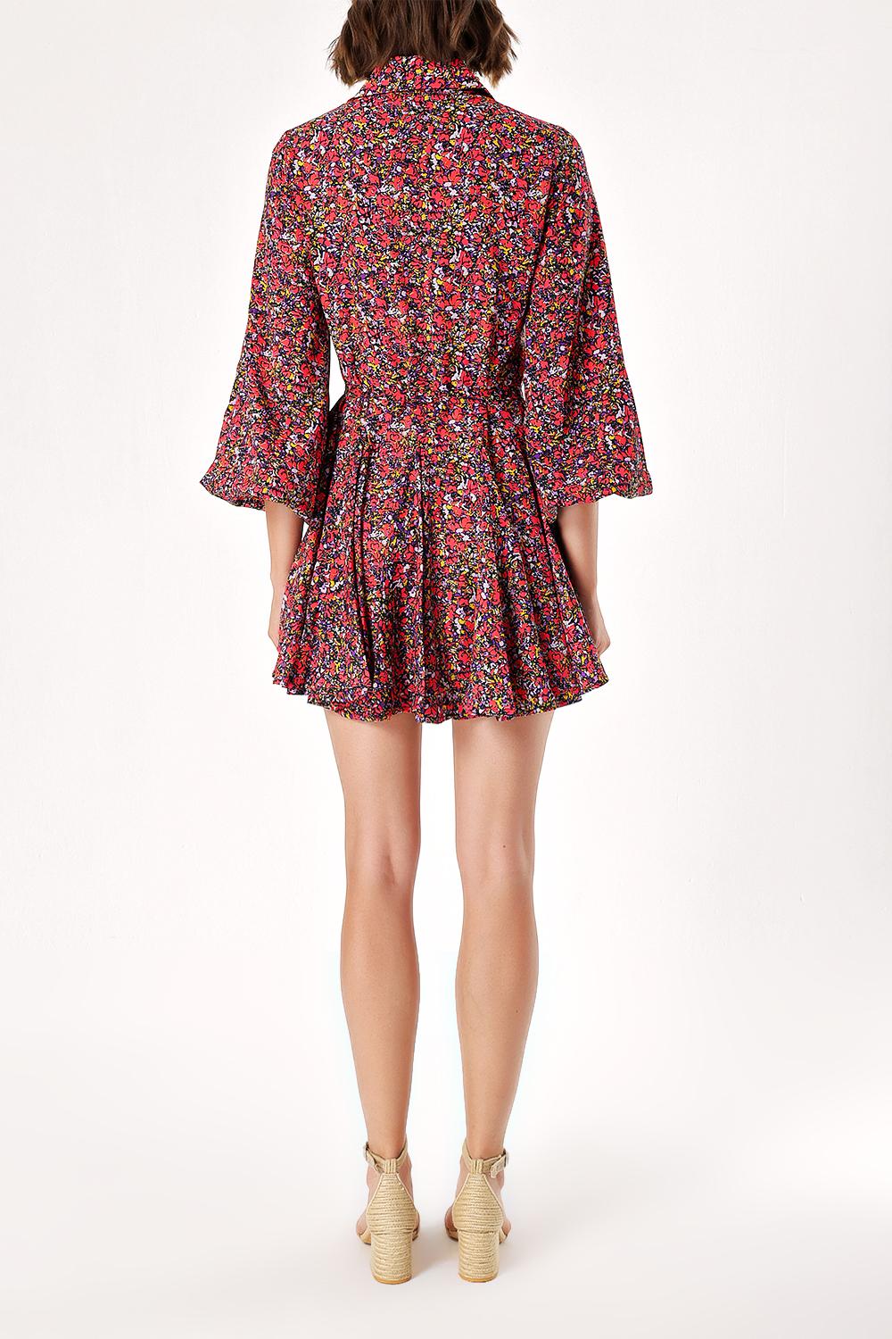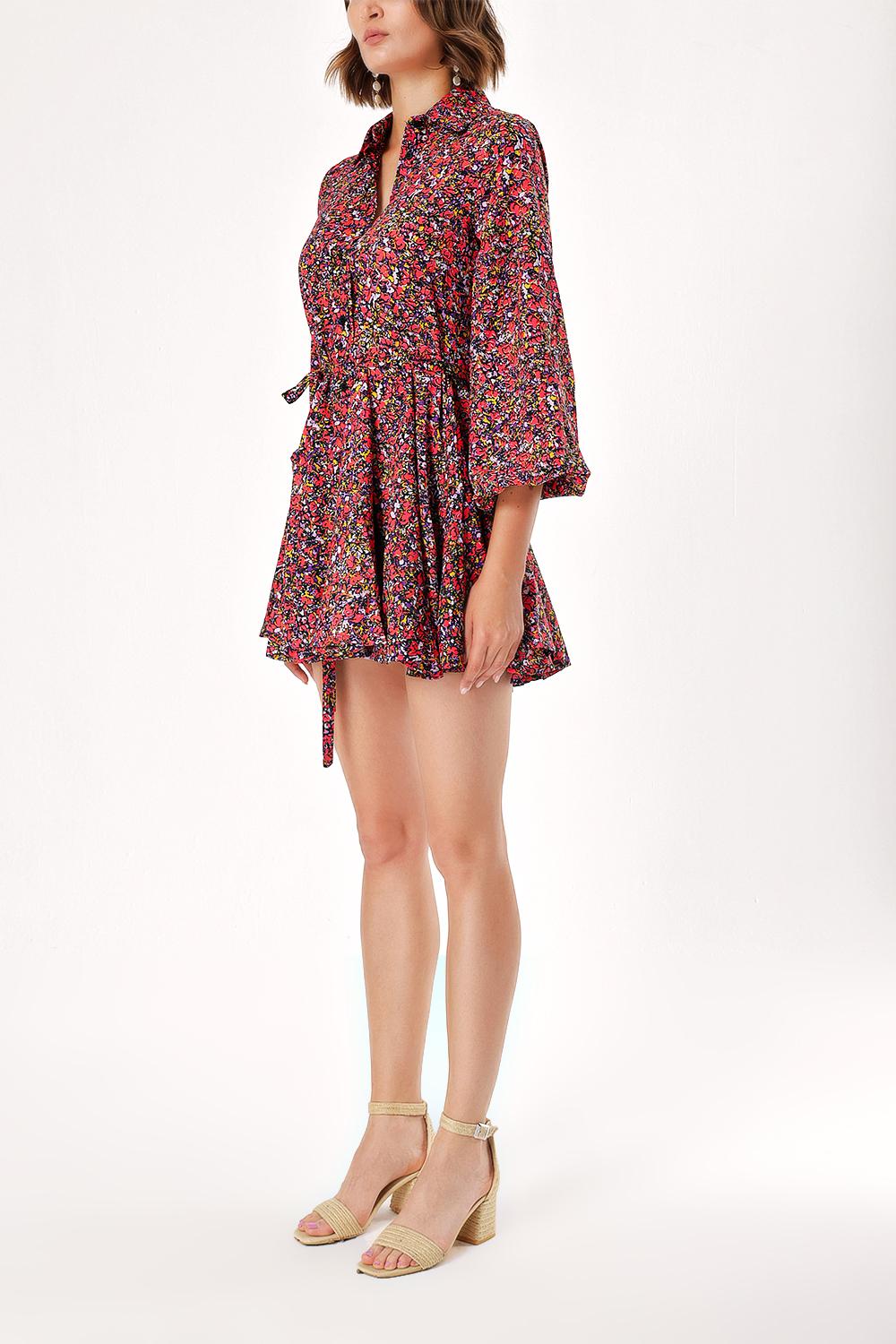 Mixed Colors Shirt dress with godet skirt 94075
