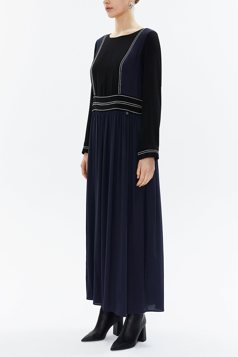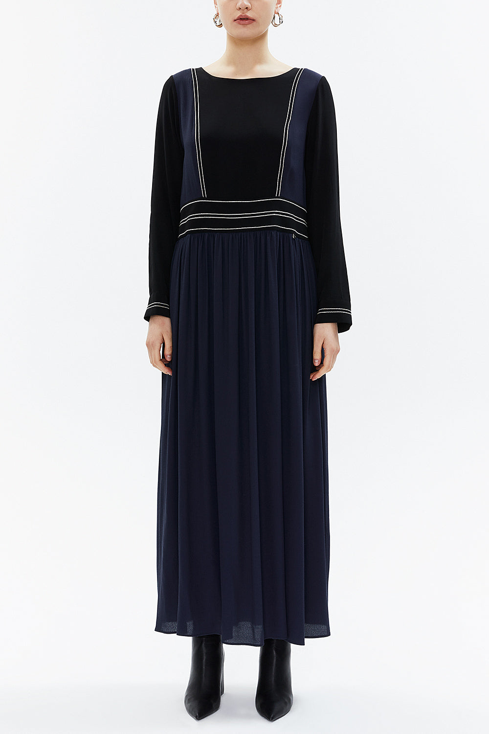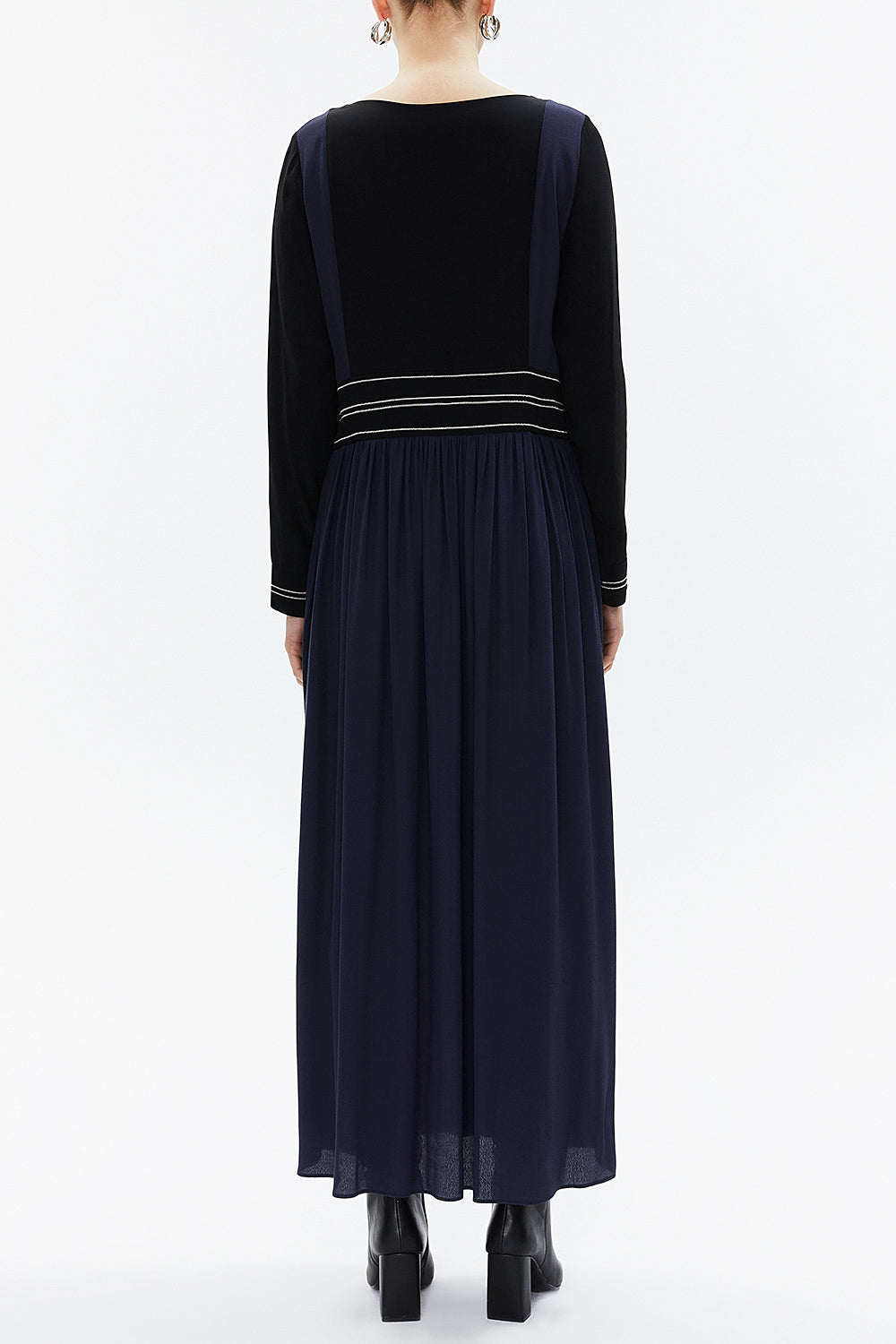 Navy Blue Chain embroidery wide cut maxi dress 93307
