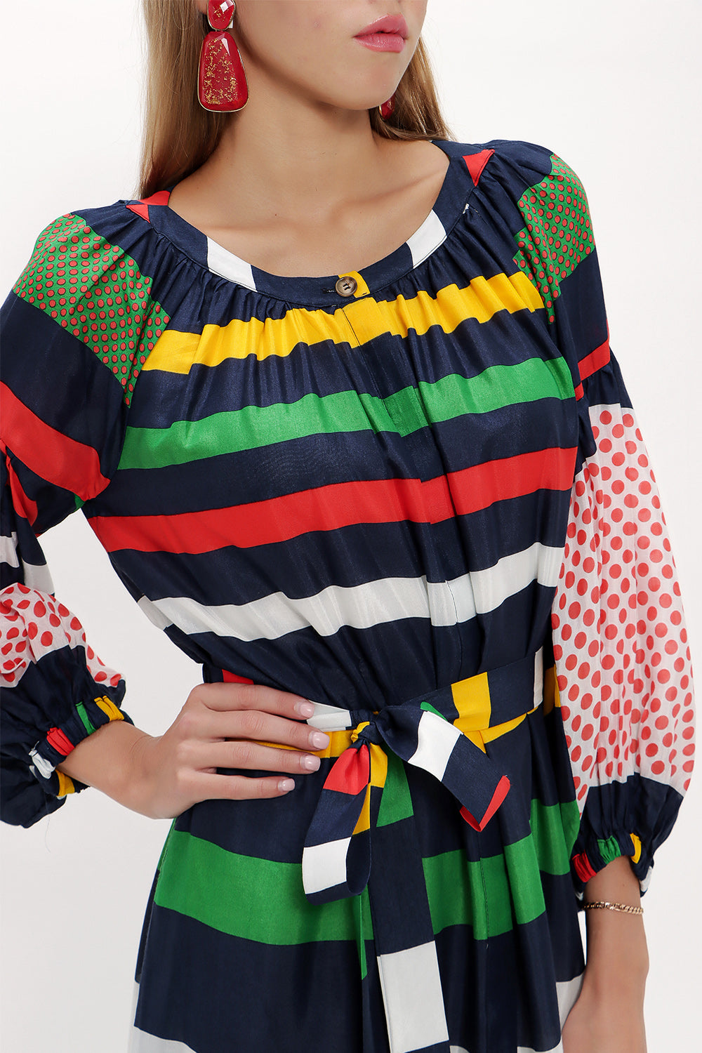 Navy Blue Elastic balloon sleeve maxi dress 92718