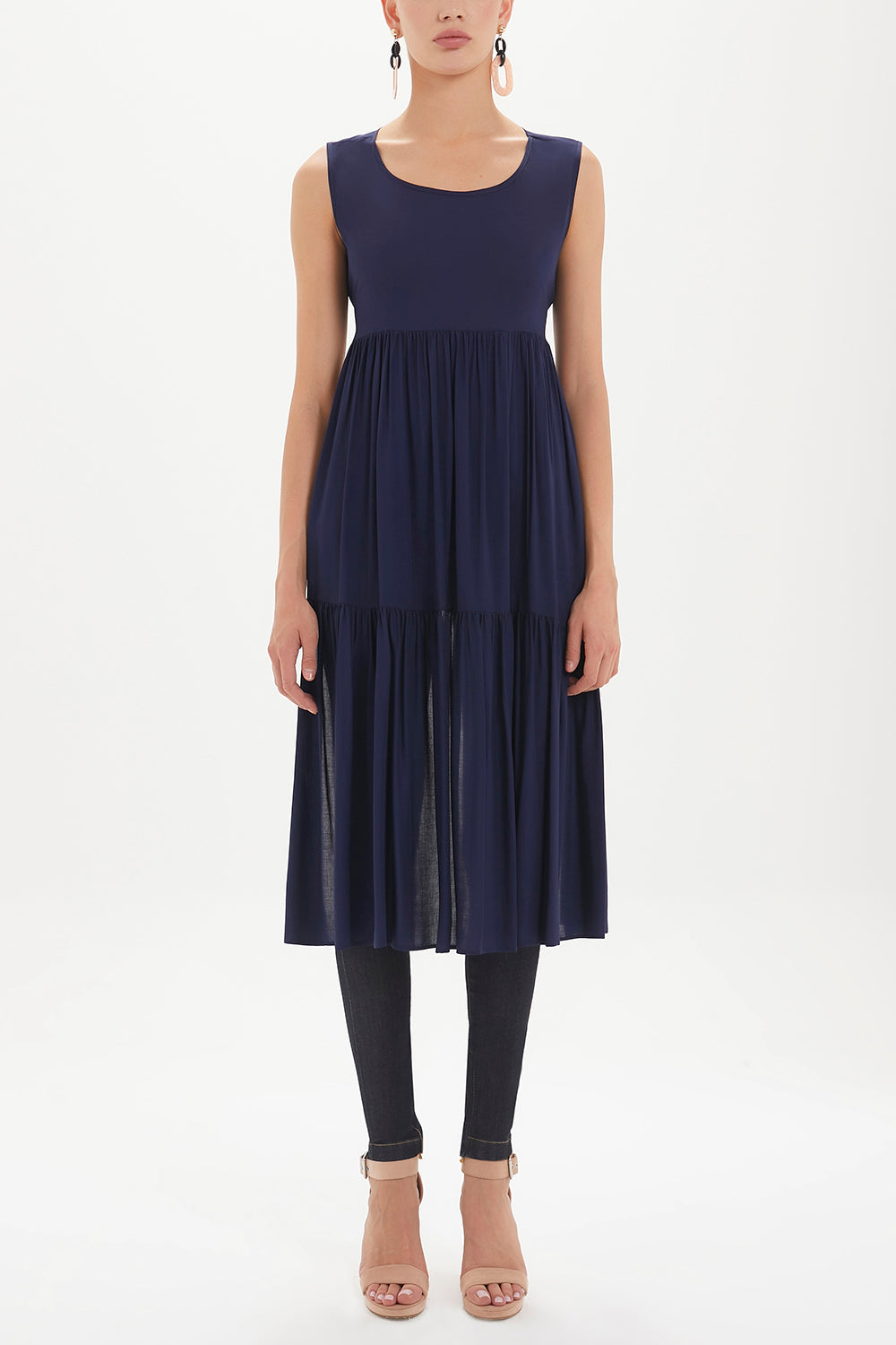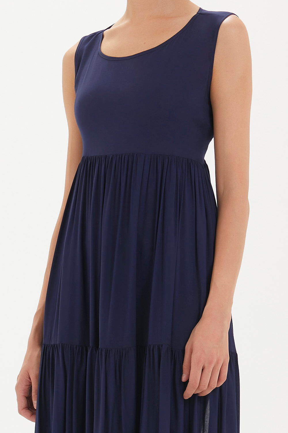 Navy Blue Low-cut back short sleeve midi dress 92399