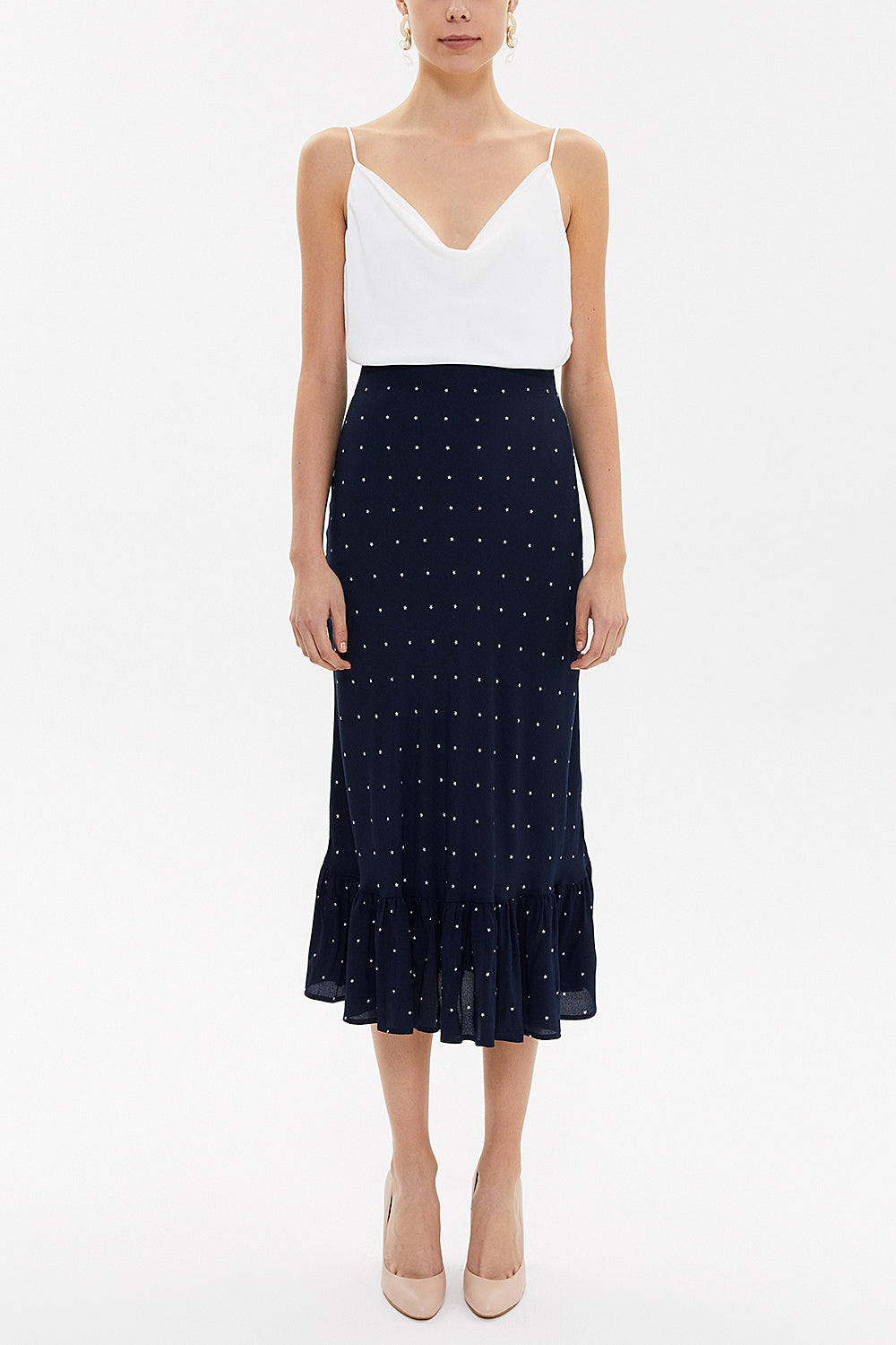 Navy Blue Mid-calf straight slim skirt 81124