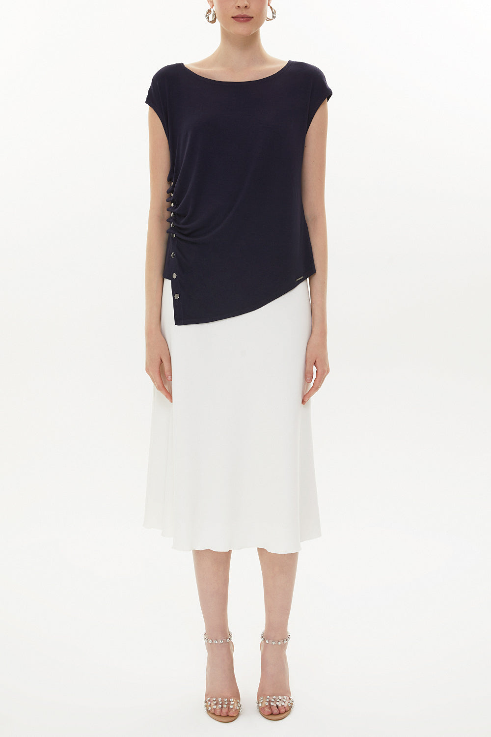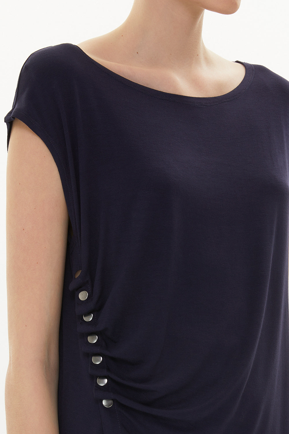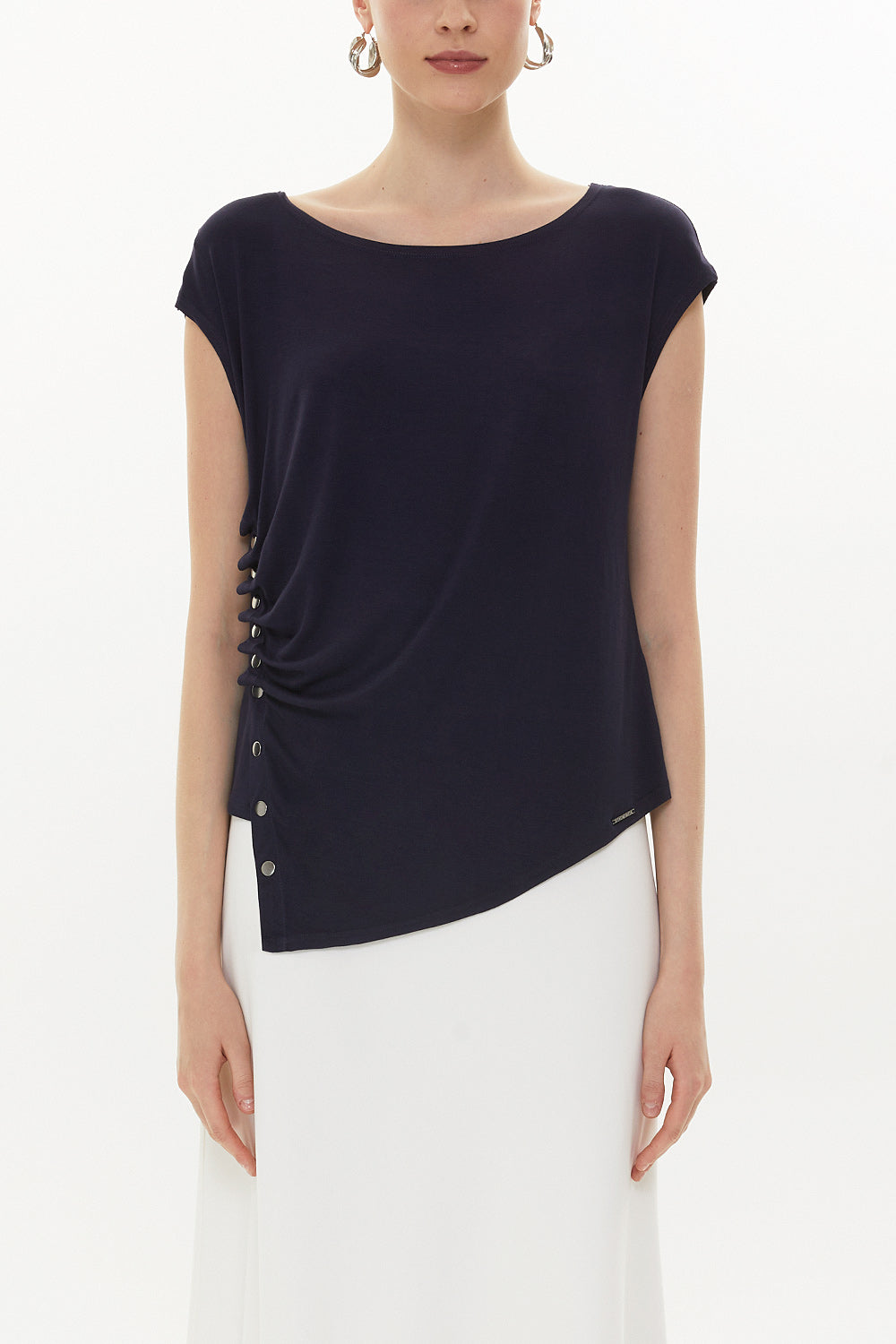 Navy Blue Snap fastener detail shabby chic blouse 19817