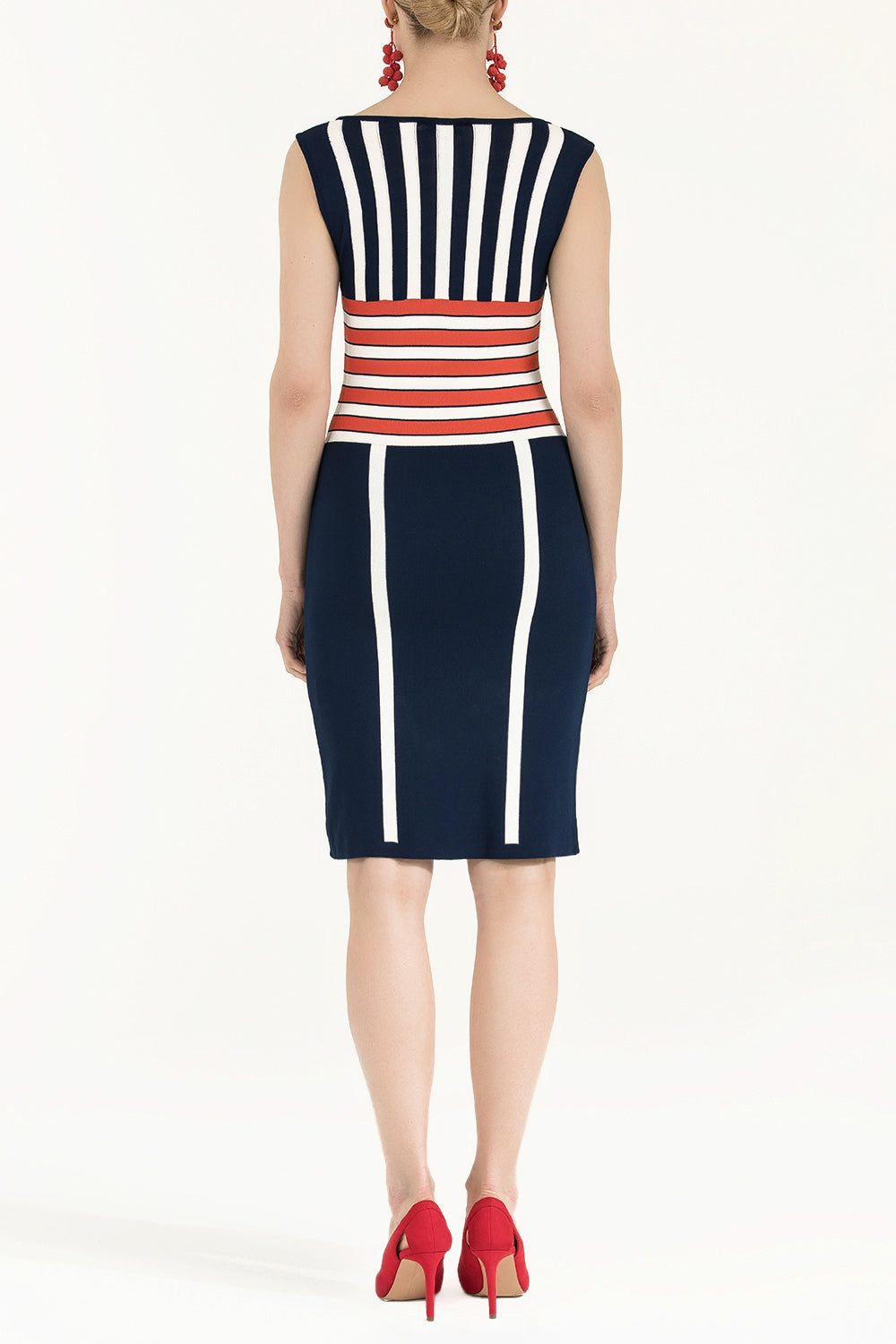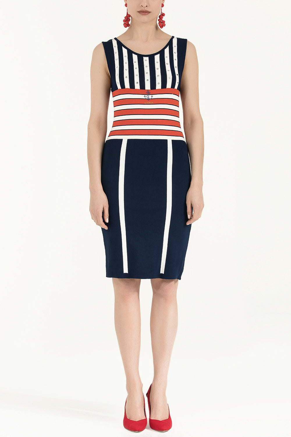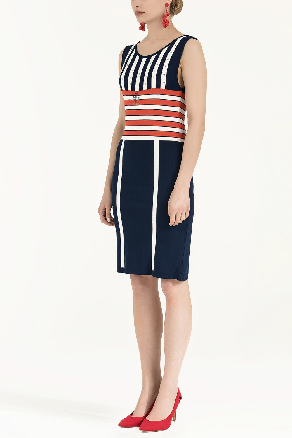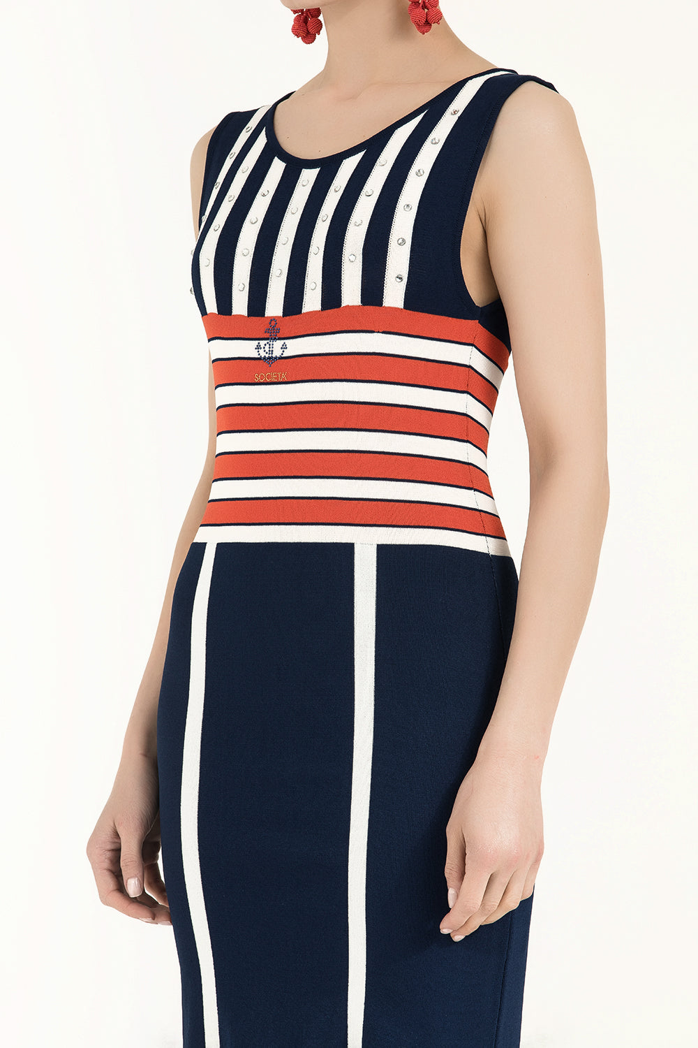 Navy Blue Striped and gem knit dress 28032