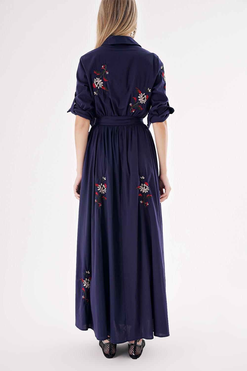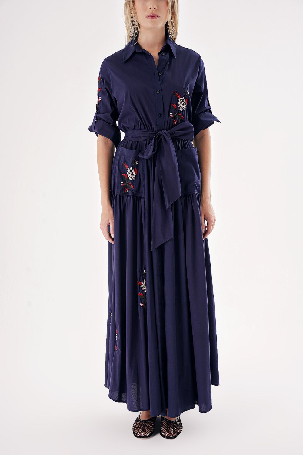 Navy Blue Taffeta embroidered maxi shirt dress 94497