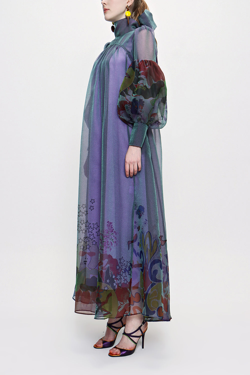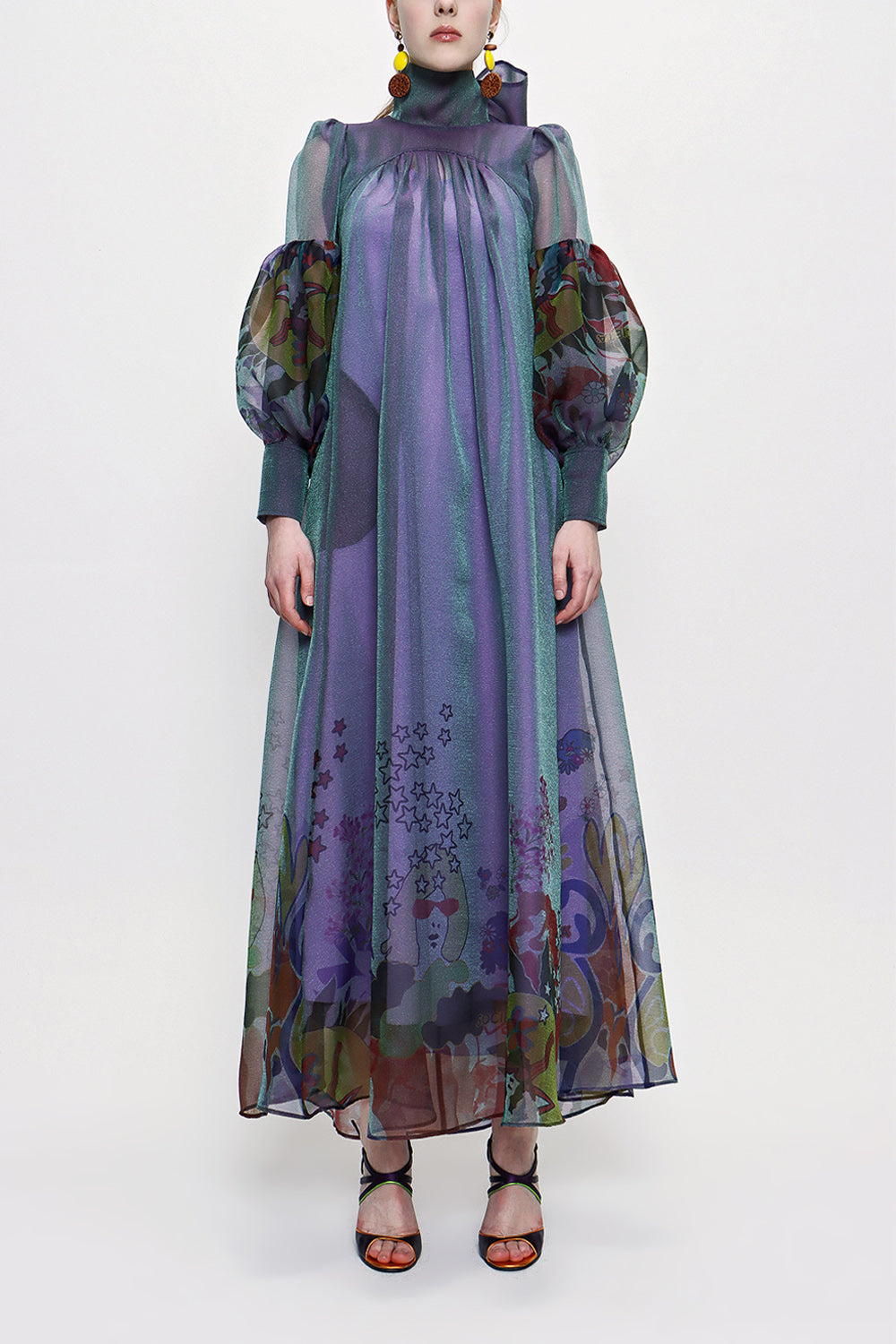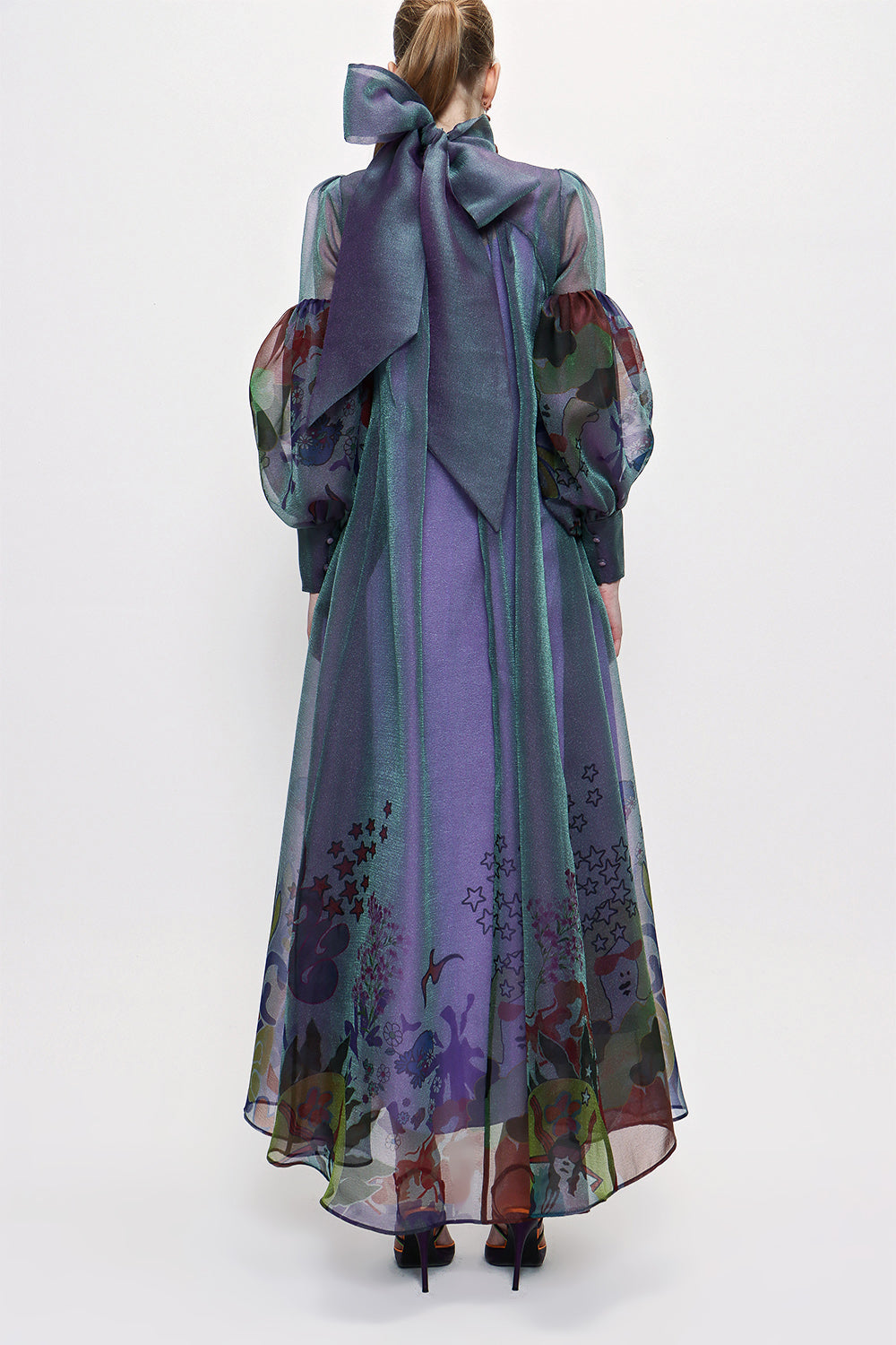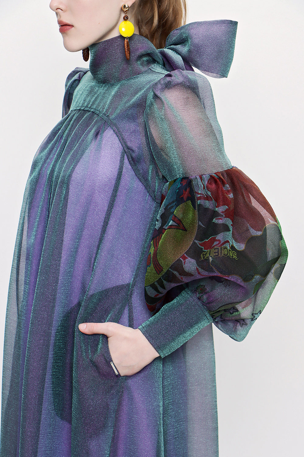 Navy Blue Tie neck gown organza dress 93795