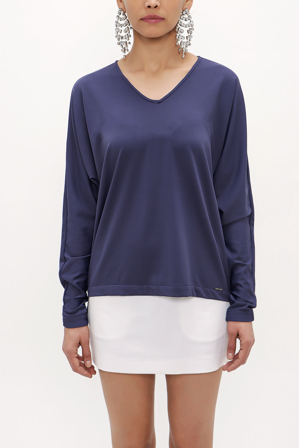 Navy Blue V-neck wide cut blouse 19784