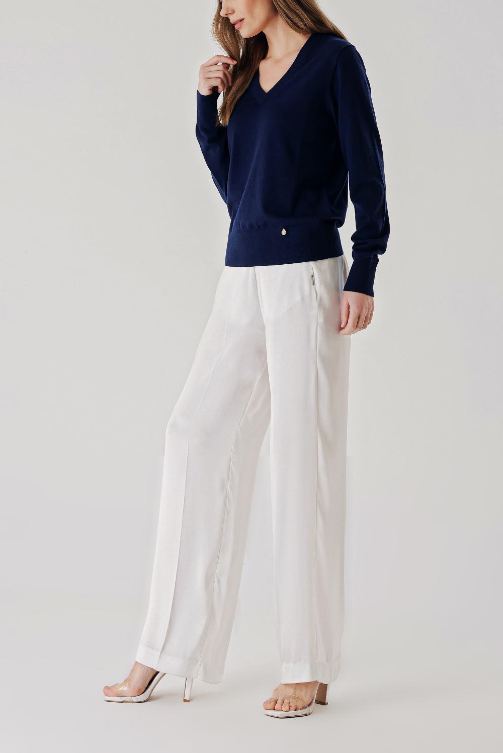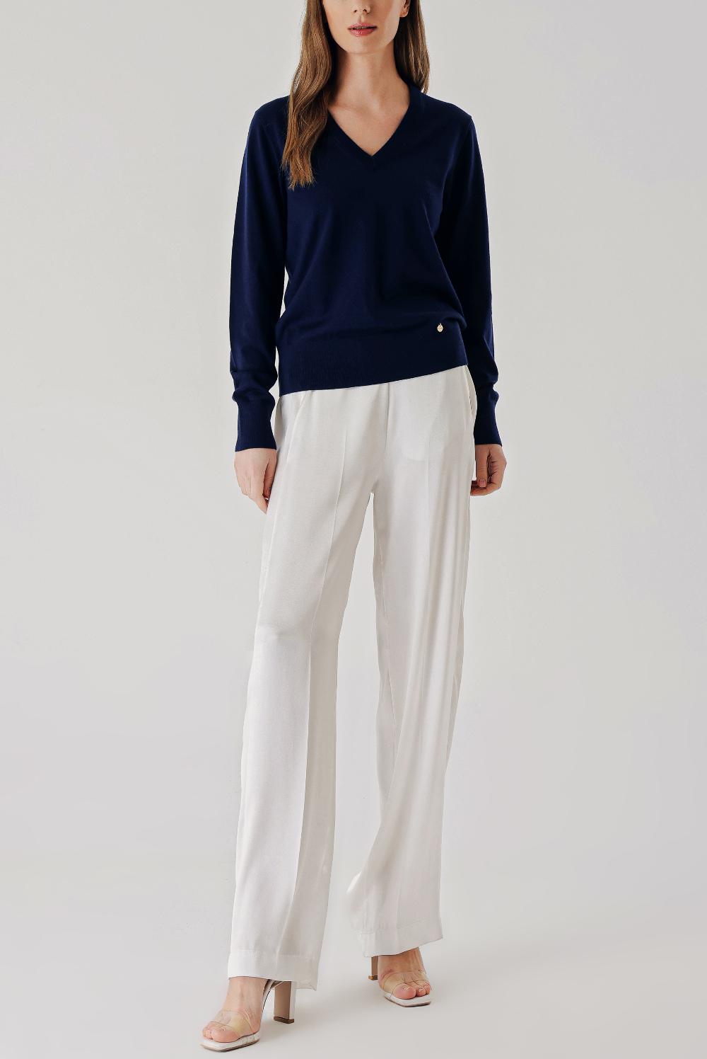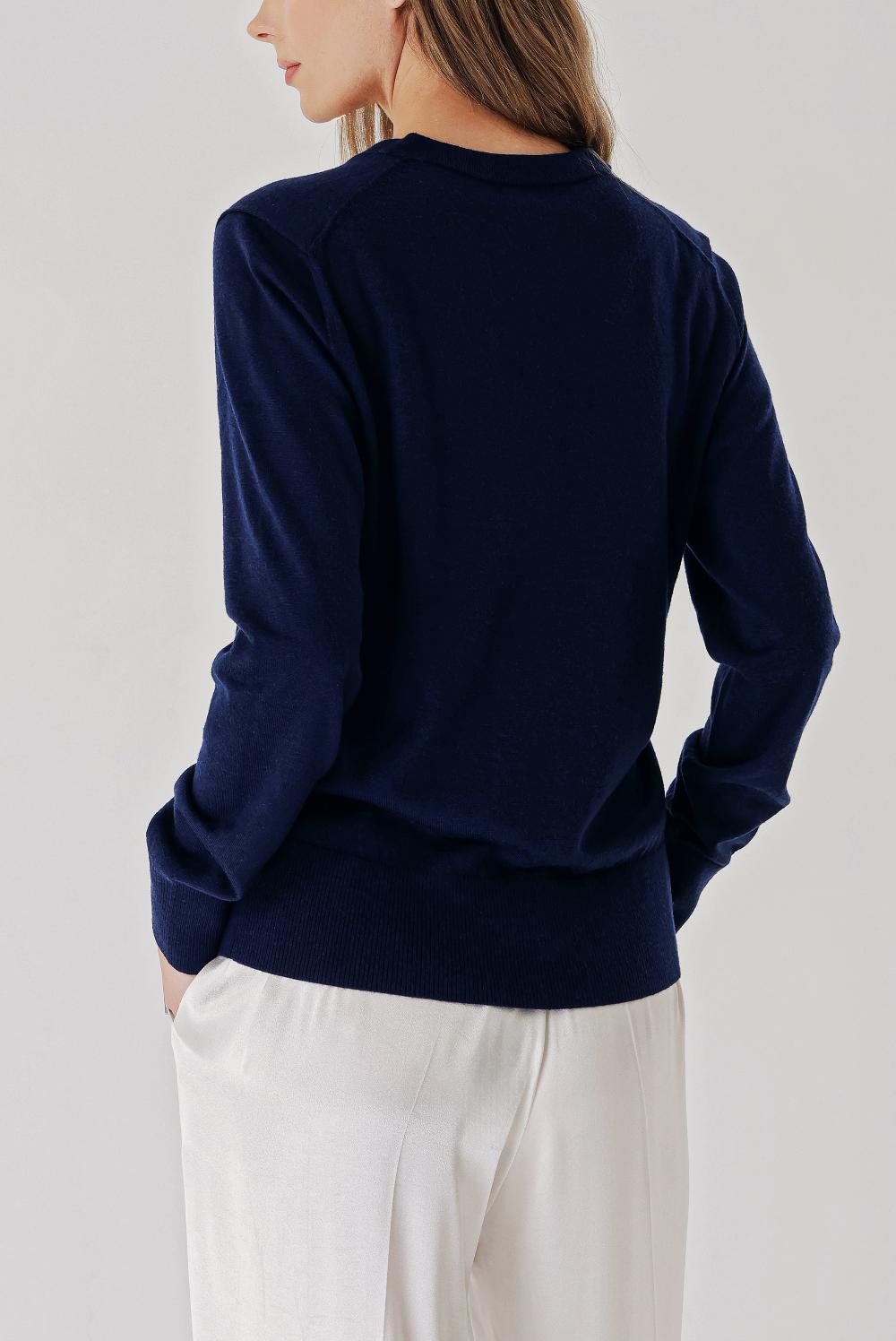Navy Blue V-neck wool knit sweater 28869