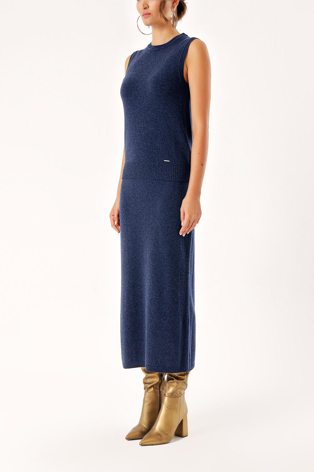 Navy Blue Wool and cashmere blended knitwear suit 28830