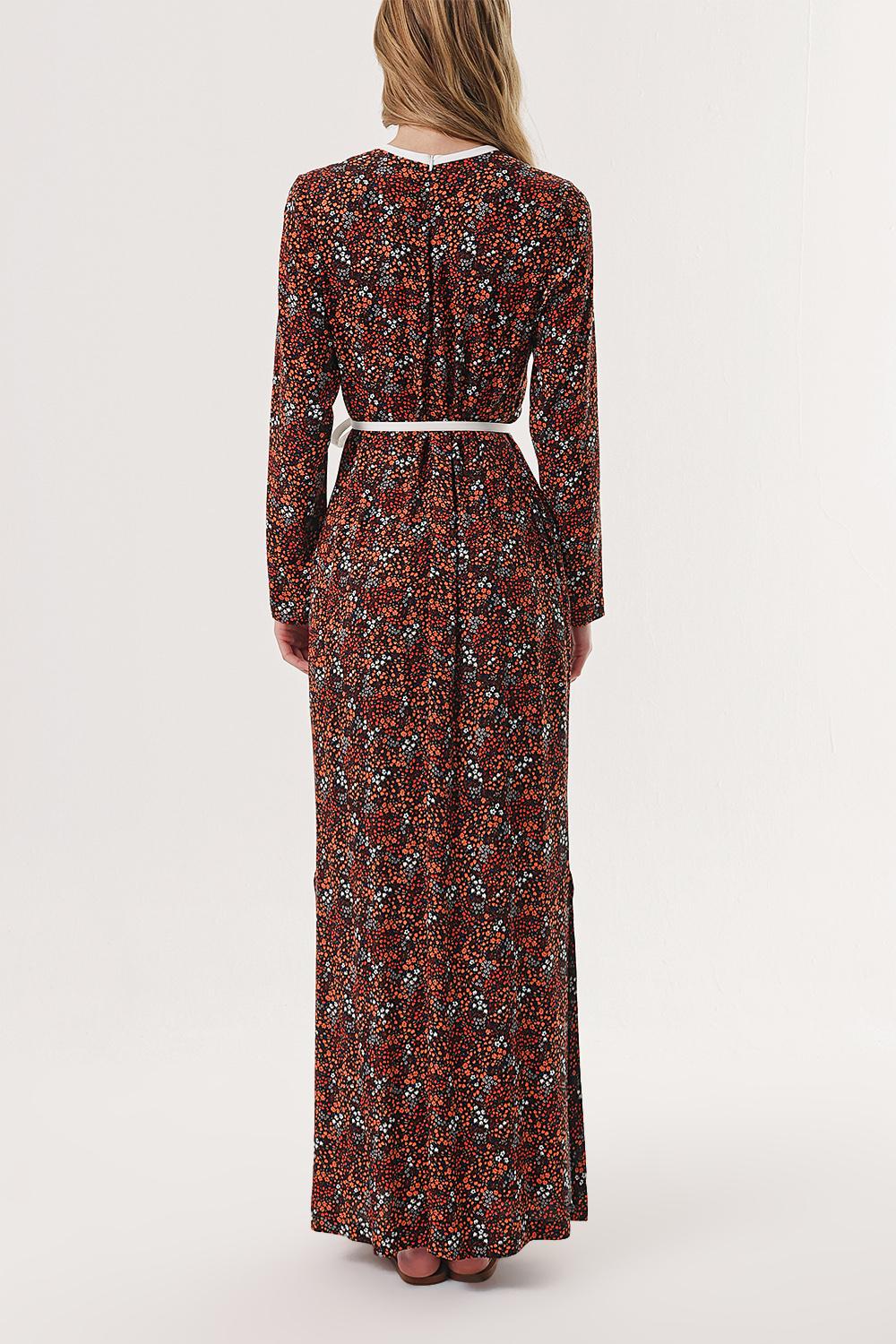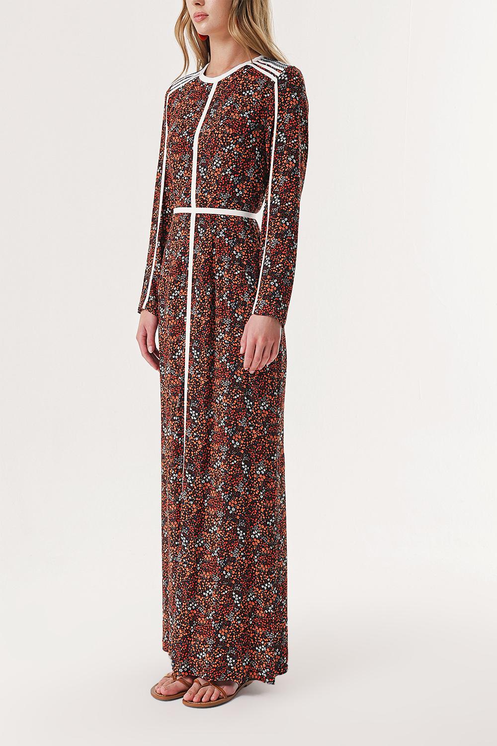 Orange Long dress with contrast piping detail 94110