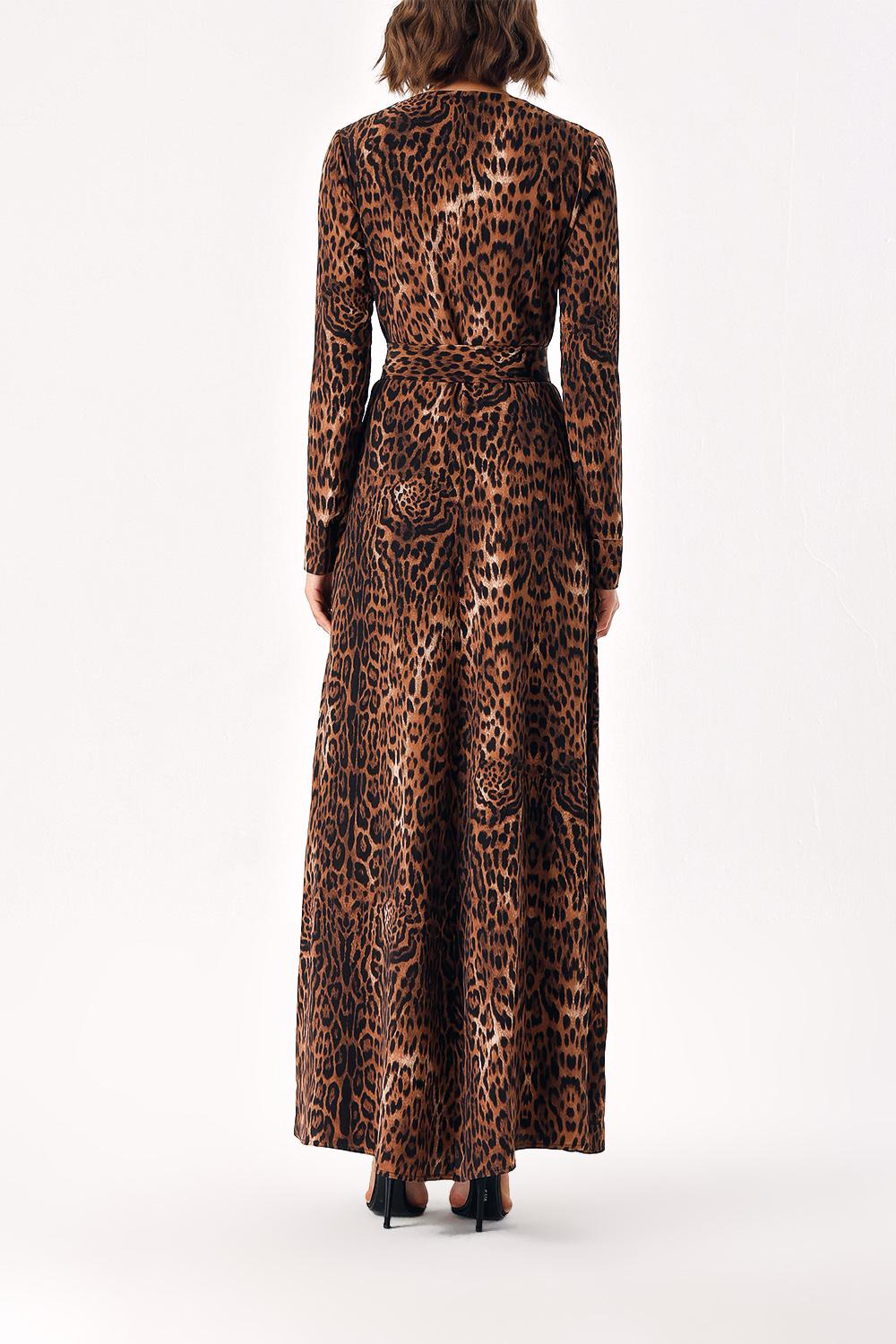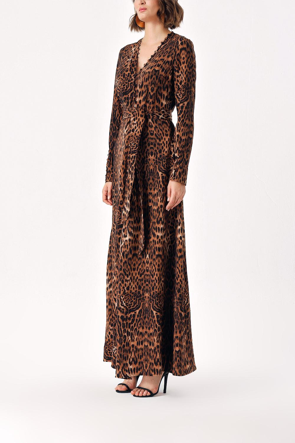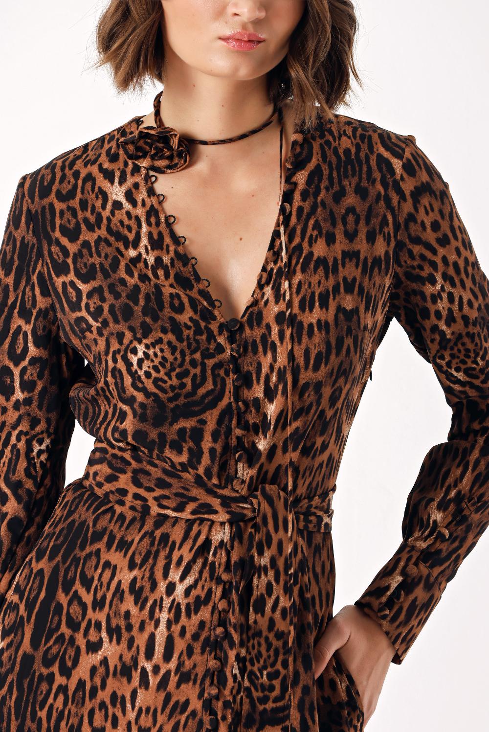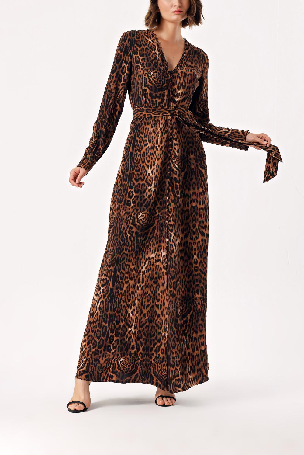 Pars Long belted dress with button detail 94407