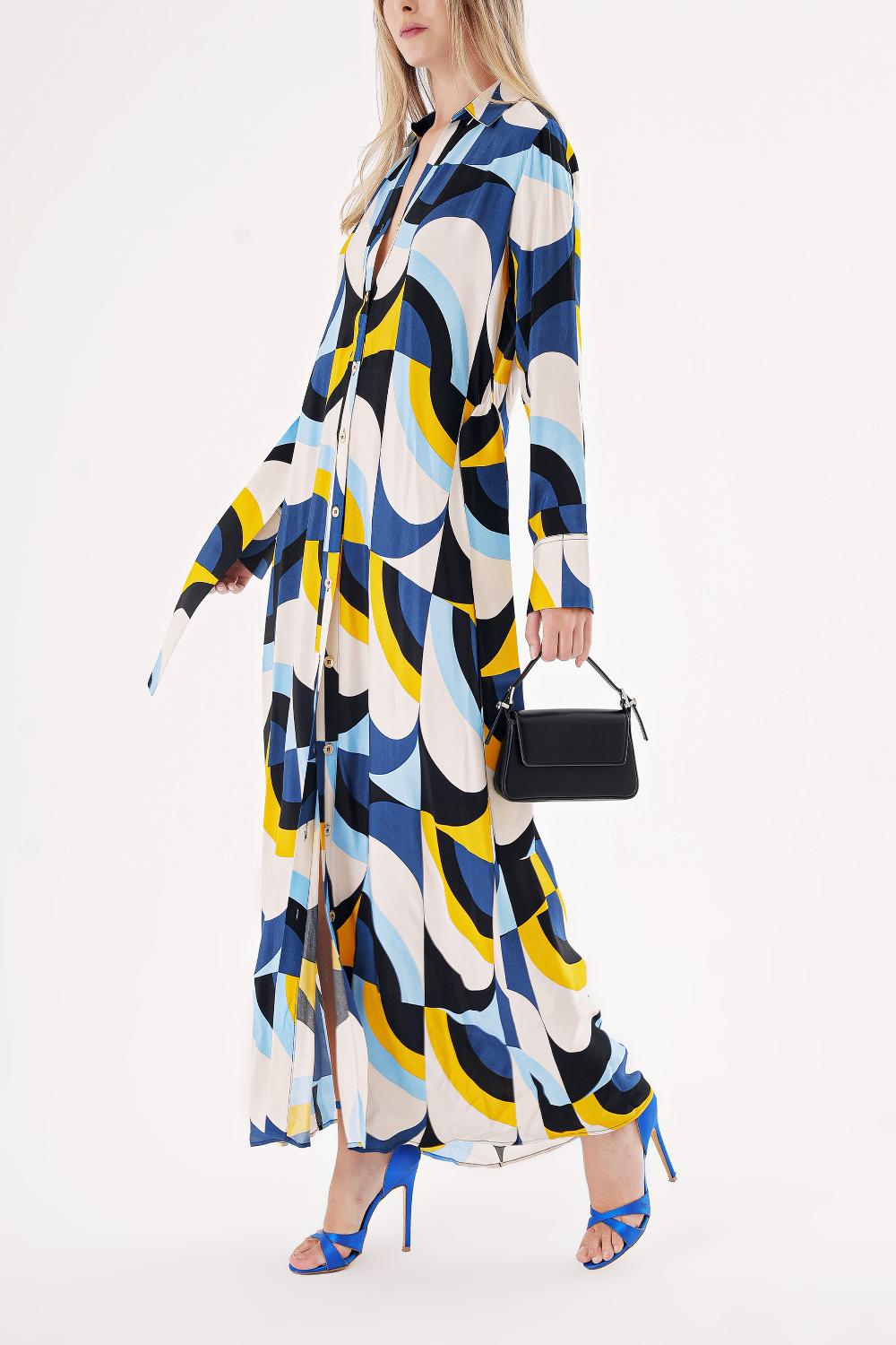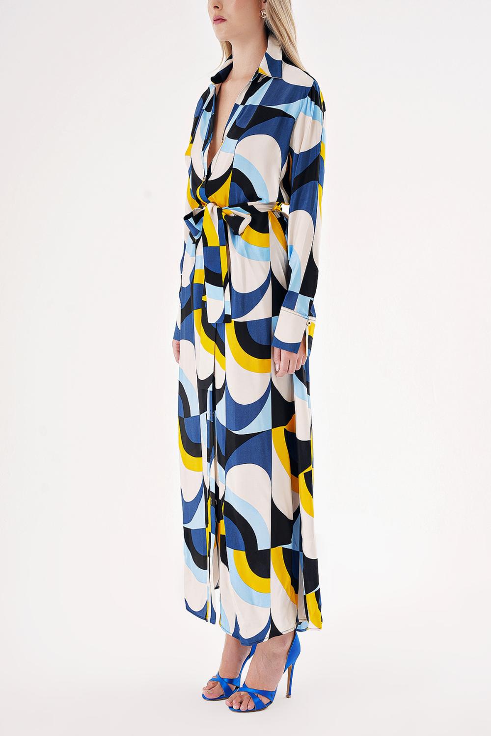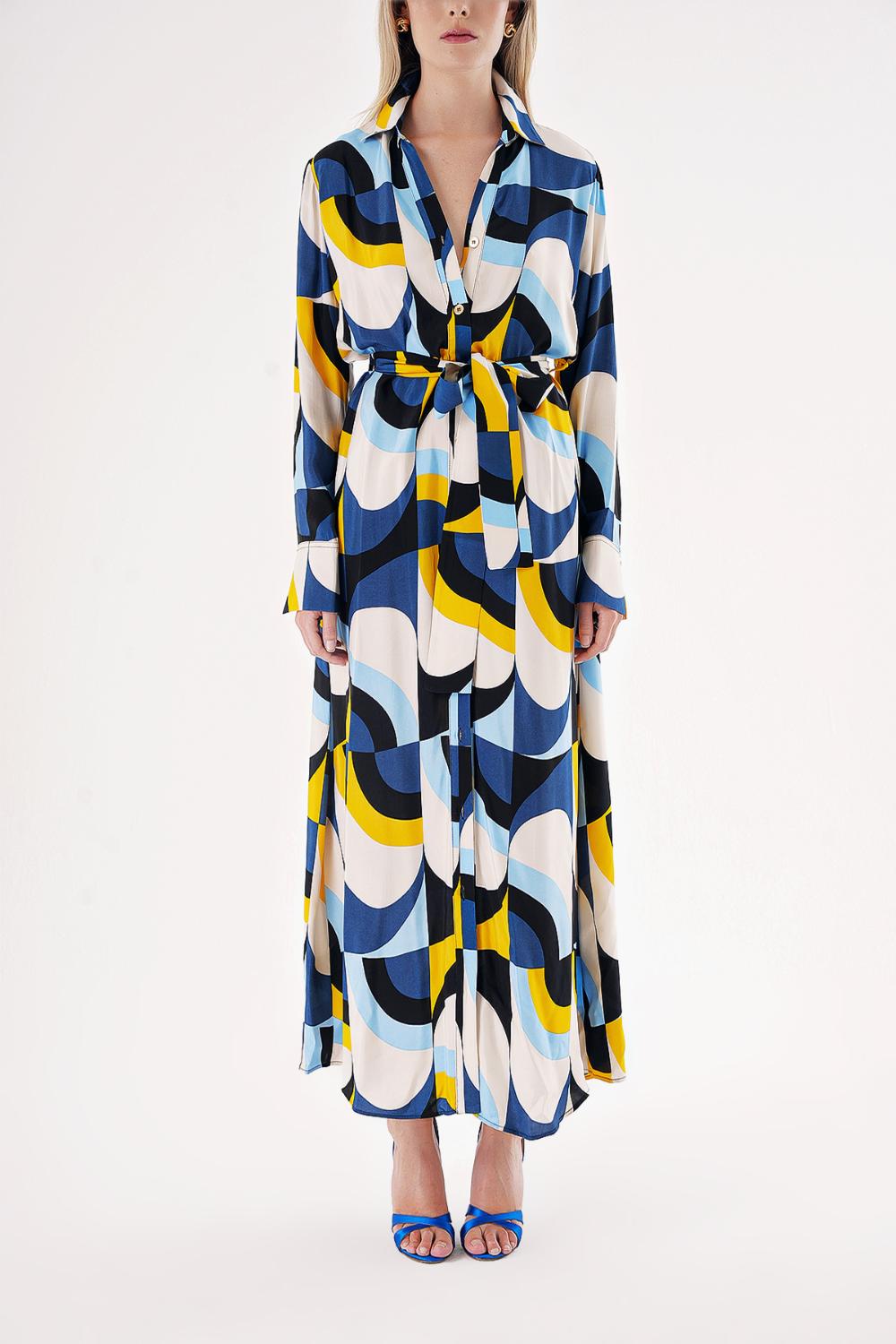 Patterned Loose fit belted shirt dress 94549