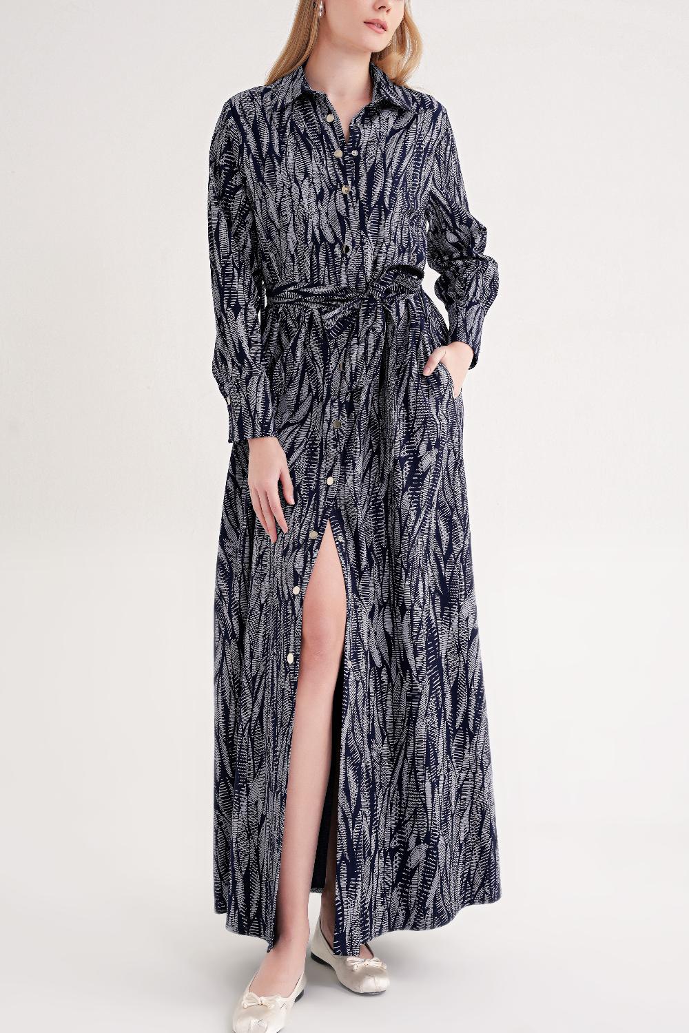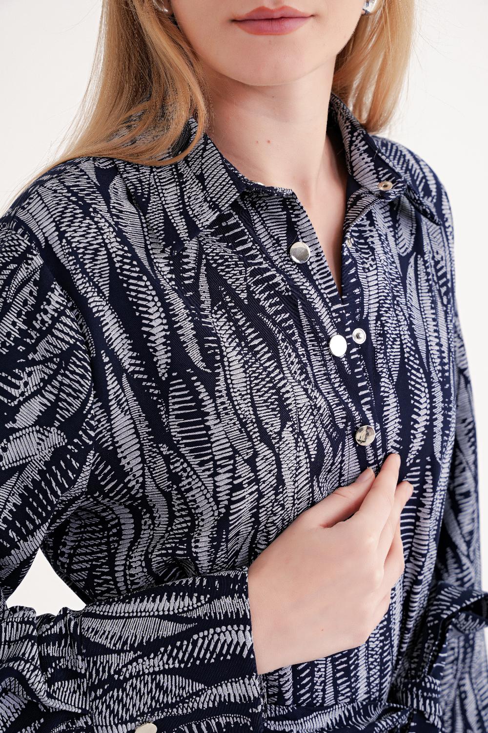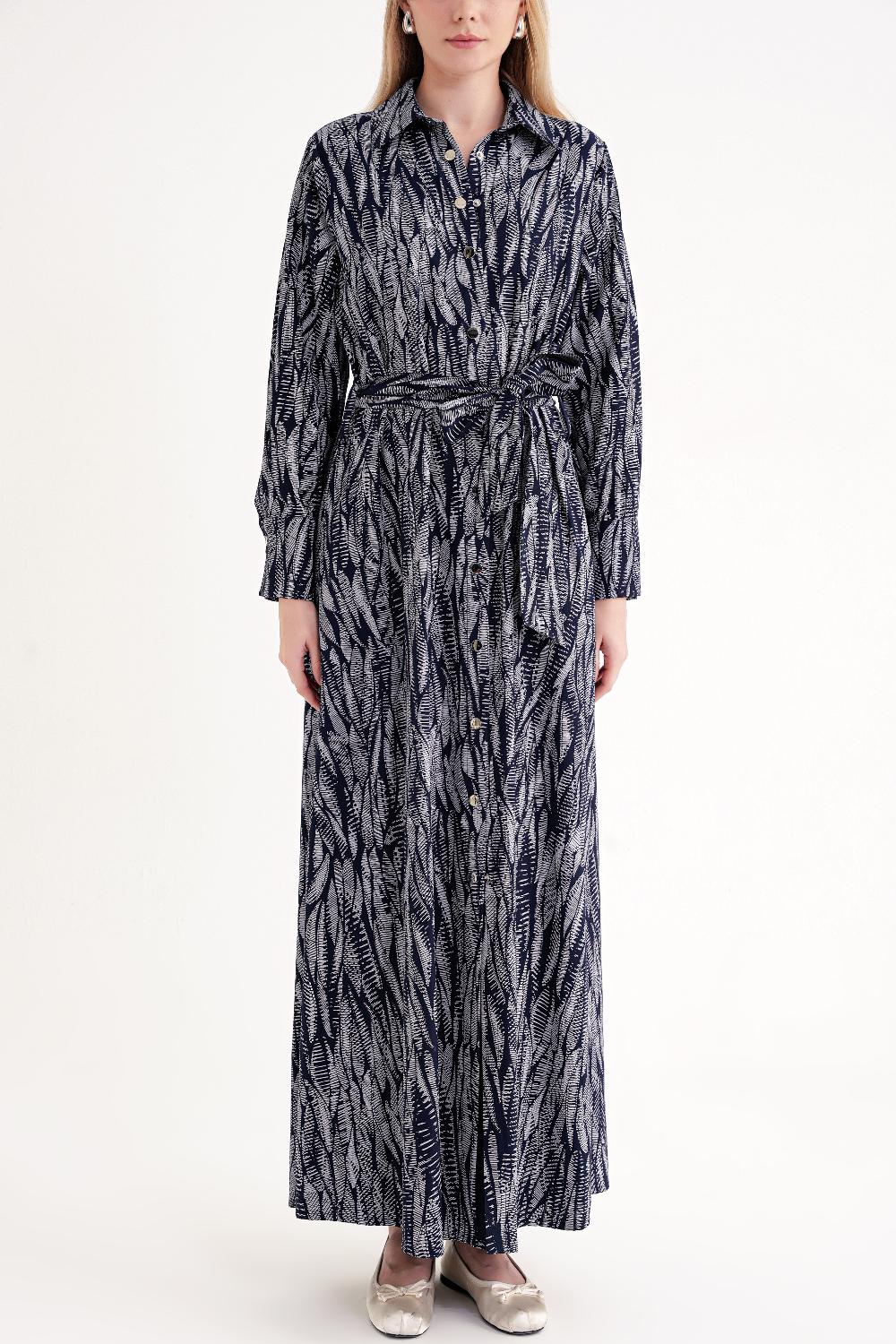 Patterned Loose-fitting belted shirt dress 94684