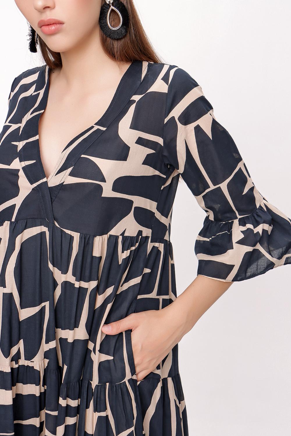 Patterned Pleated dress 93769