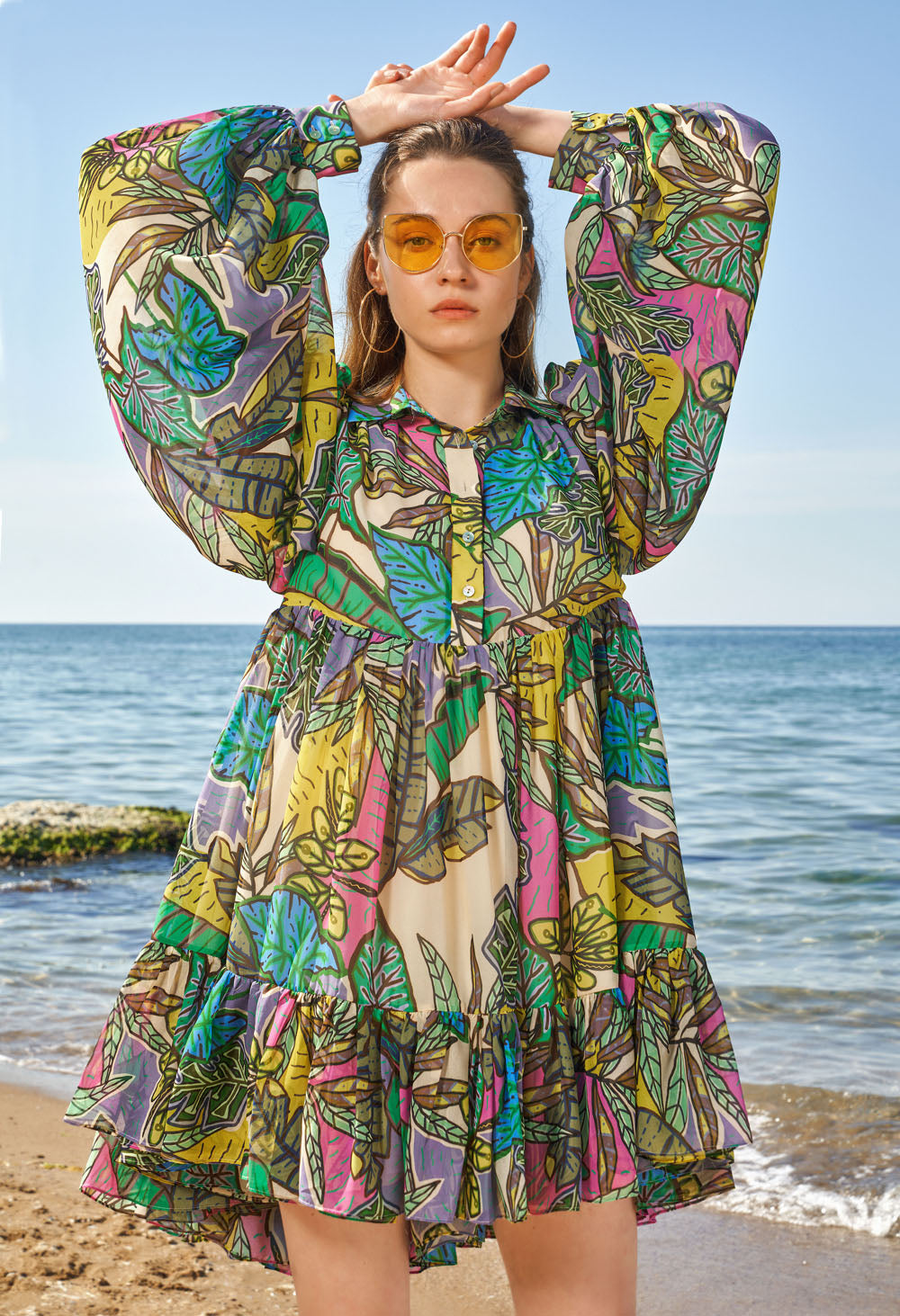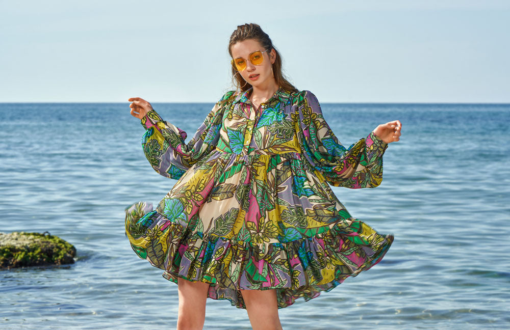 Patterned Pleated mini dress 93567