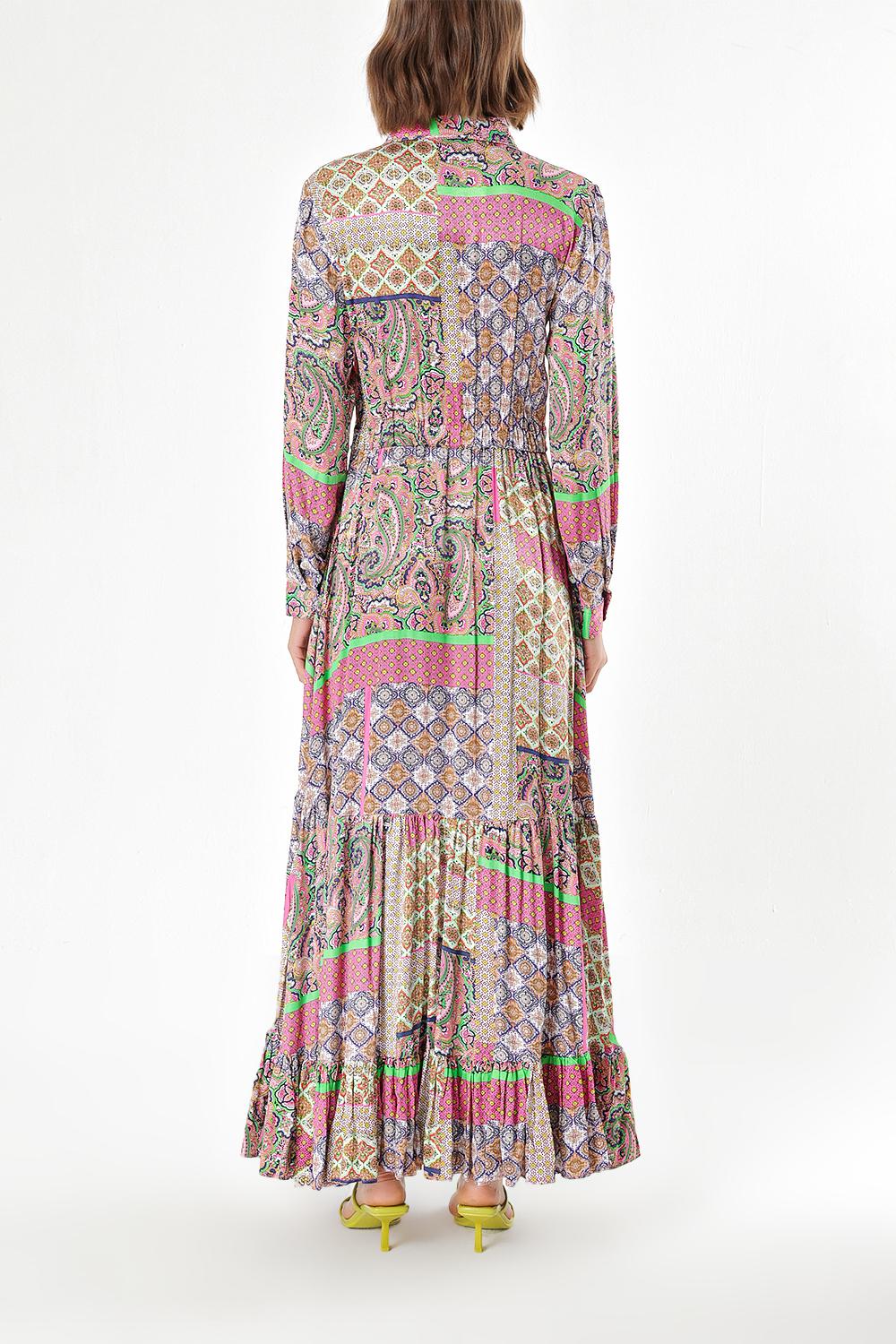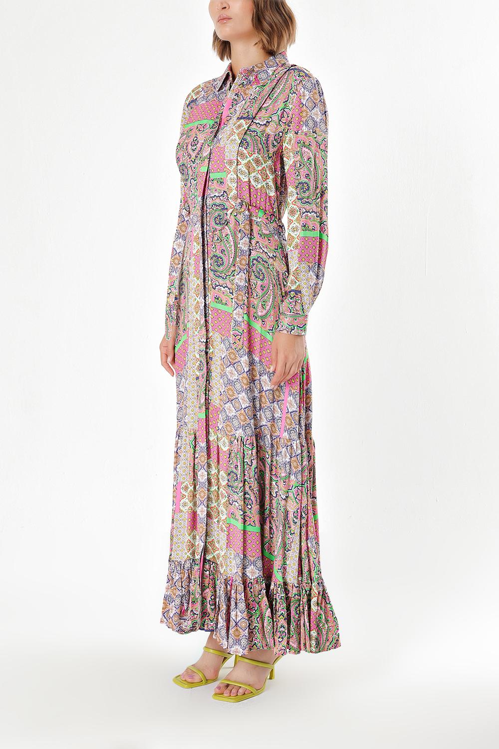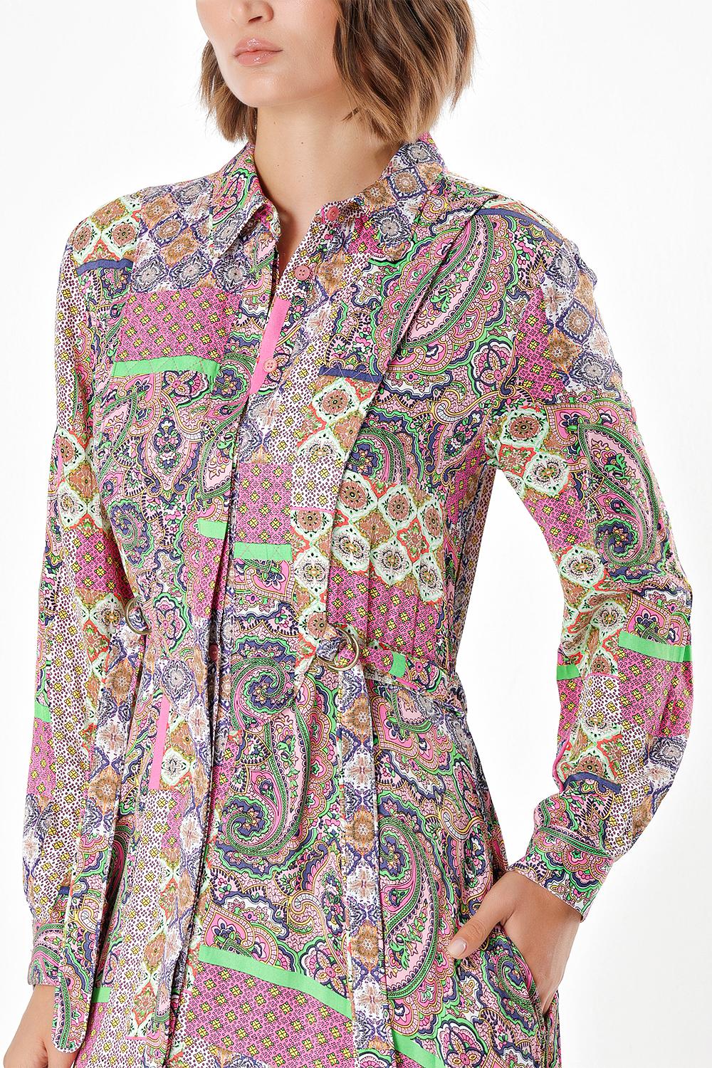 Patterned Pleated shirt dress with quilted stitching detail 94203