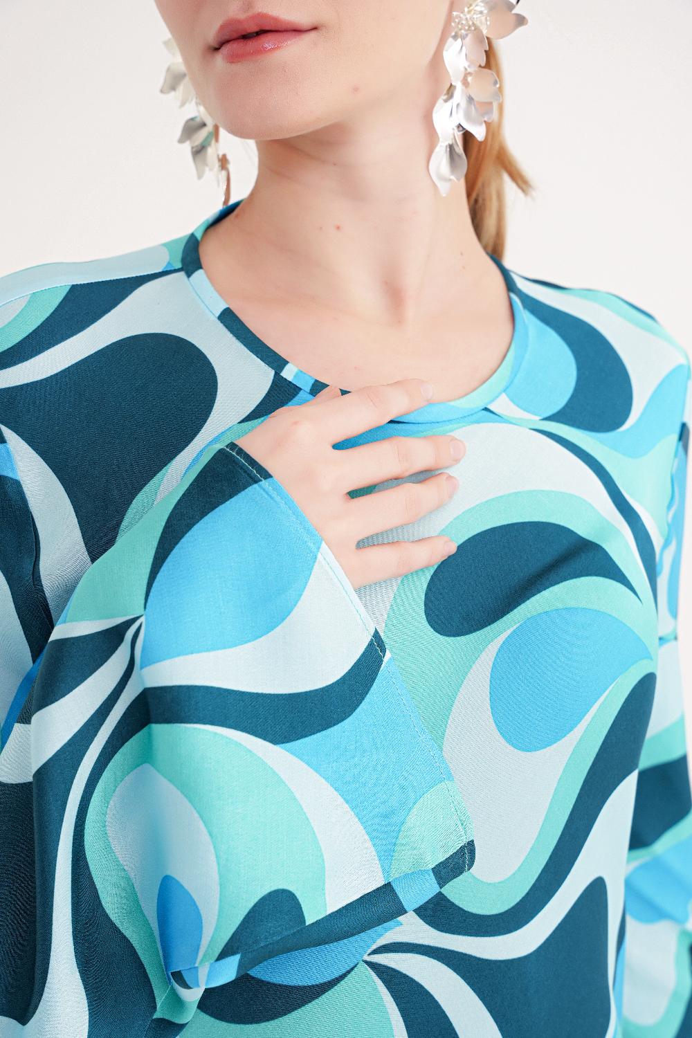 Patterned Printed satin long dress 94635