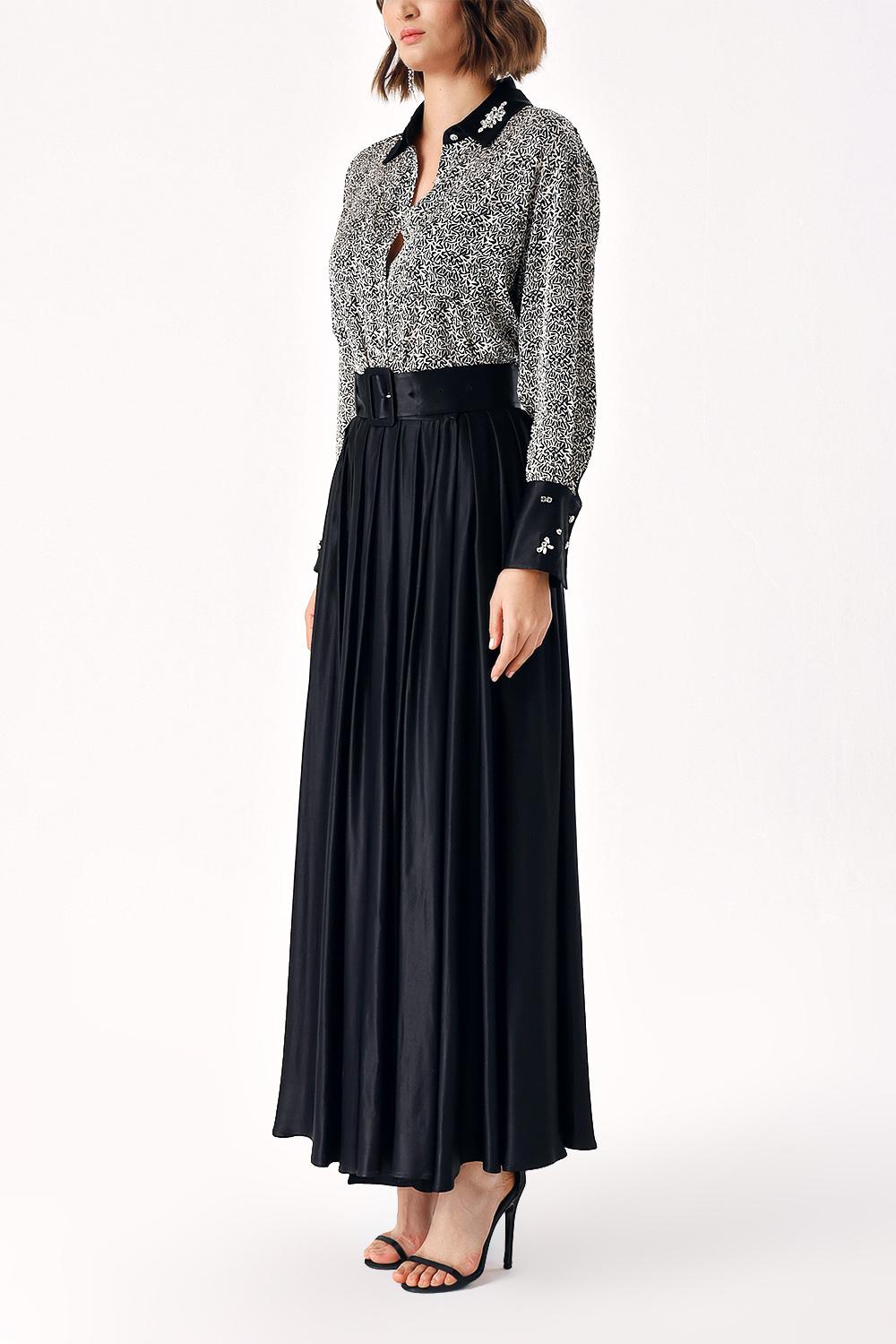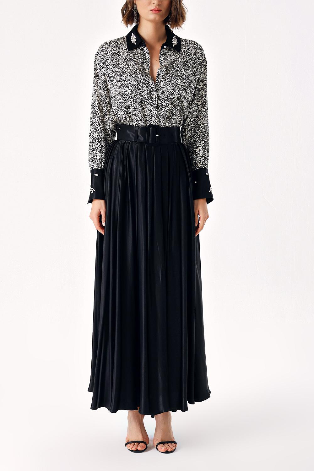 Patterned Stone embroidered shirt and elasticated skirt suit 12331