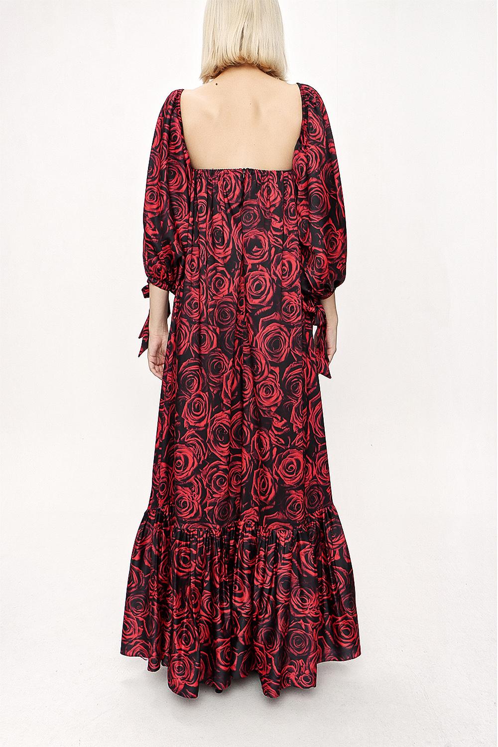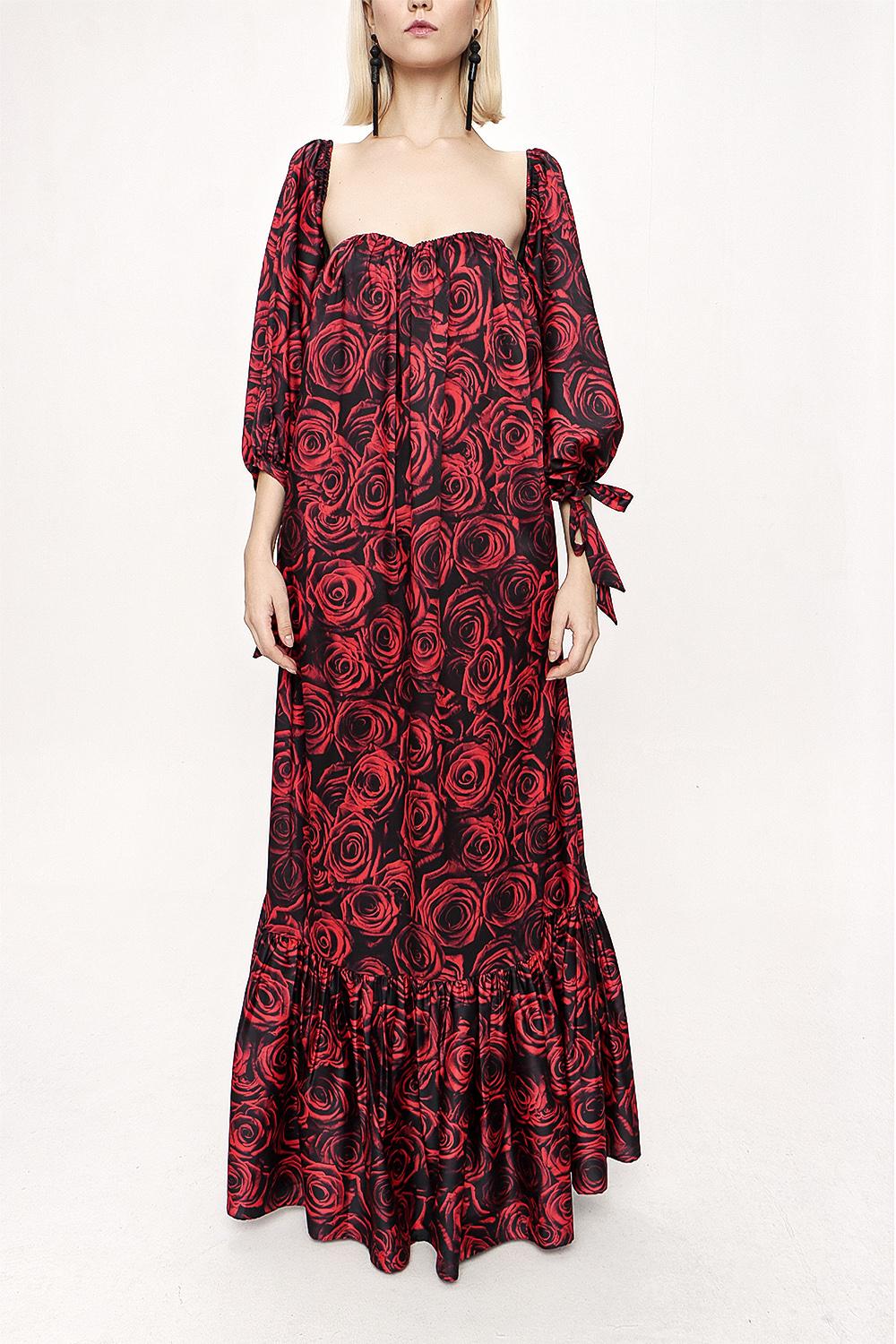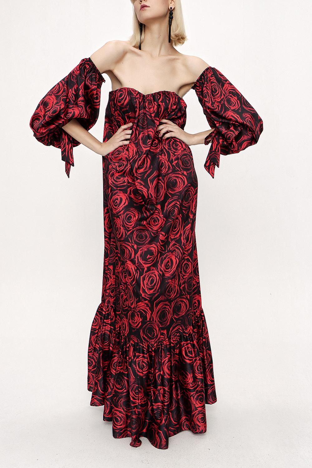 Patterned Strapless patterned balloon sleeve dress 94053
