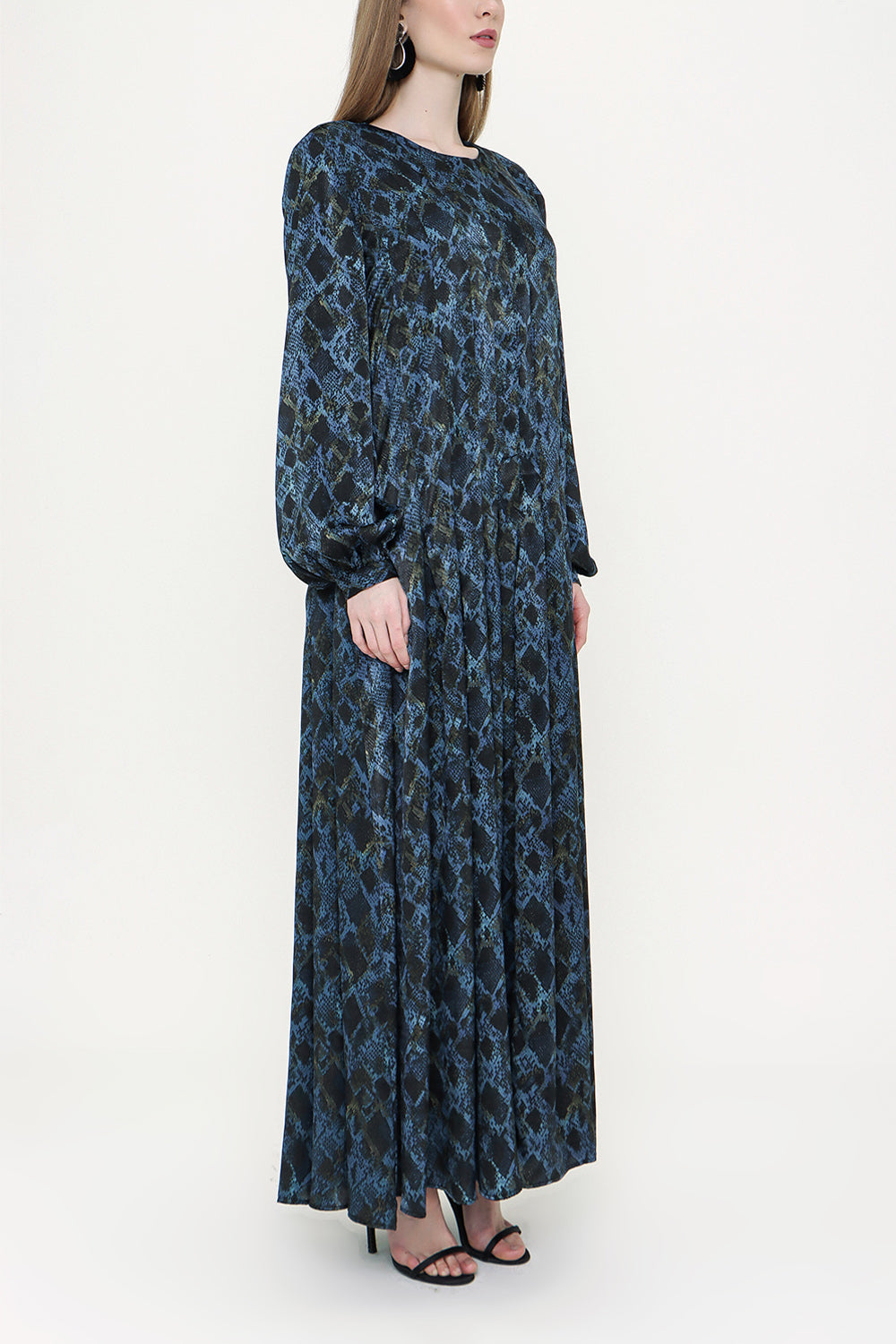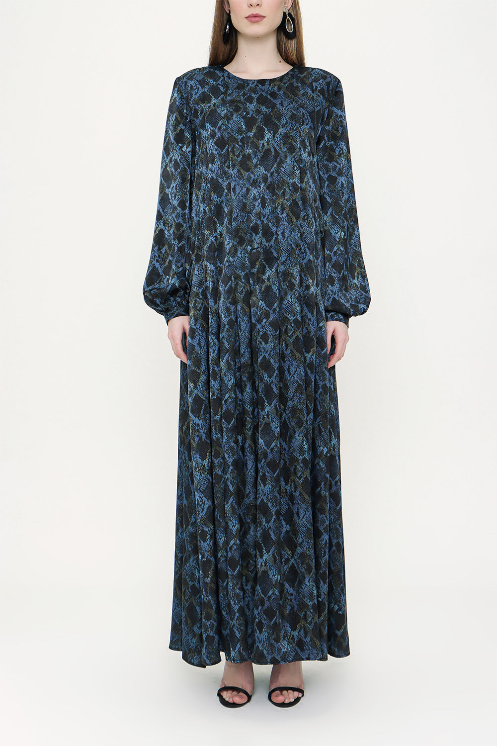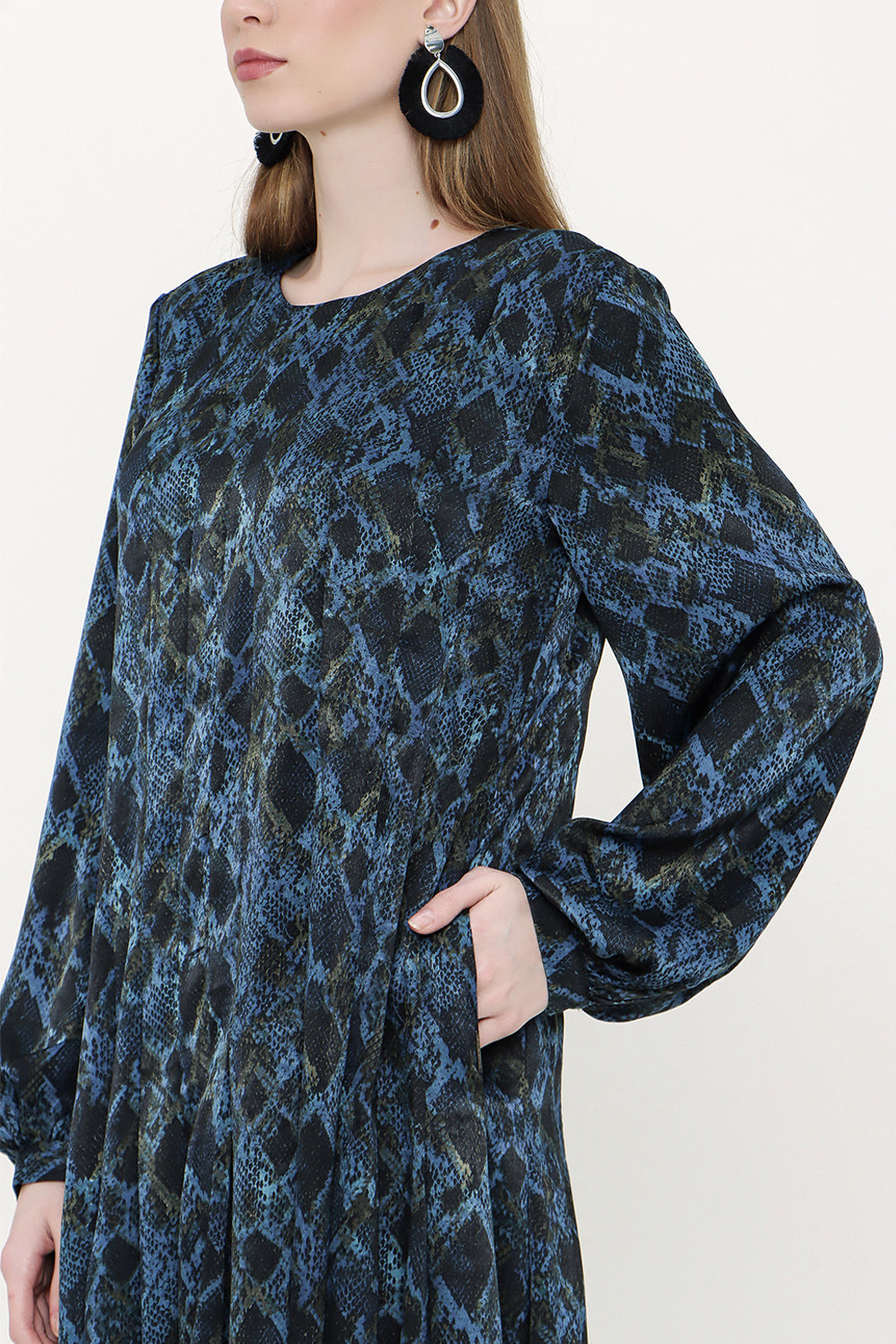 Patterned Wide cut oval neck dress 93430