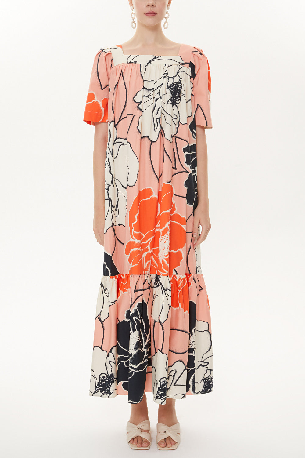 Pink Beigde Half sleeve wide cut dress 93437