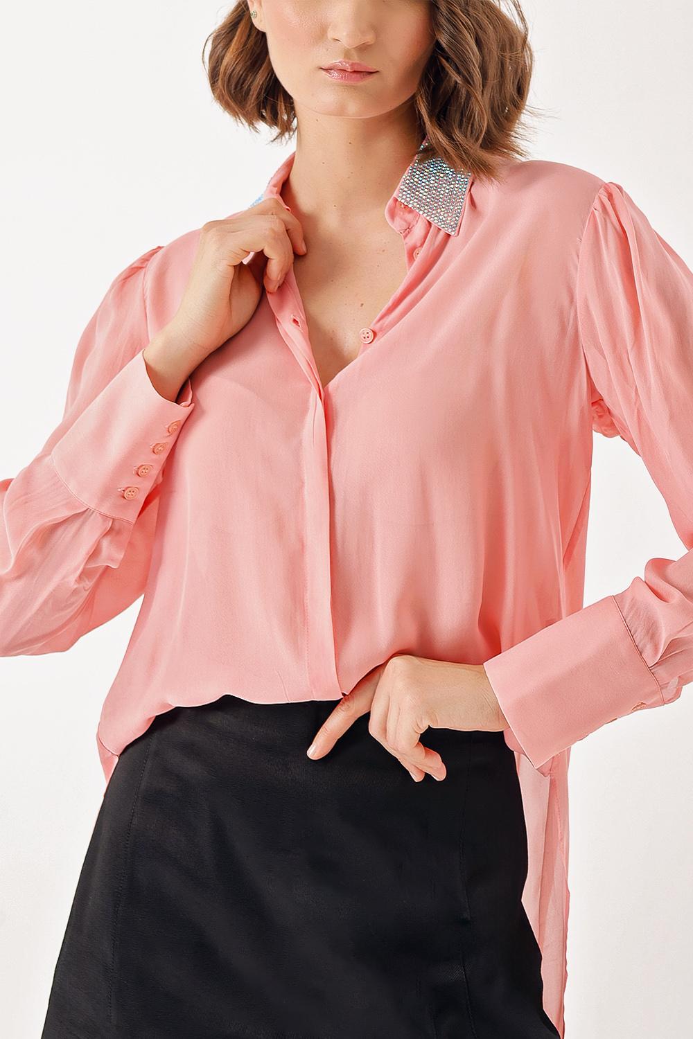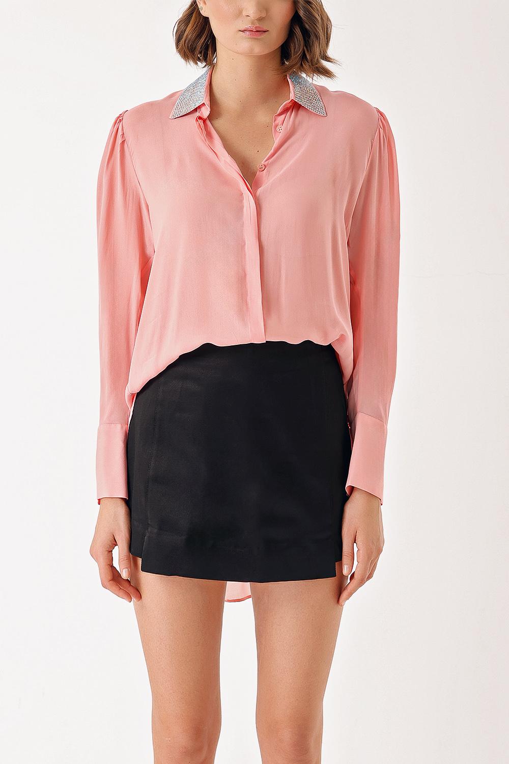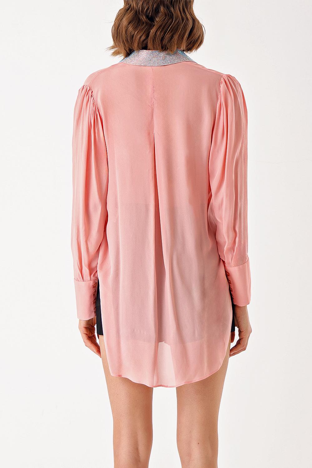 Pink Loose-cut collared shirt with crystal stone detail 10838