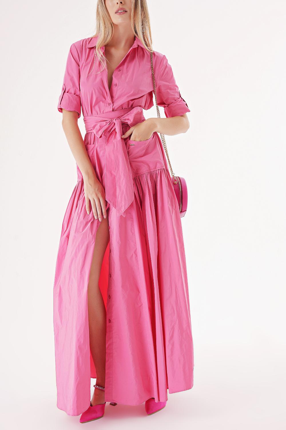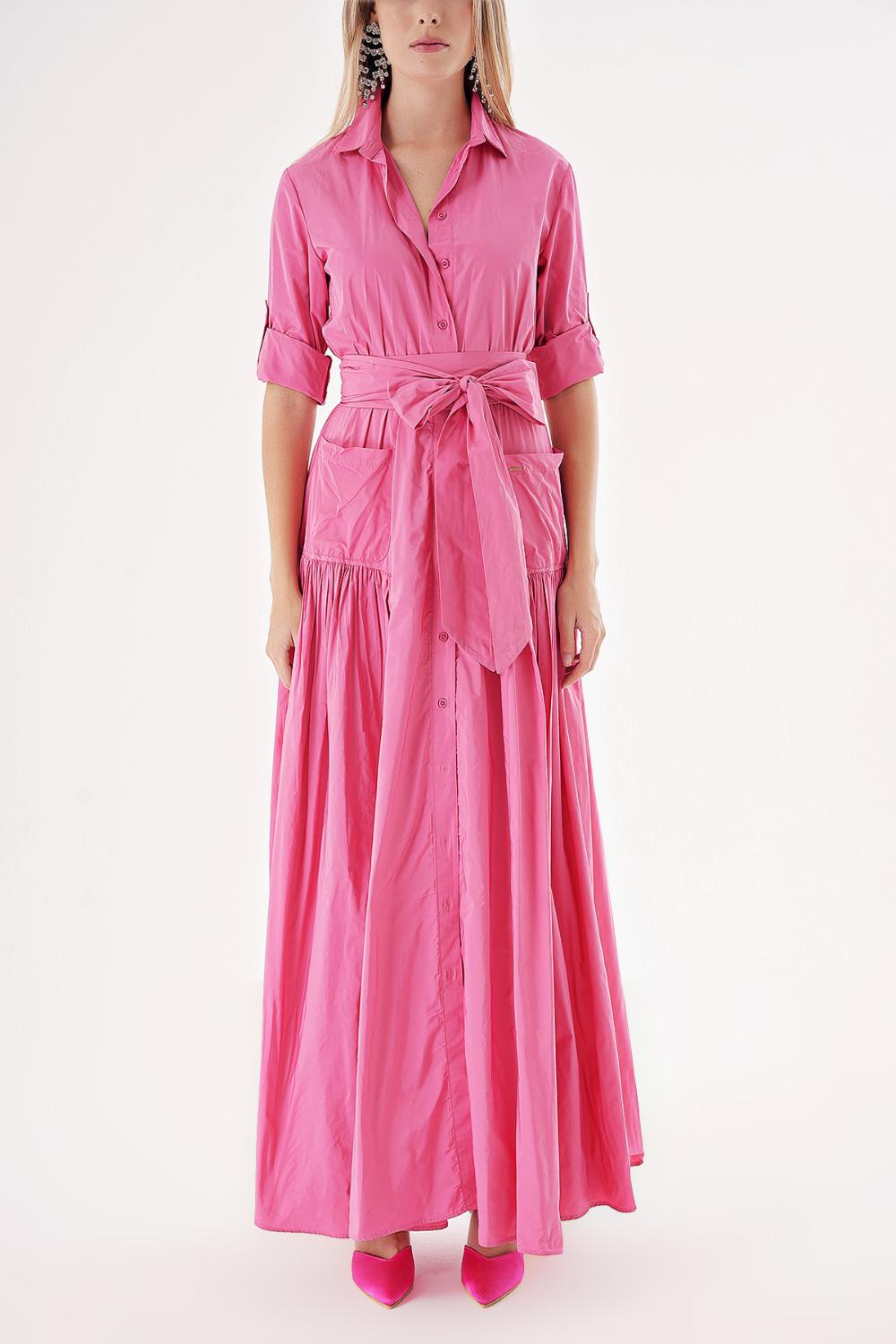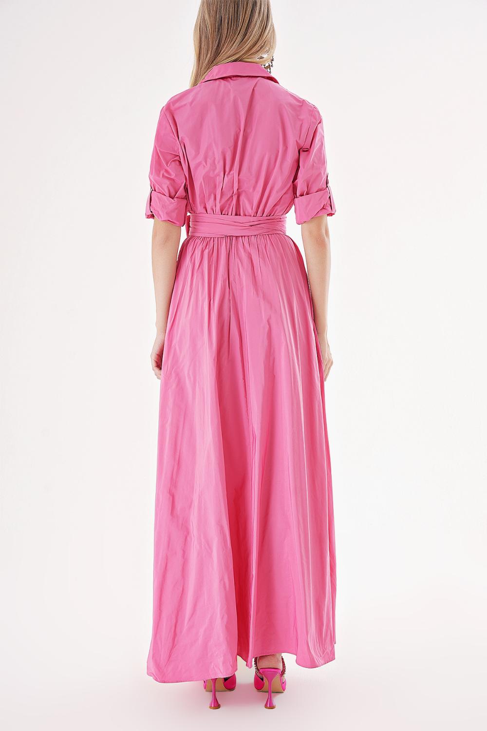 Pink Pleated maxi taffeta shirt dress 94198