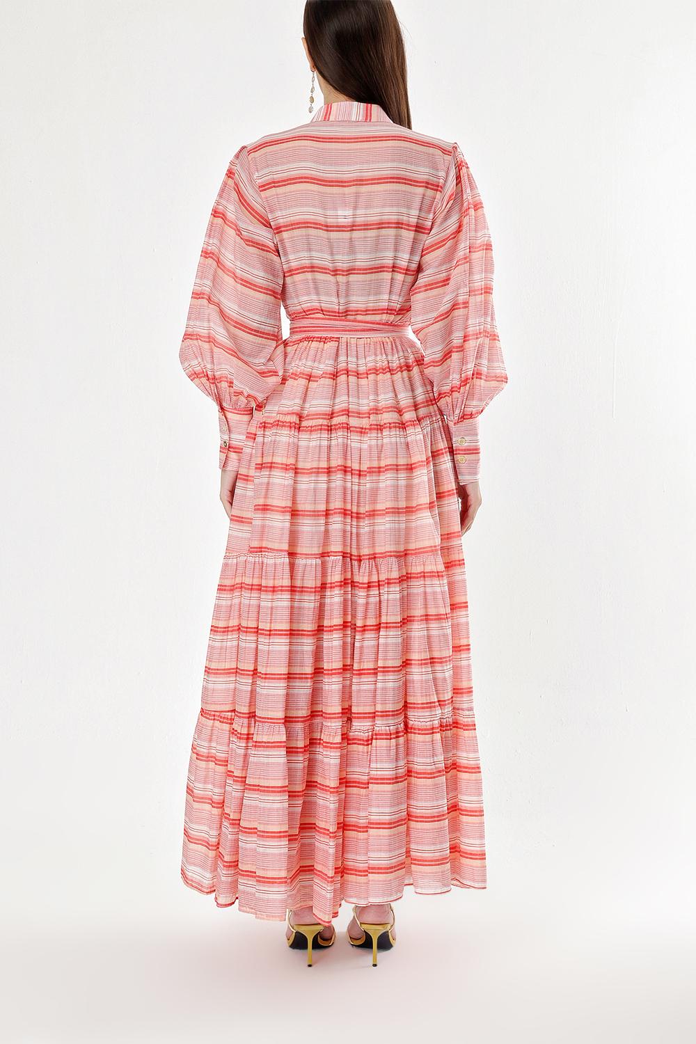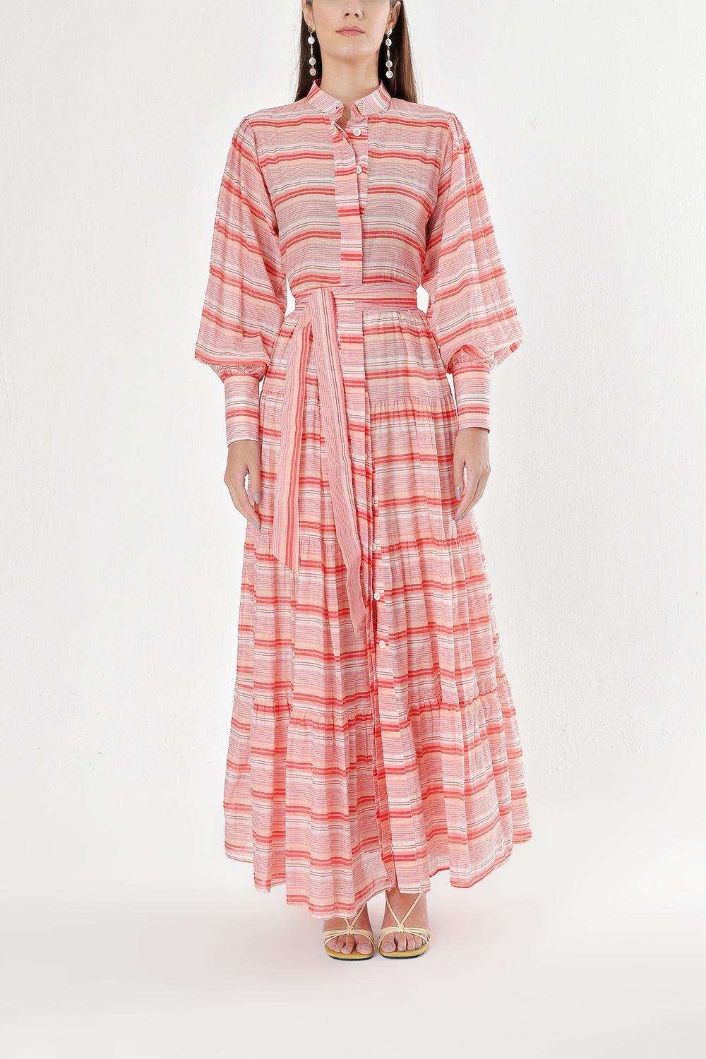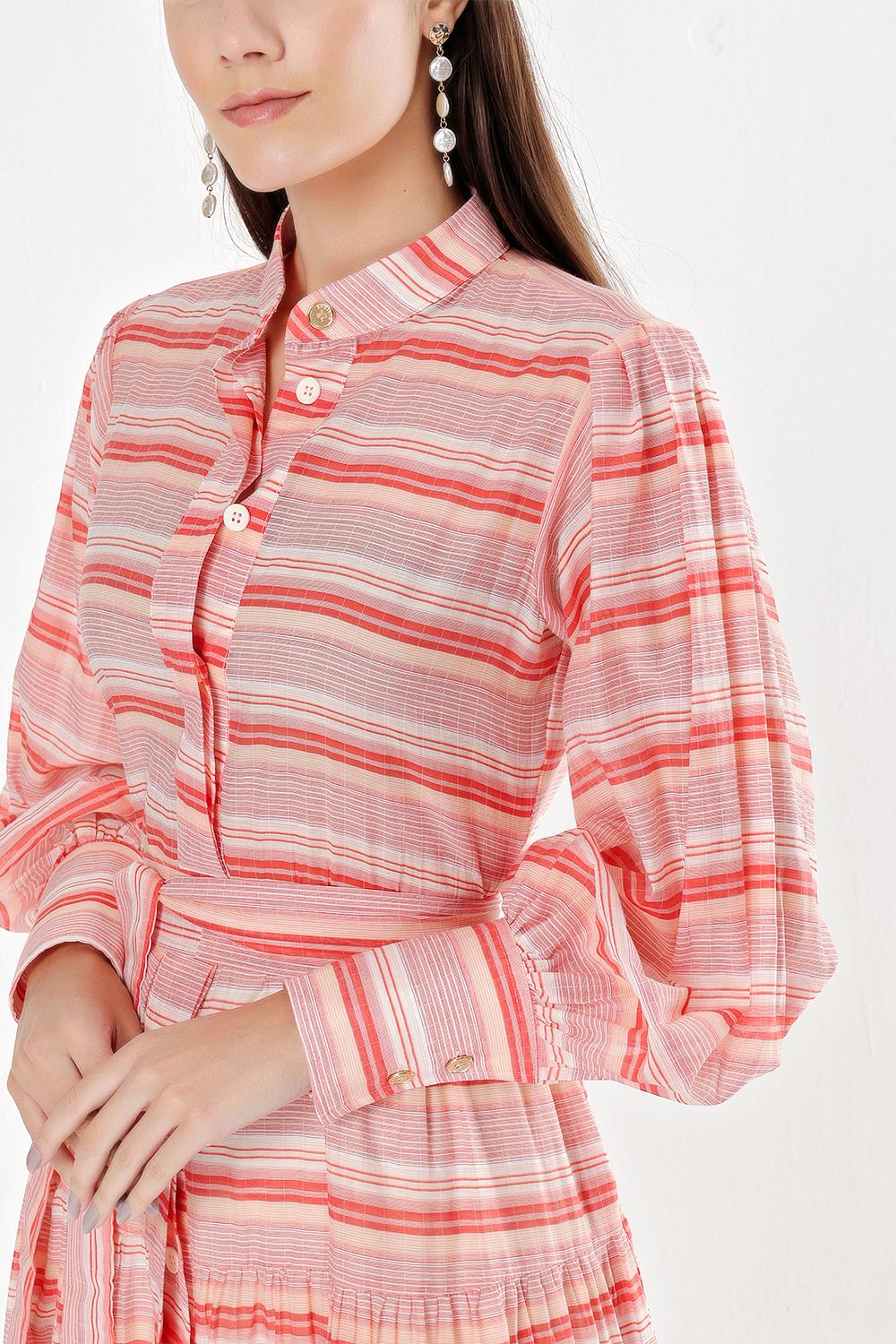 Red Balloon sleeve ruffled shirt dress 94301