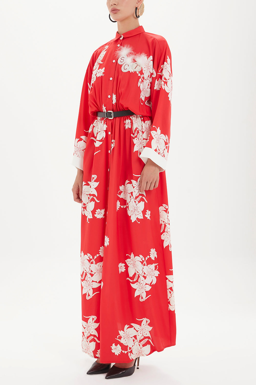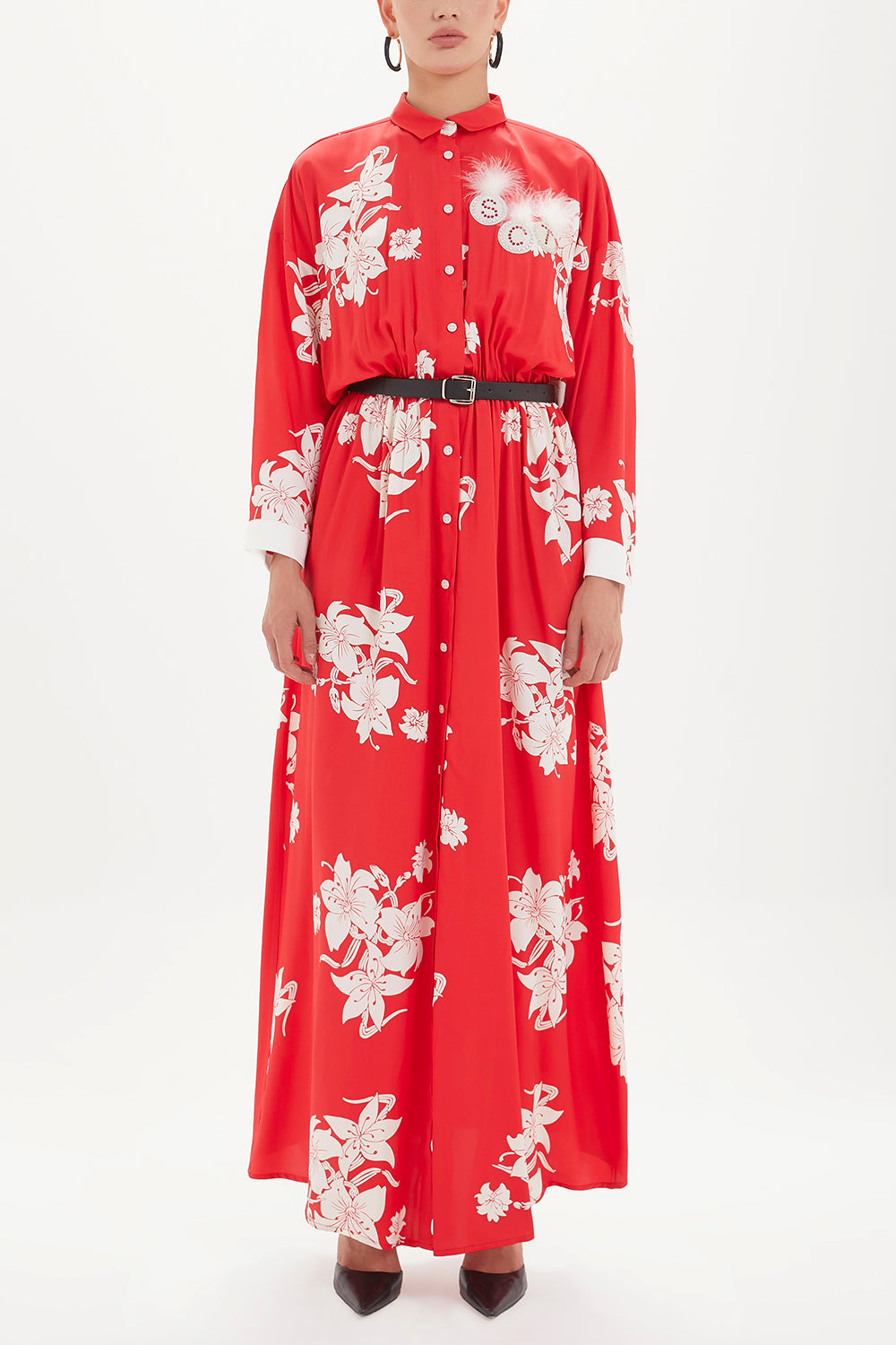 Red Belted maxi dress 92433
