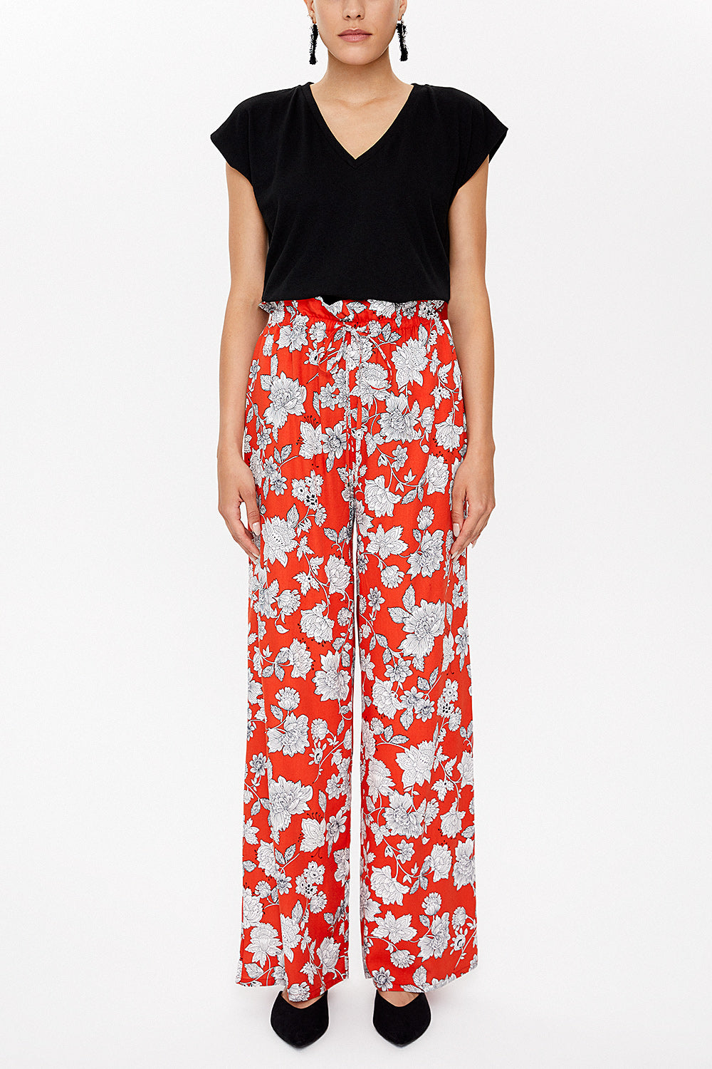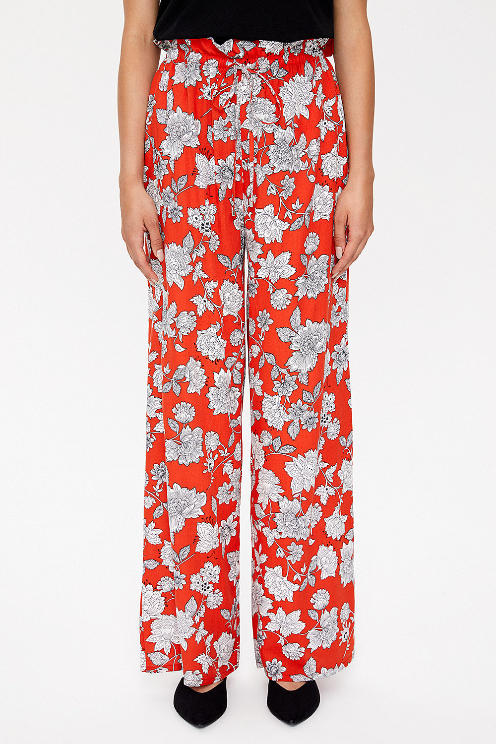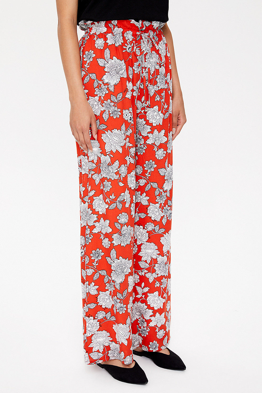 Red Ecru Wide cut elastic waist pants 41369