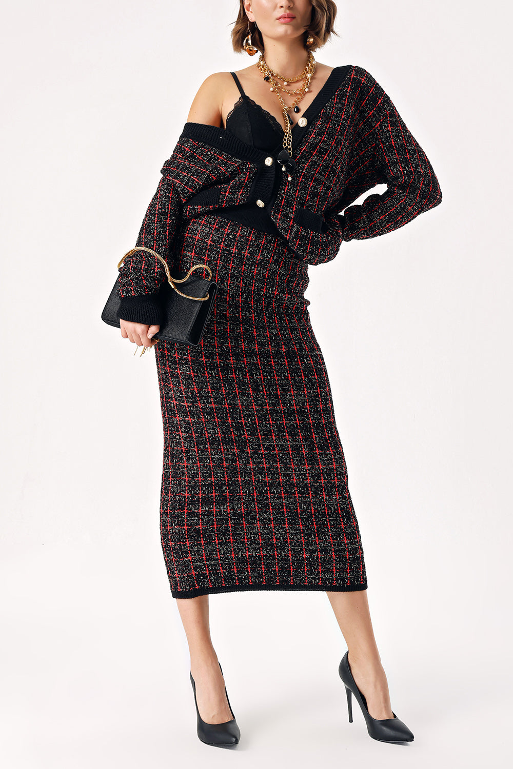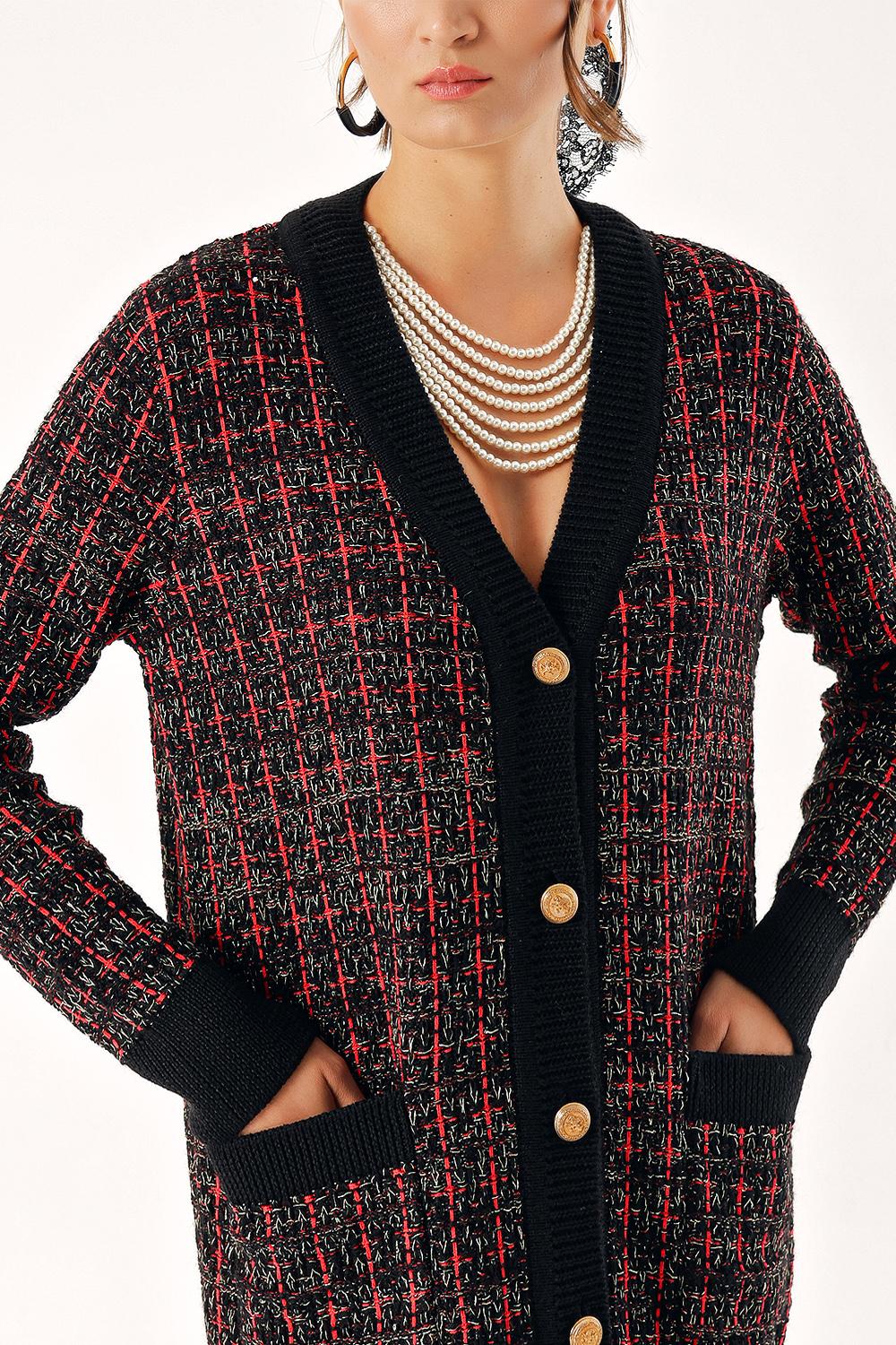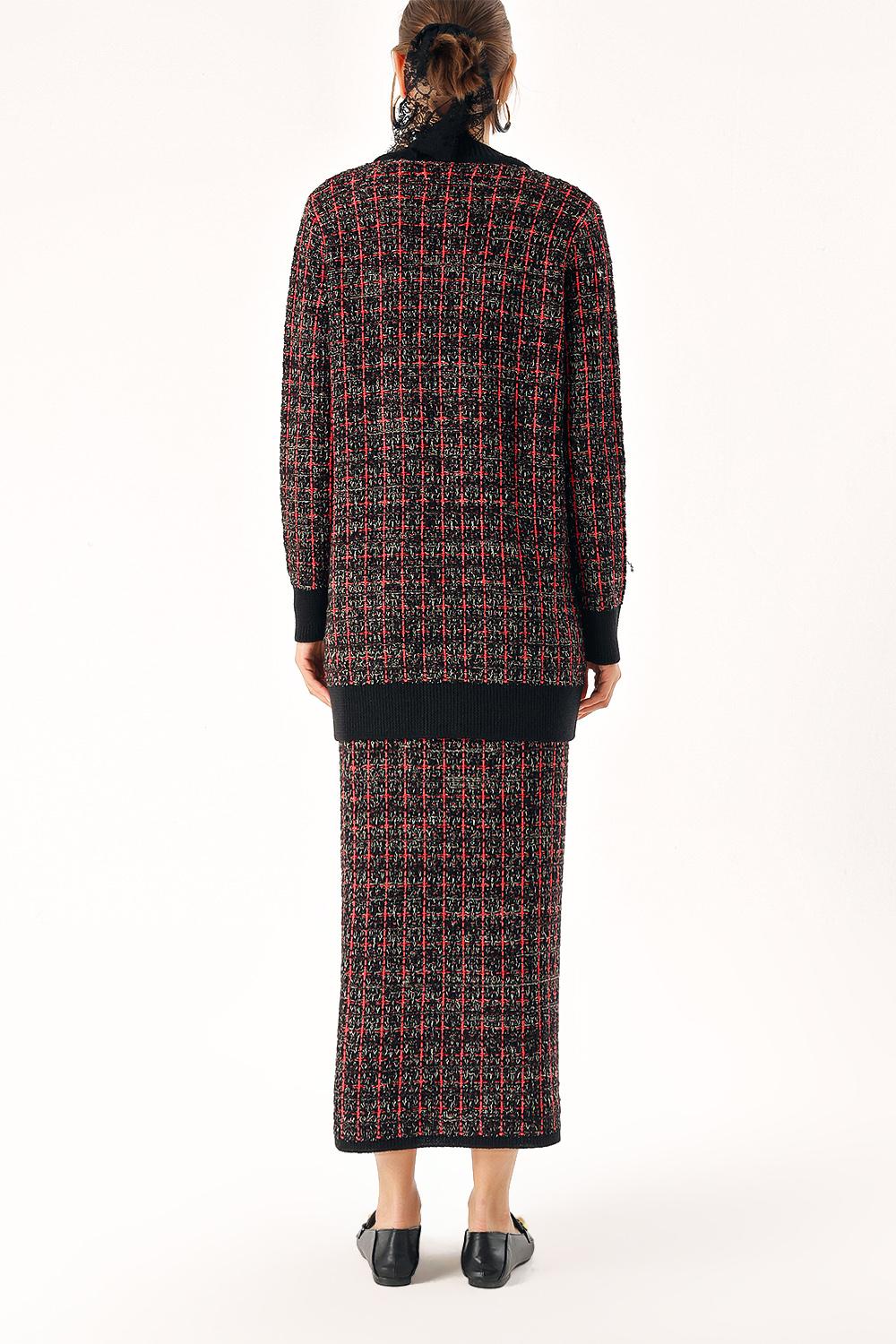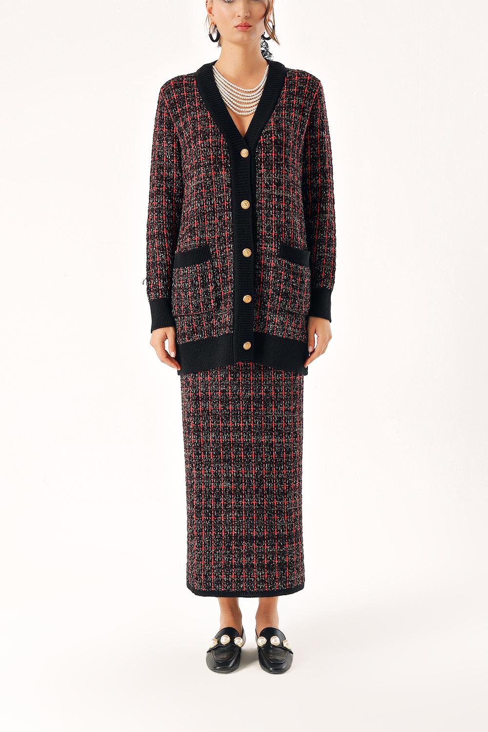 Red Knitwear long skirt and cardigan suit 28857