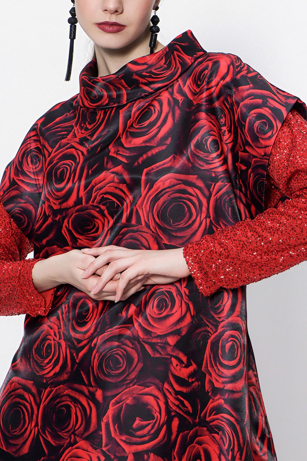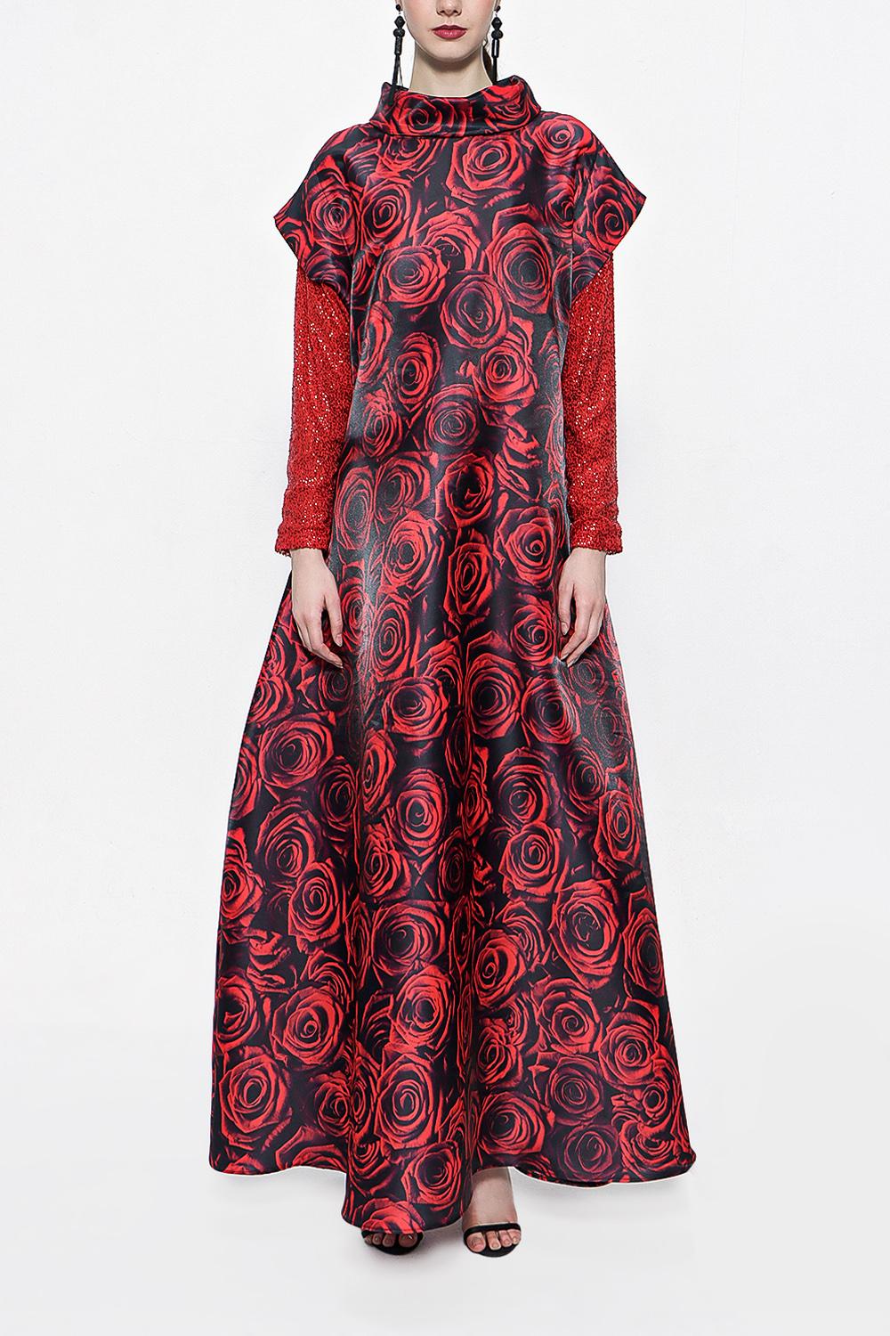 Red Patterned Long dress with sequined sleeves 94179