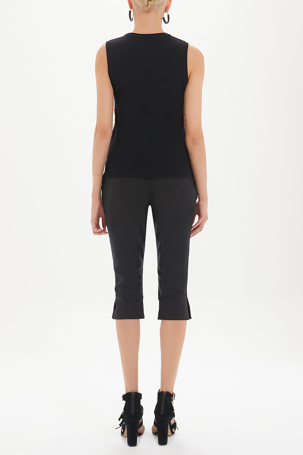 Red Printed satin fabric knit sleeveless blouse 28496
