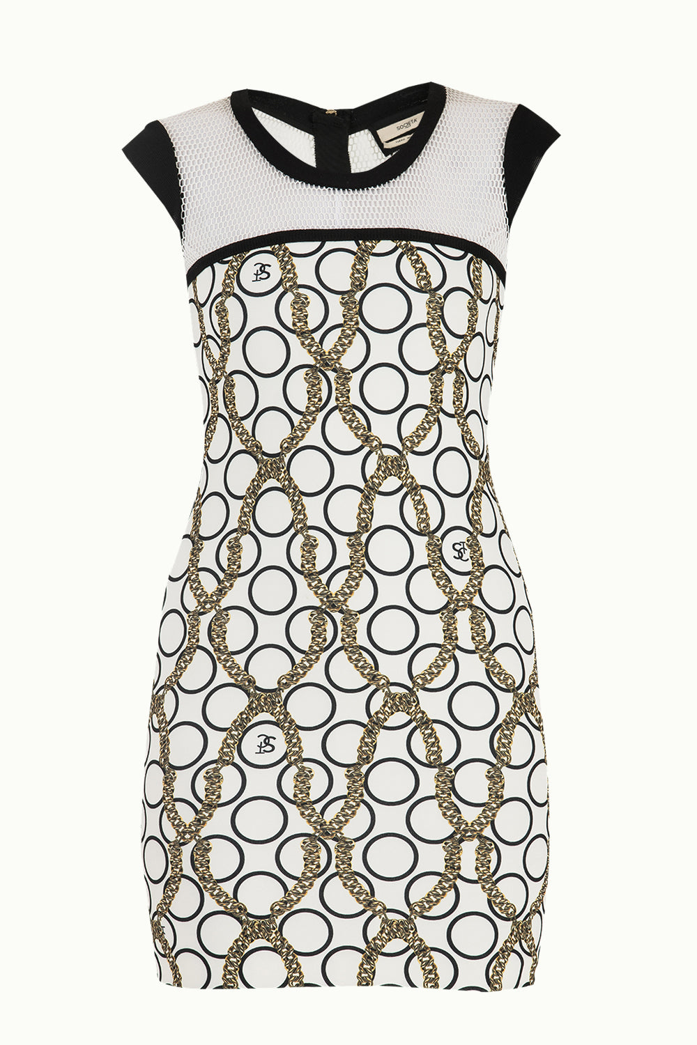 Rings And Chain Net fabric mix strappy woven mini dress 91488