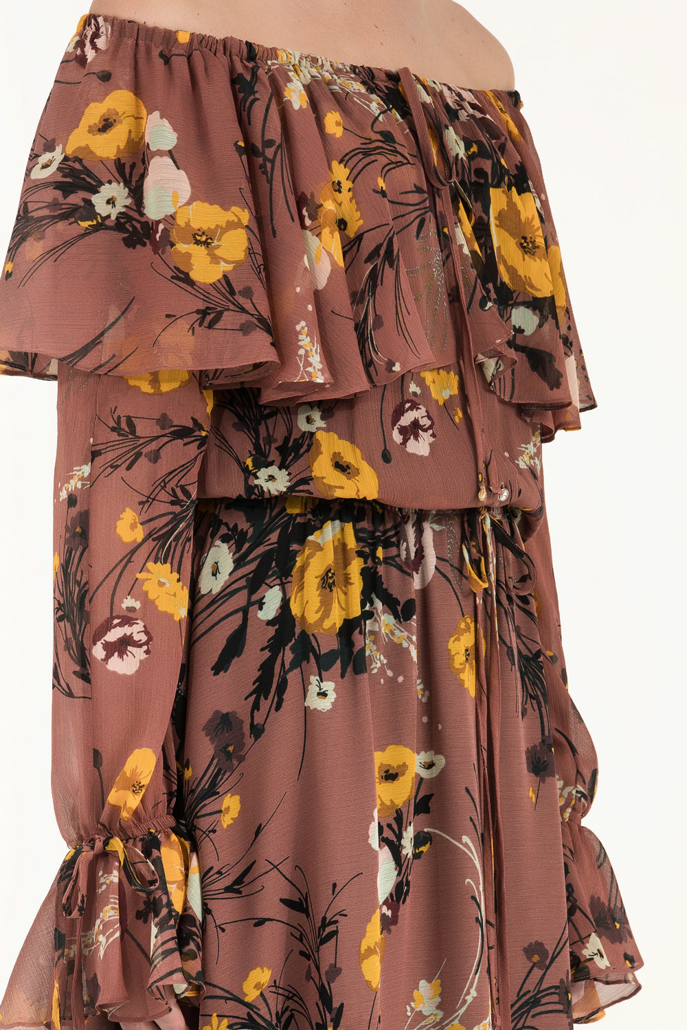 Salmon Ruffled off shoulder, chiffon maxi dress 92303