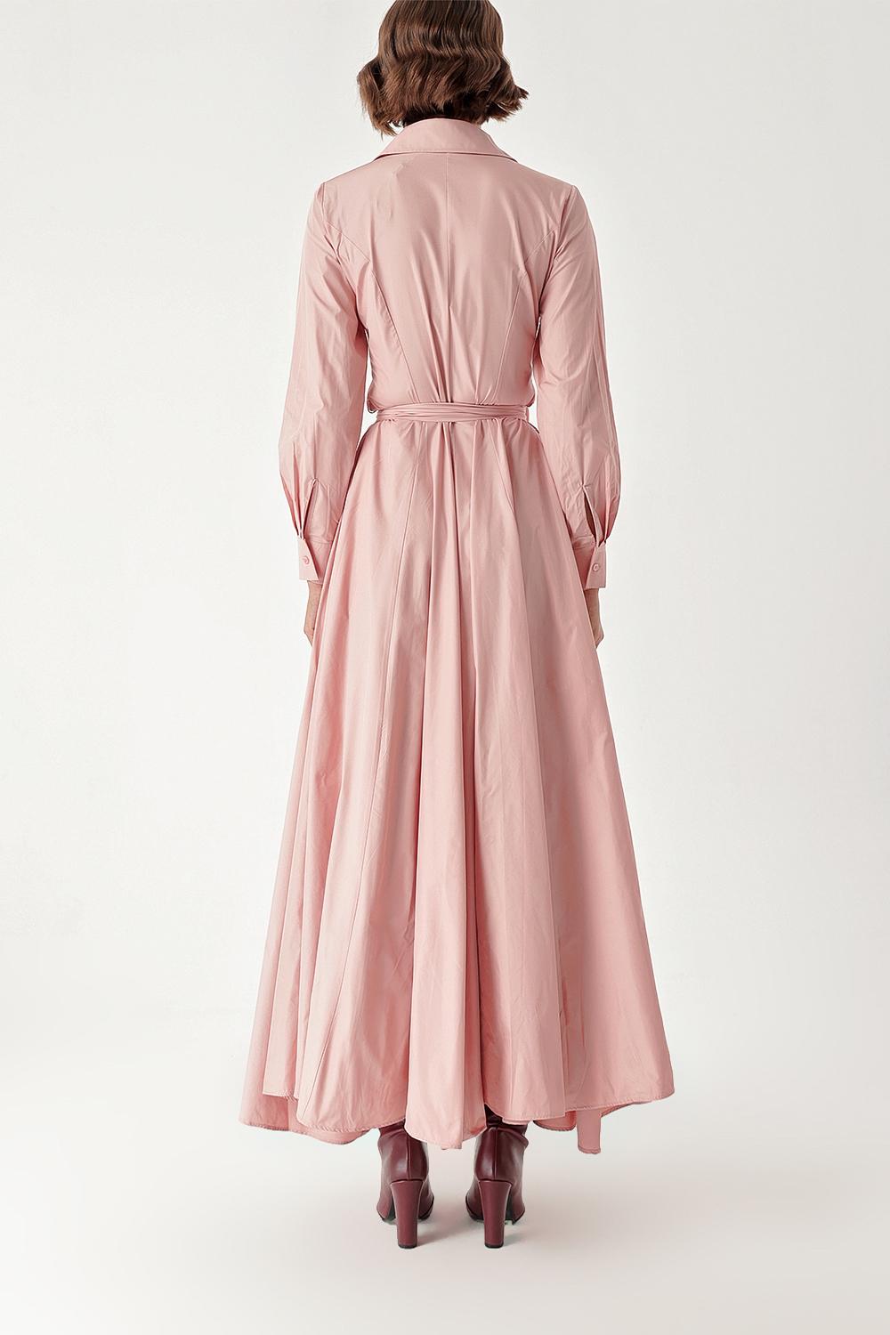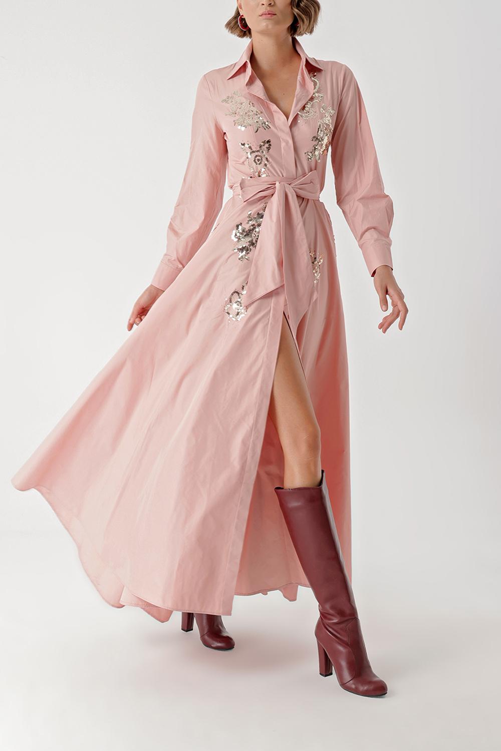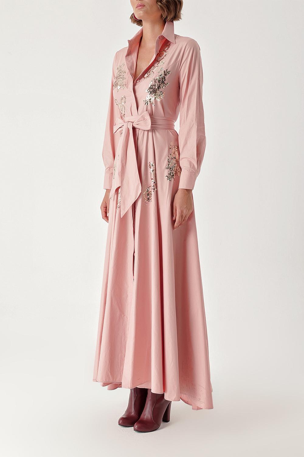 Salmon Sequin embroidered long taffeta shirt dress 94334