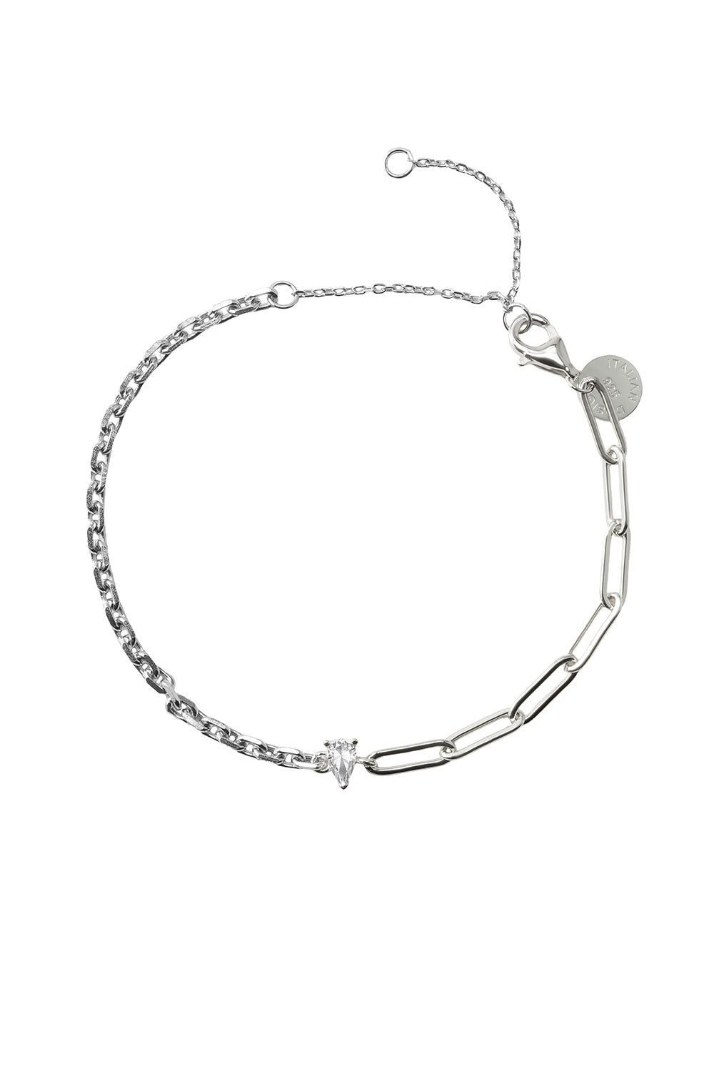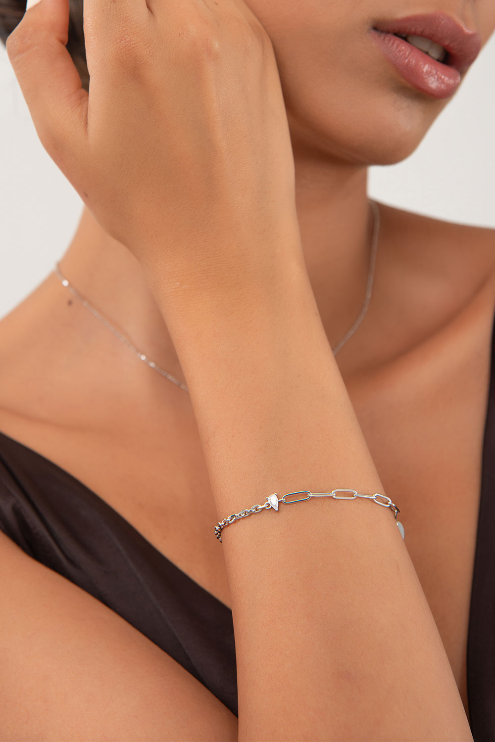 Silver 925 sterling silver bracelet with two different chain styles and stone details 116