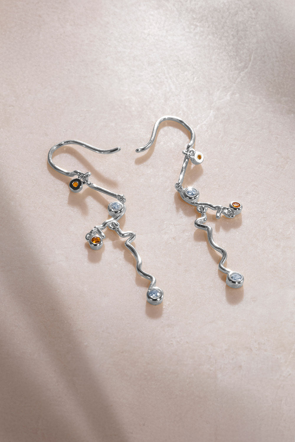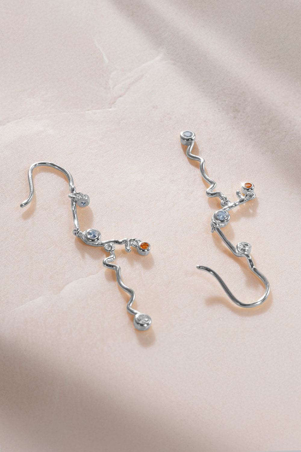 Silver 925 sterling silver crystal stone detailed earrings 35